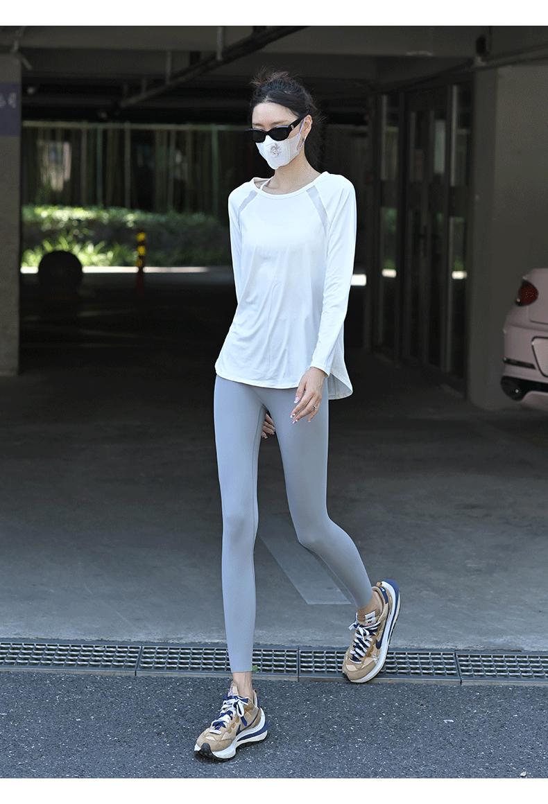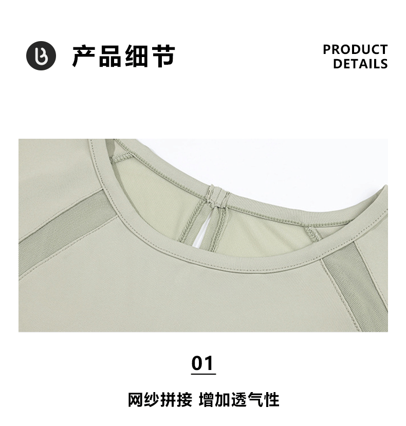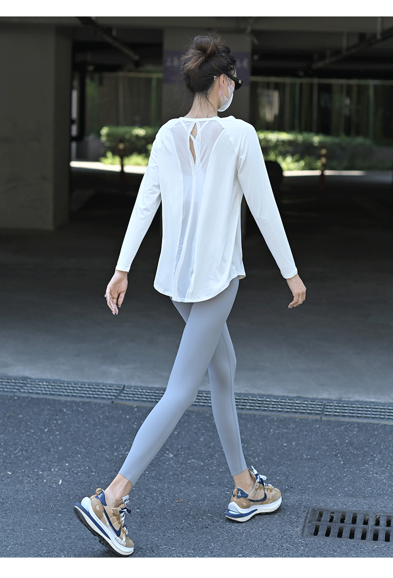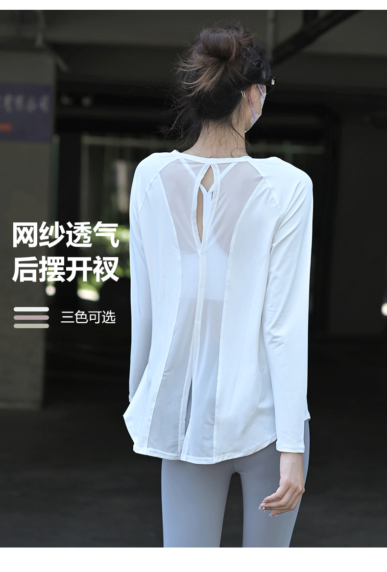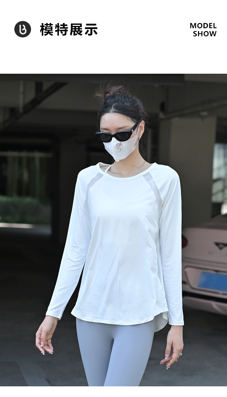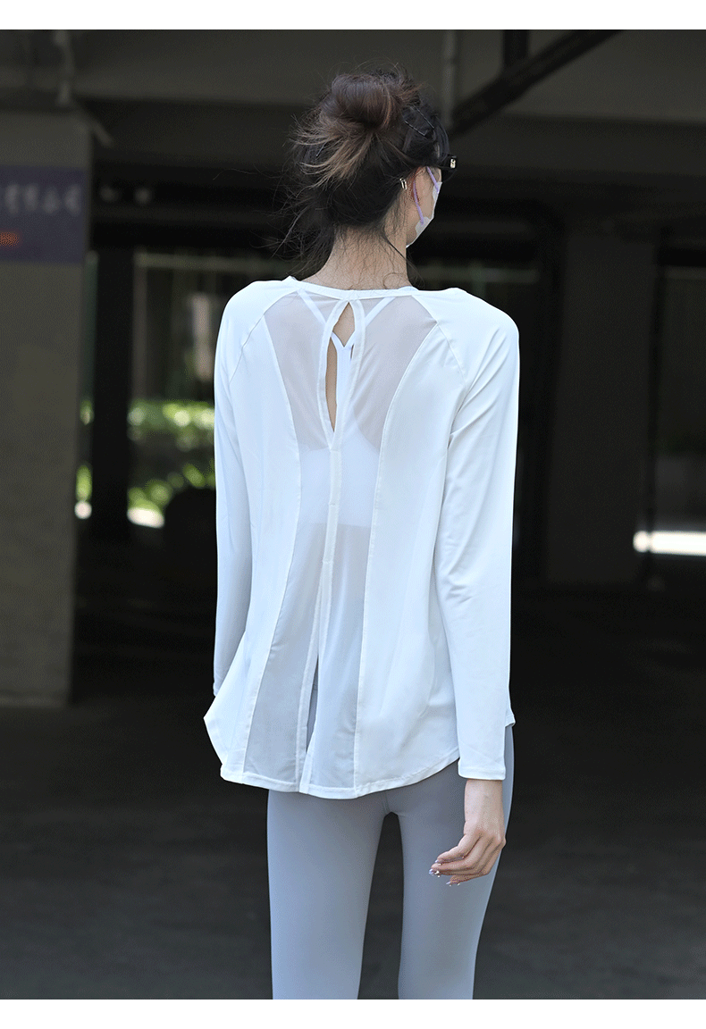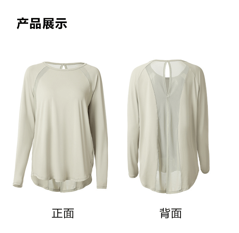 beemen宽松长袖速干衣 网纱拼接美背 透气不闷汗 宽松遮肉肉 舒适飘逸