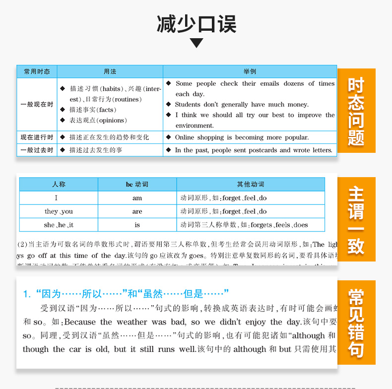 2. 理论结合实际,从写作四大评分原则入手,以“知识点+范例分析+强化训练”的讲解模式,切实有效地提高写作能力,避免只看不写的误区。