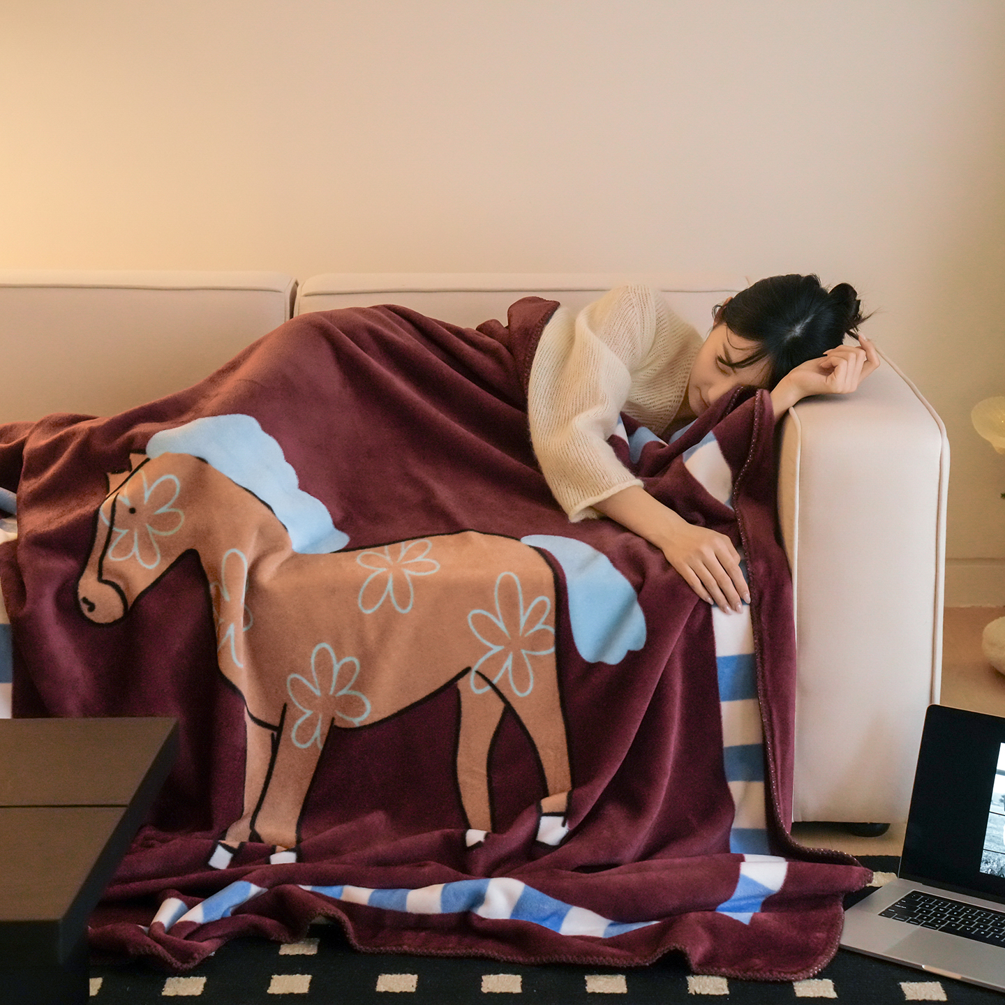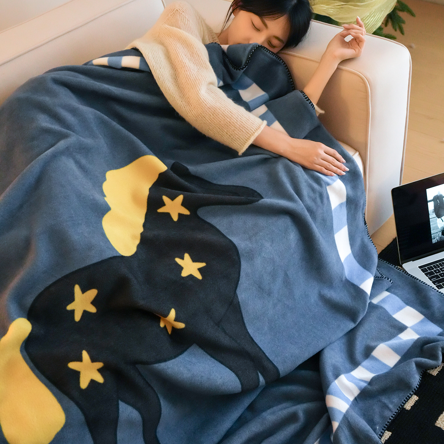 一毯多用:居家可沙发毯/卧室毯/午睡毯/办公毯/披肩保暖/车载户外露营旅行都OK
