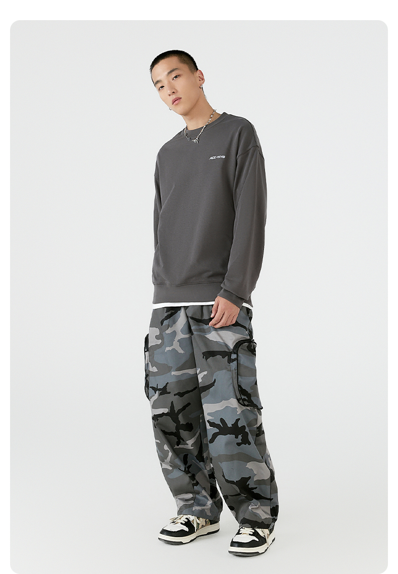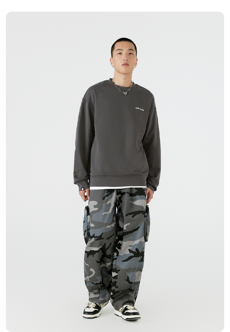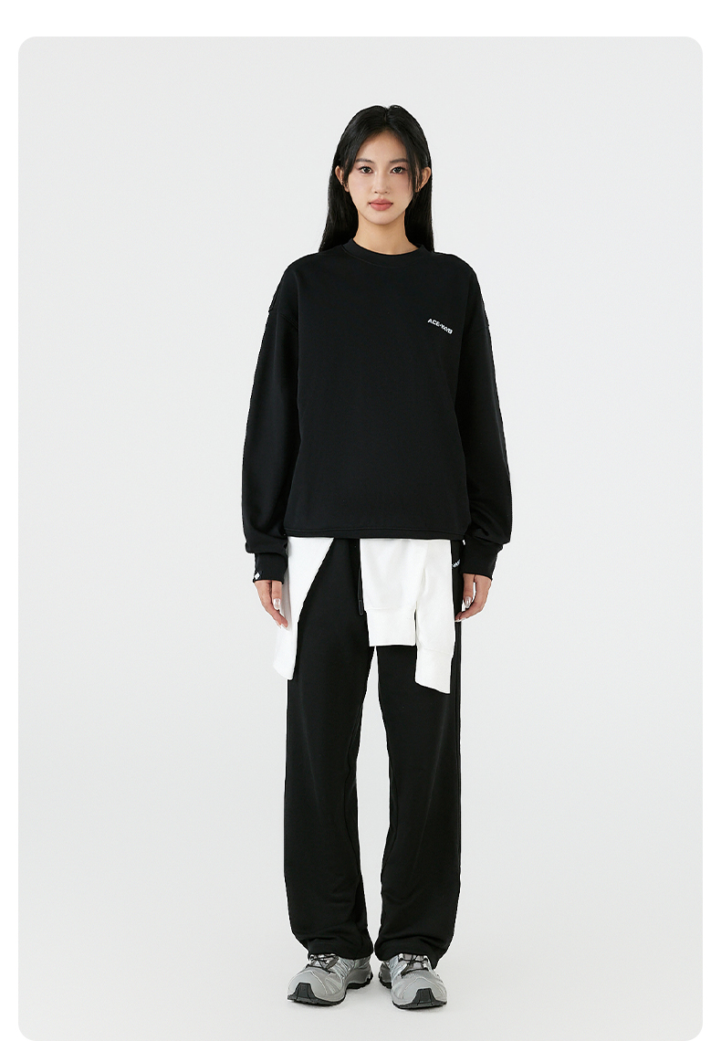 YKYB 基础植绒印花圆领卫衣女秋季纯色简约通勤百搭情侣上衣潮