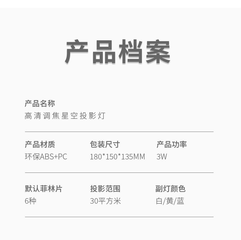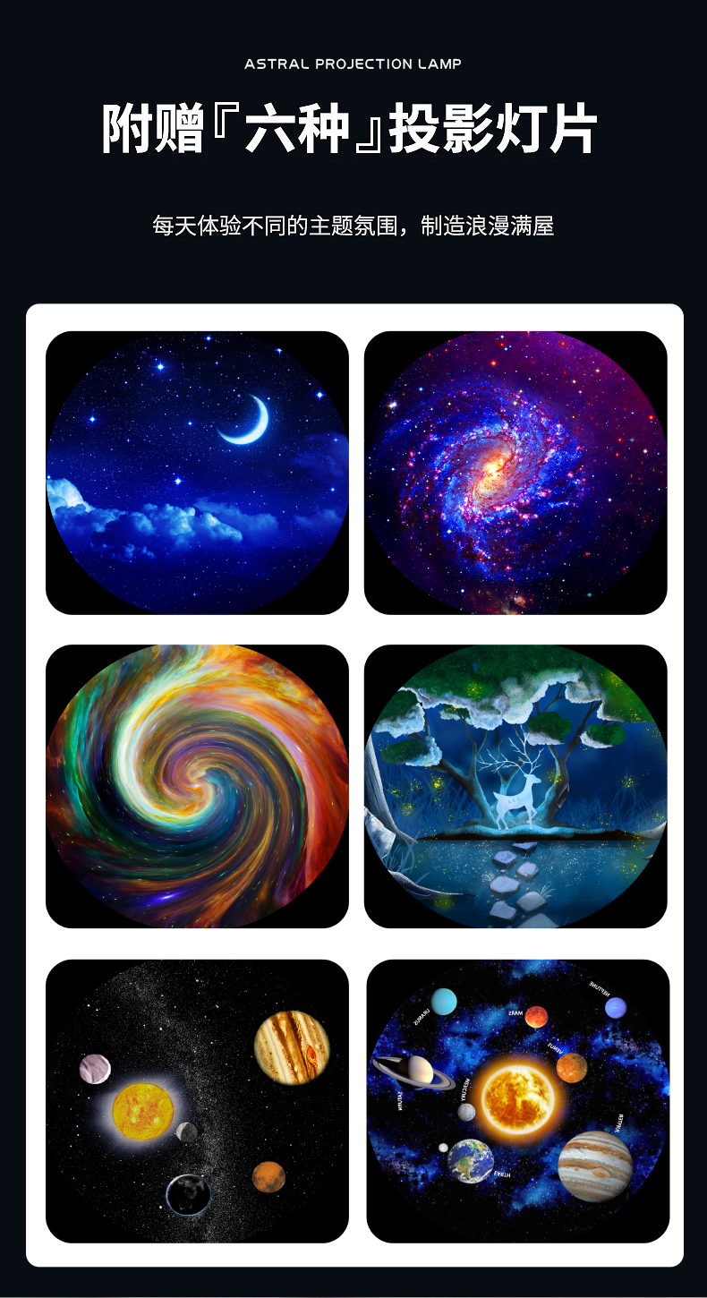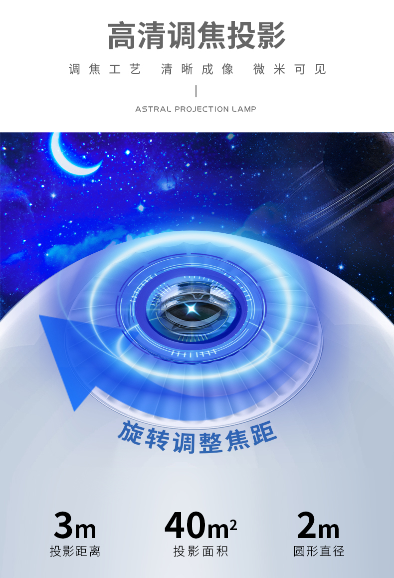 高清调焦星空投影灯 插电普通款无音乐 送6套胶片+银河胶片1张 [福利品]