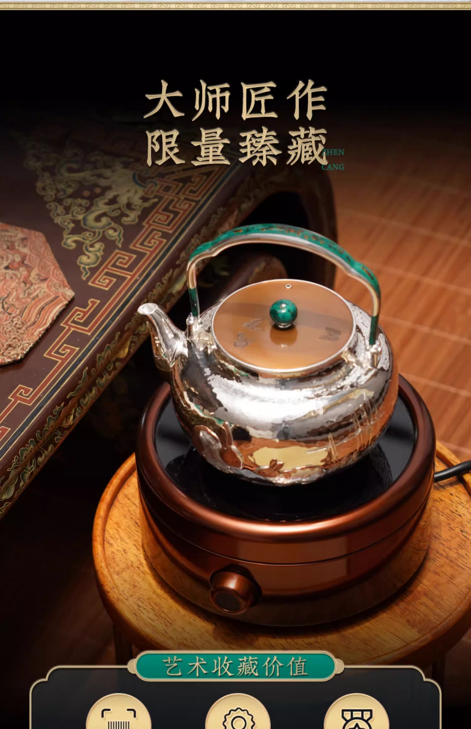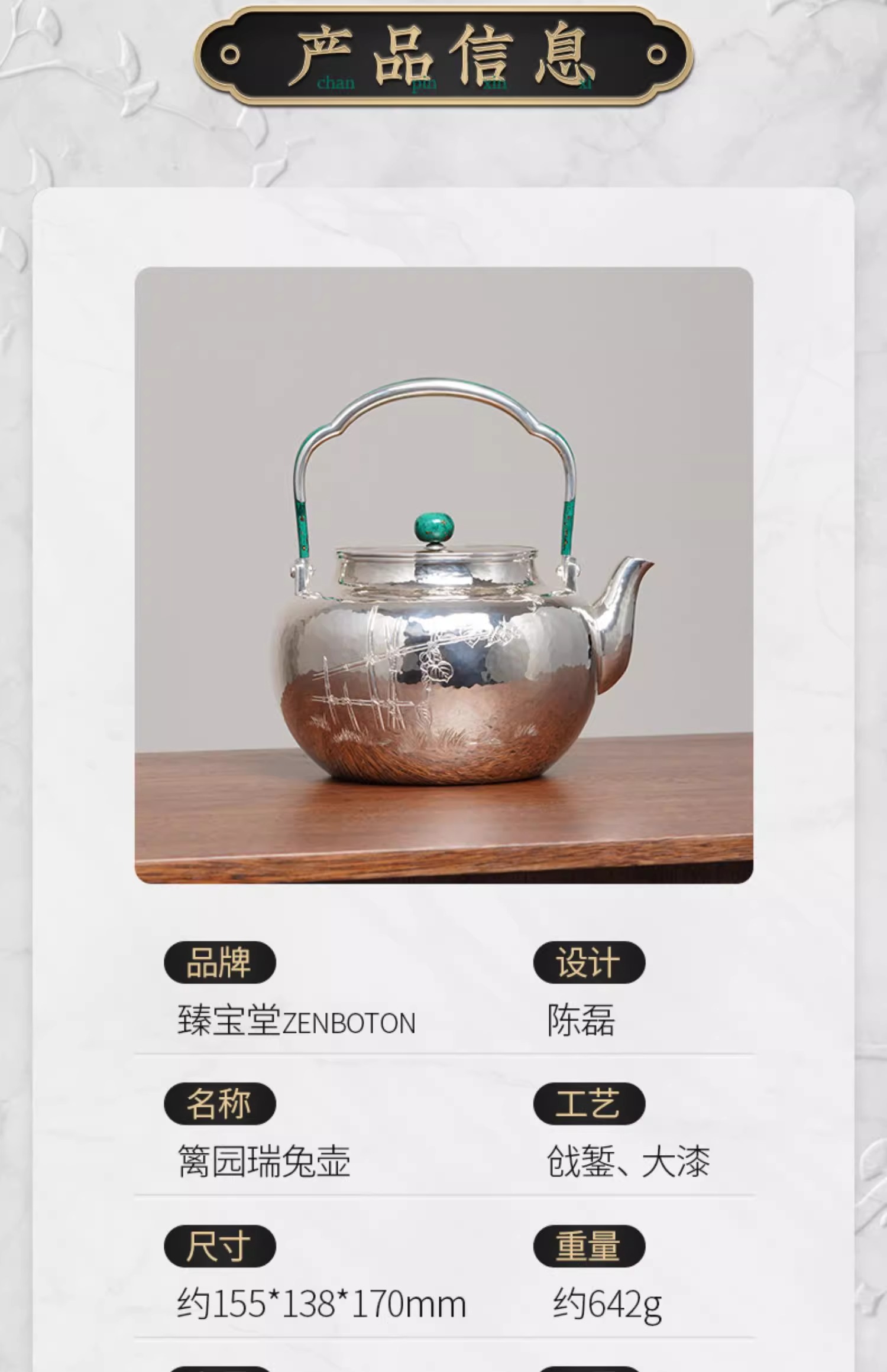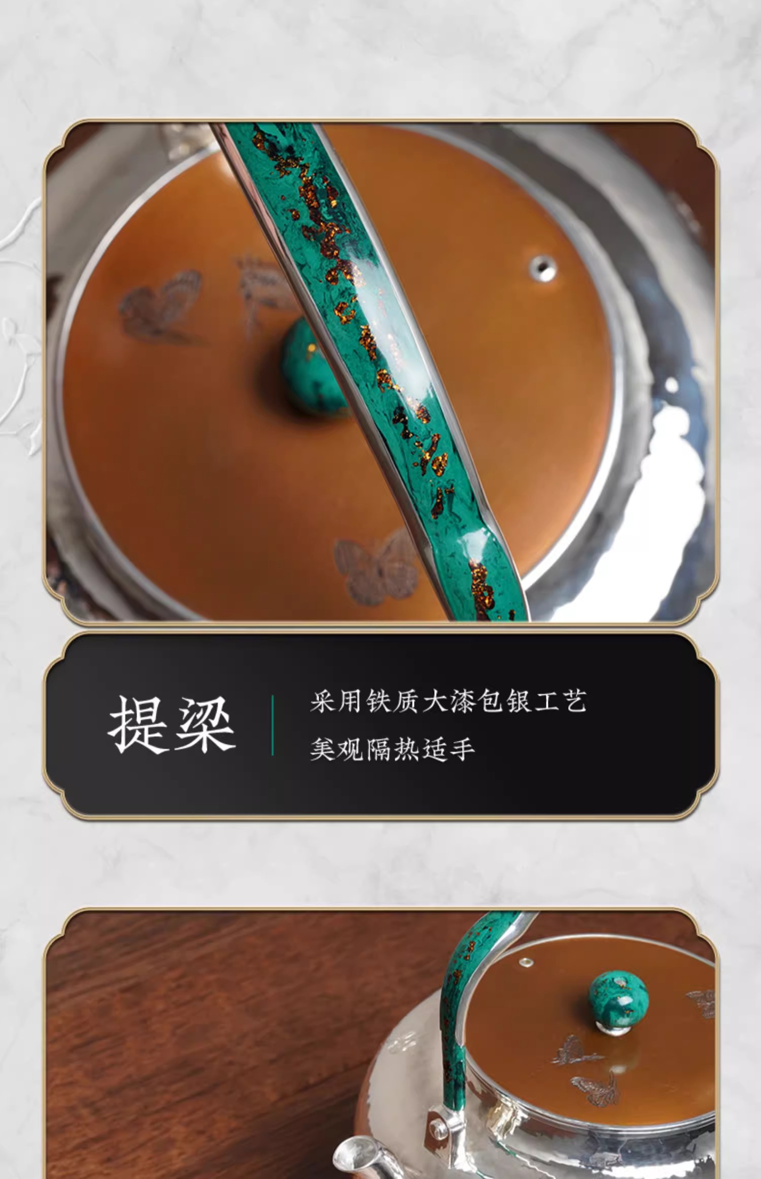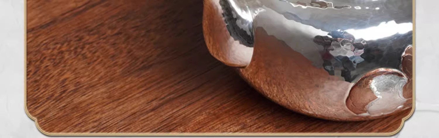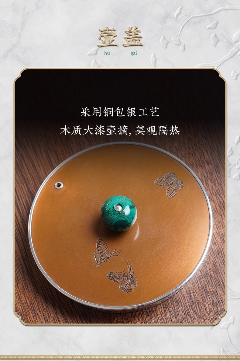 臻宝堂银壶999纯银烧水壶纯手工篱园双兔茶壶足银茶具大漆把中式篱园瑞兔壶1000ml