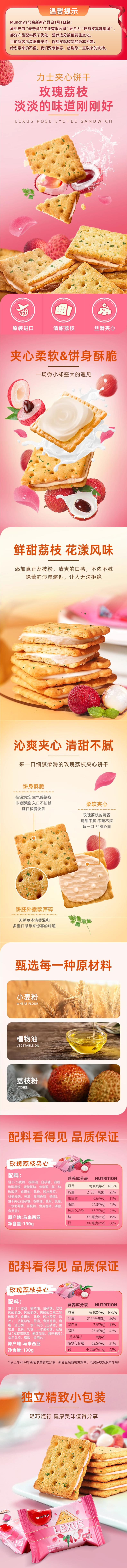 马奇新新 力士玫瑰荔枝味夹心饼干 190g*2袋