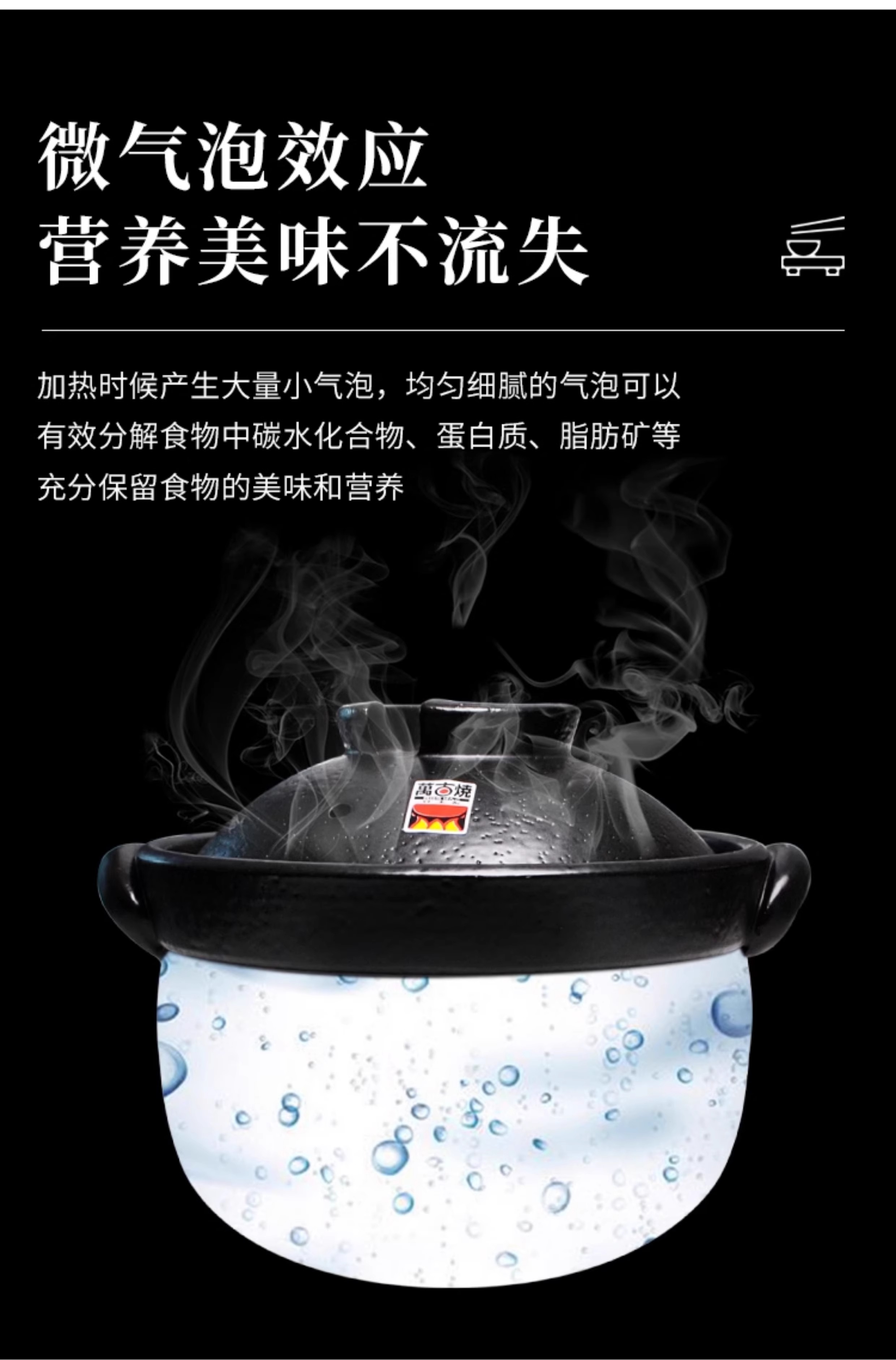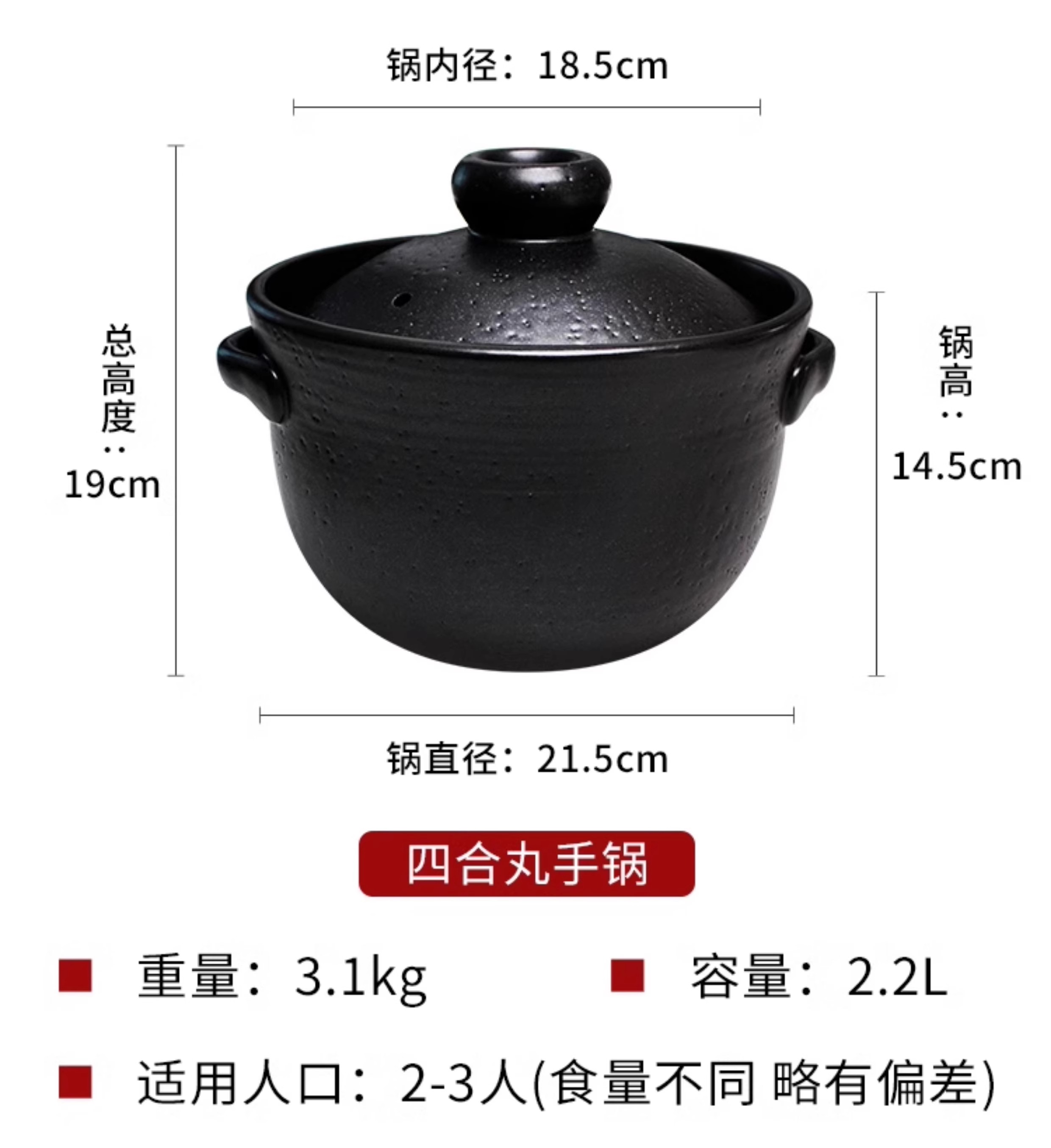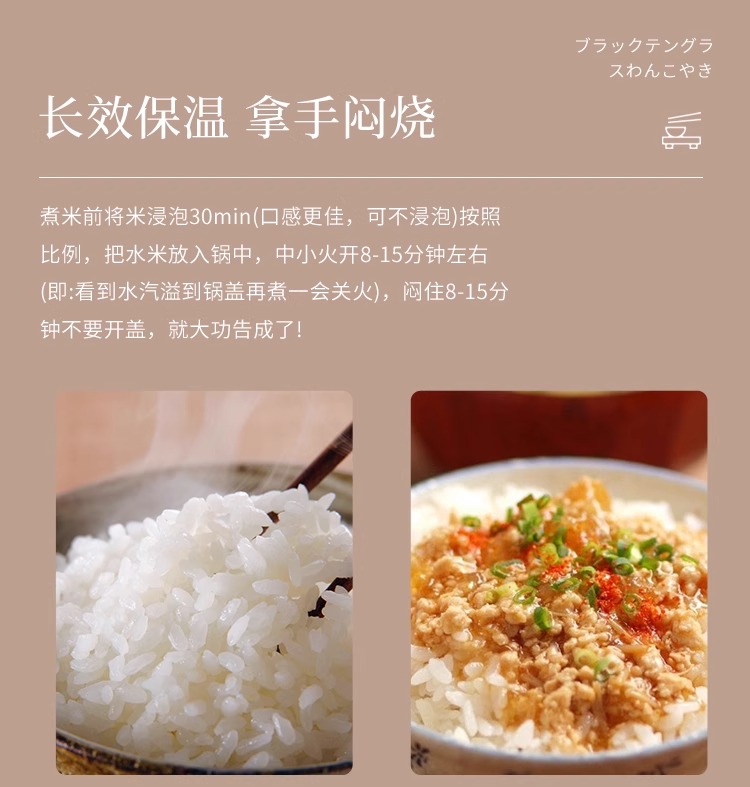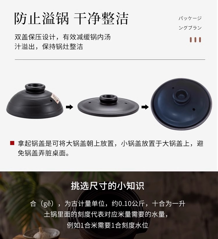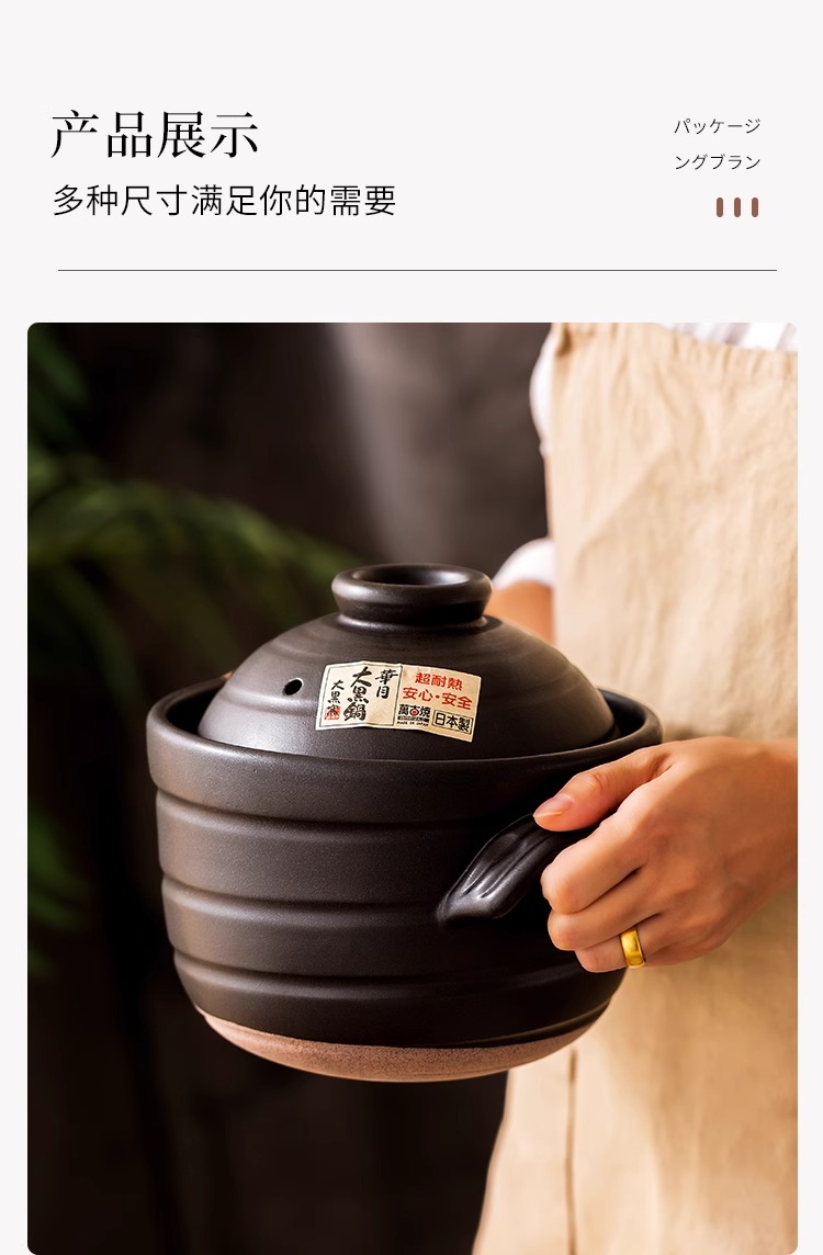 日本砂锅原装进口品质万古烧双盖万古烧砂锅双盖大黑锅炖锅煲汤熬 67L 黑色御饭锅5合 3L