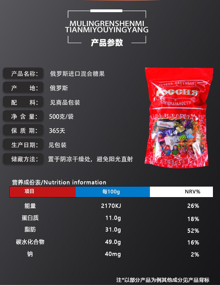 【中欧班列精选】WWJ俄罗斯精品糖果散糖混合装多种口味500g/袋 新年糖果喜糖 大人小孩皆宜节后发货