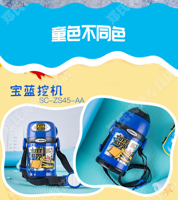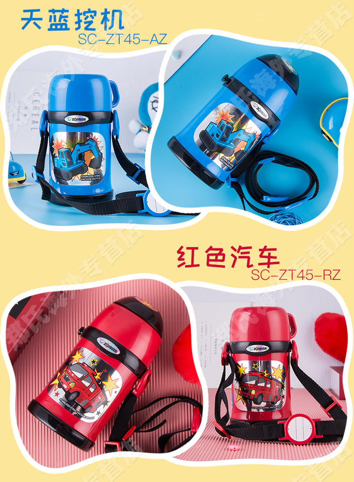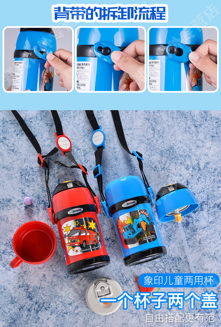 象印保温杯儿童水杯学生两用吸管杯户外水壶(吸管盖+保温盖)450ml SC-ZT45-RZ-红色消防车