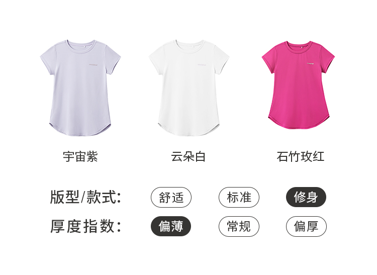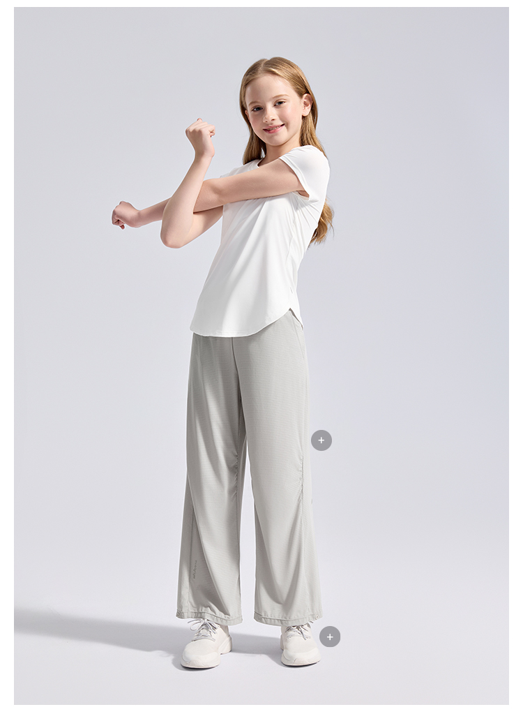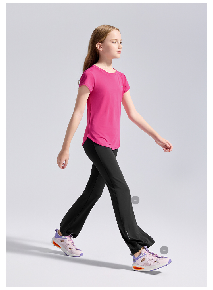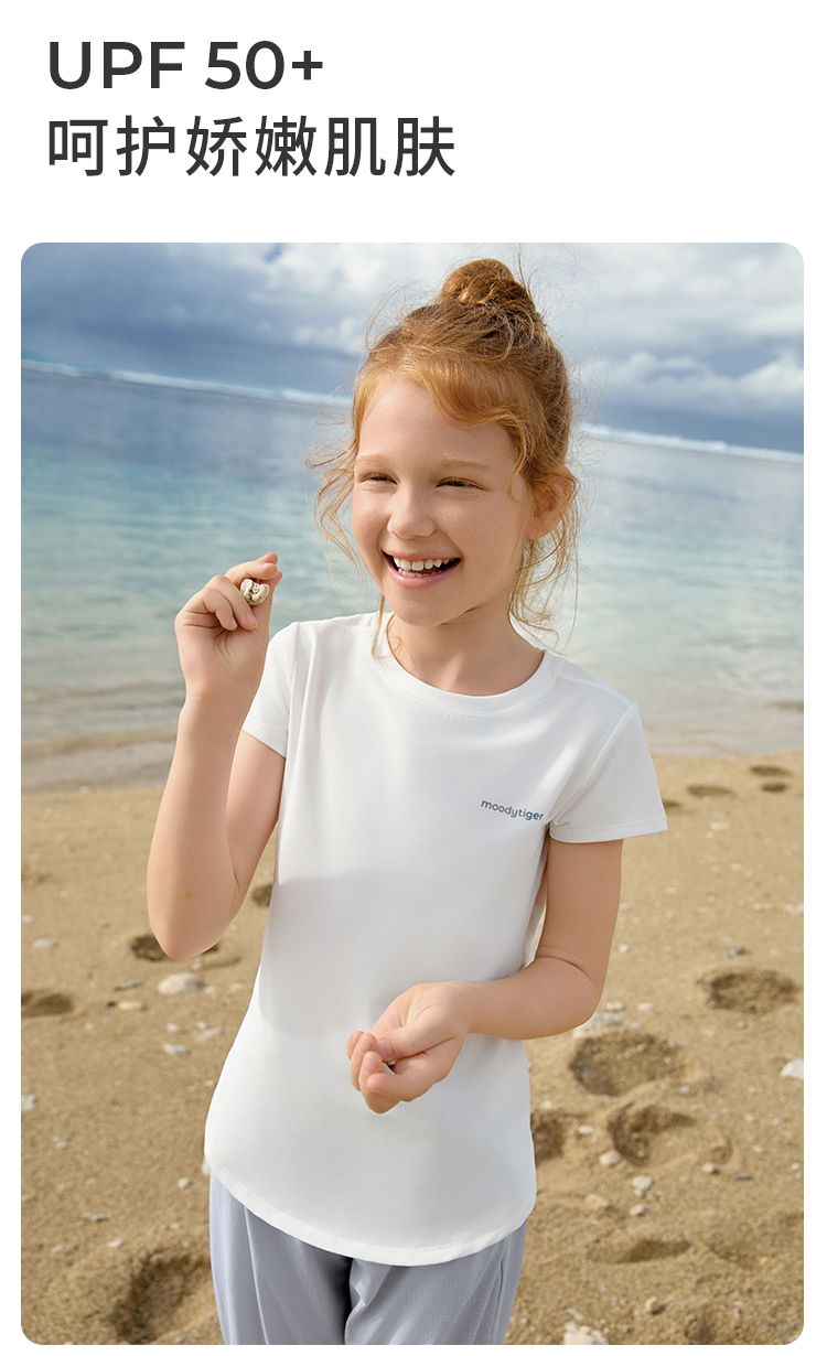 moodytiger女童圆领短袖T恤轻薄经典百搭纯色速干亲子22210101