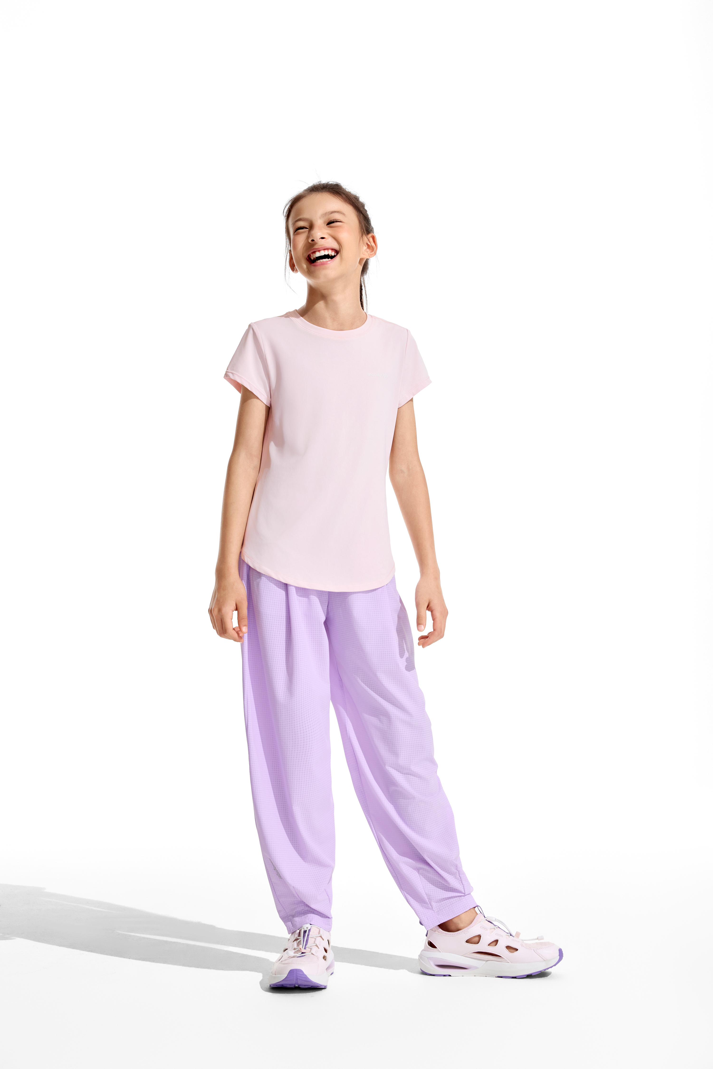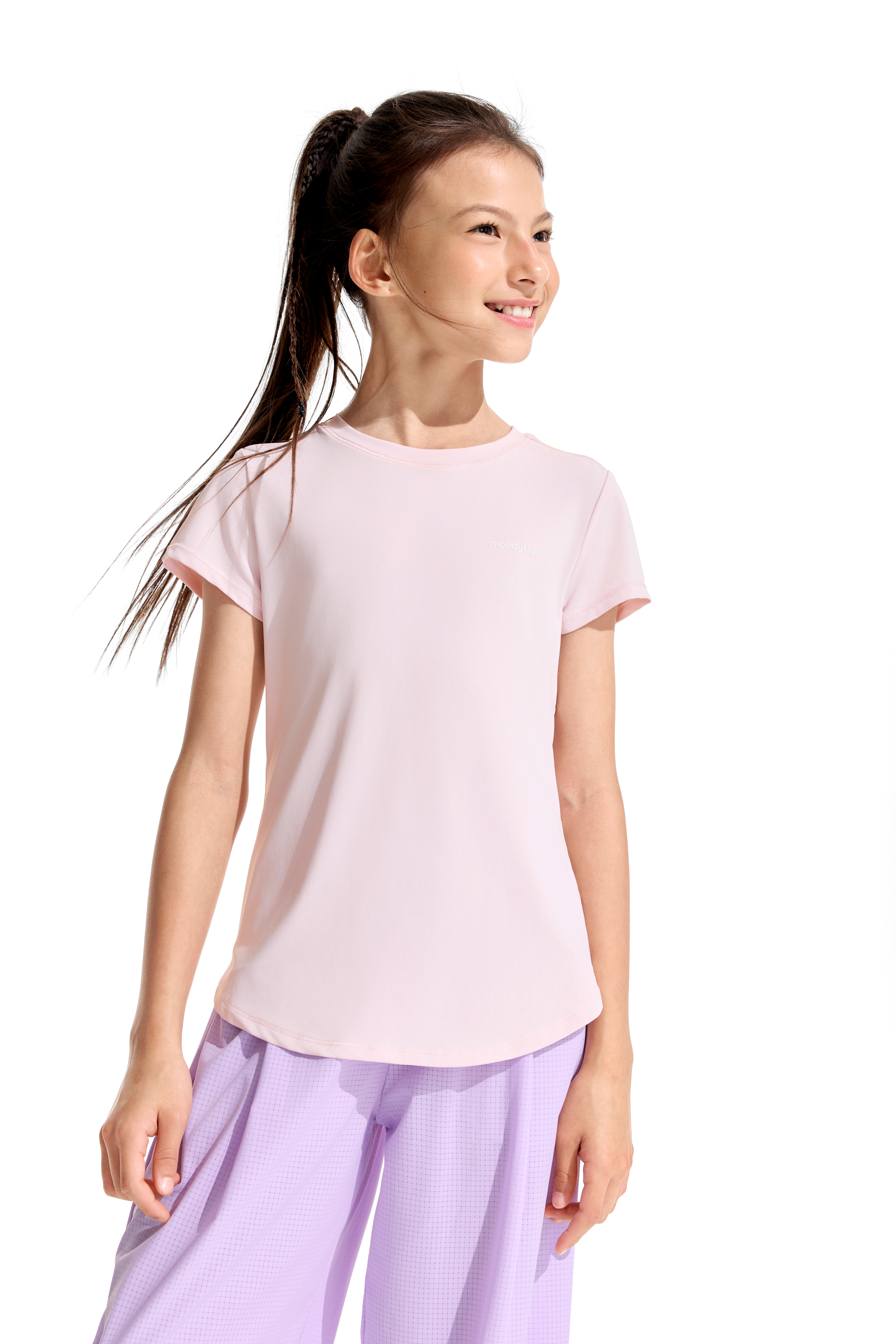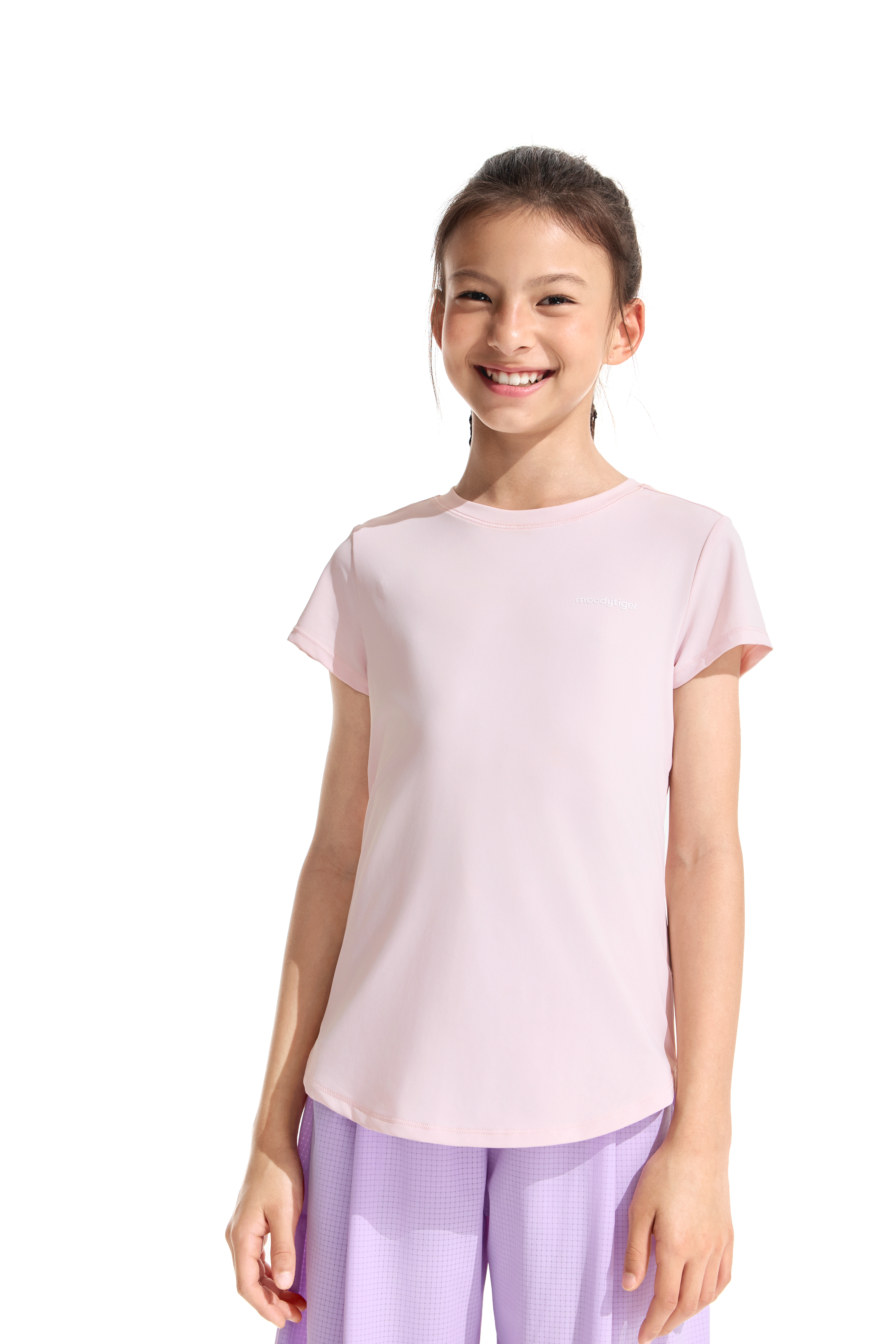 moodytiger女童圆领短袖T恤轻薄经典百搭纯色速干亲子22210101
