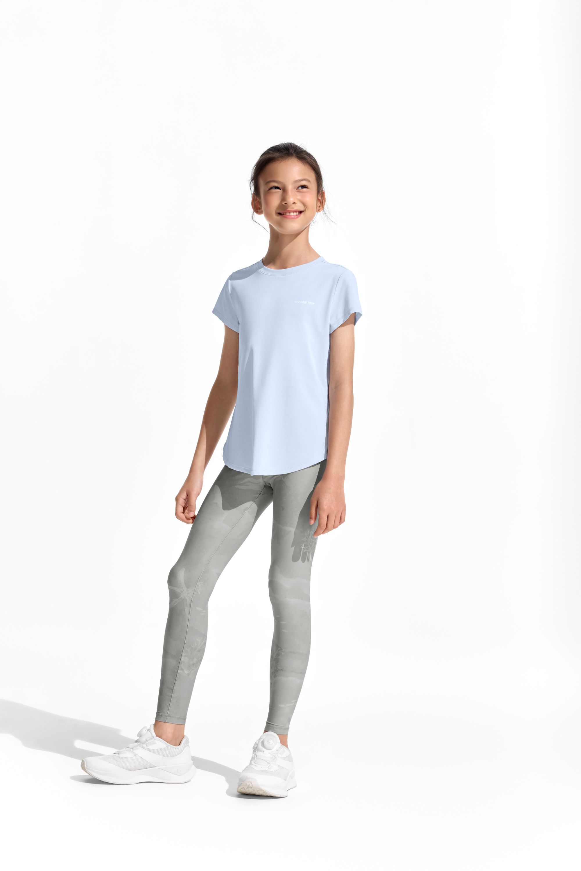 【DR暑假】moodytiger女童T恤25夏新速干透气印花圆领欧若风短袖上衣52210104