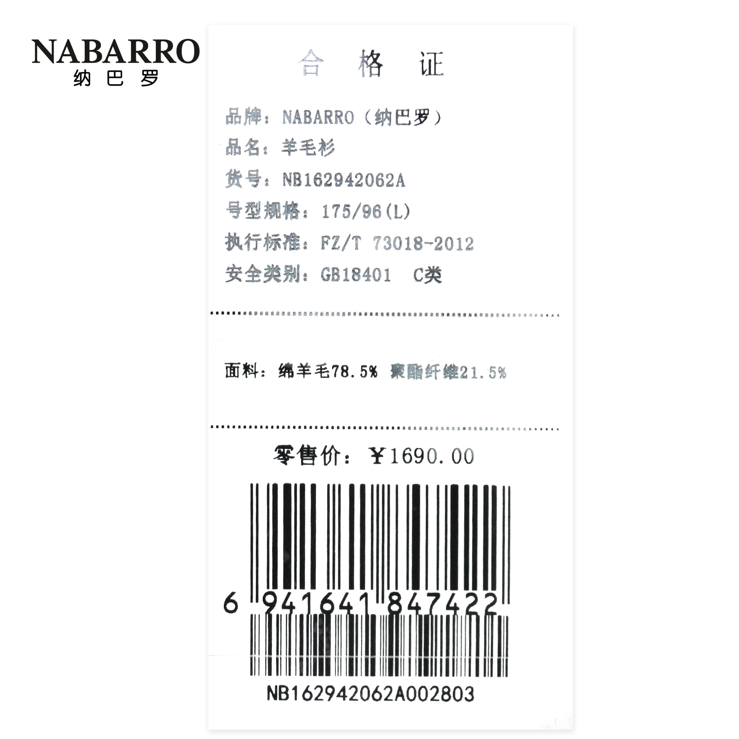 纳巴罗羊毛衫NB162942062A