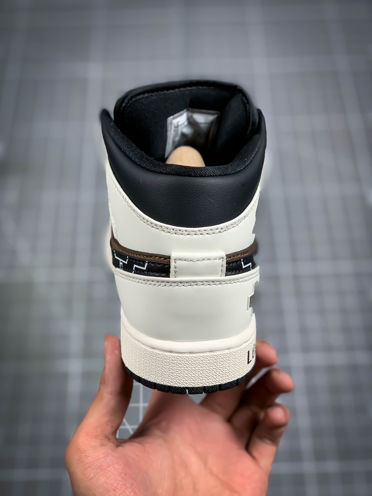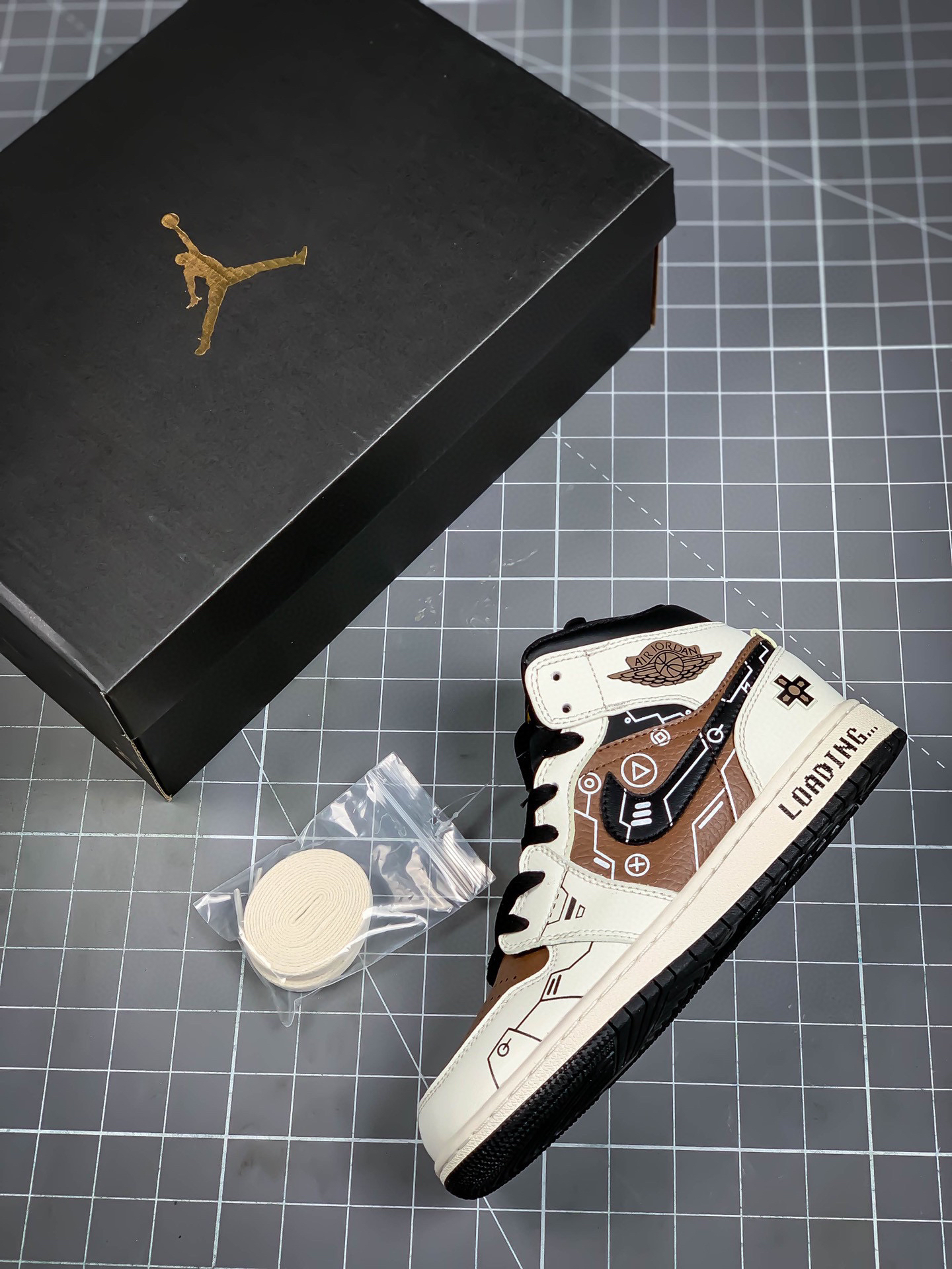 [定制球鞋] Air Jordan 1 Mid 中帮 摩卡电玩 AJ1 乔丹1代 aj1 乔1 中邦 立体按键游戏机 vibe做旧风 乔丹篮球鞋系列 以游戏机及电子游戏为创造灵感,全身黑灰色配色,加入棕色效果,鞋面鞋身灰色质感满满,swoosh上按键图案与棕色电路纹理,vibe风泛黄中底上,后跟立体按键,各处细节表达对电子游戏的热爱。