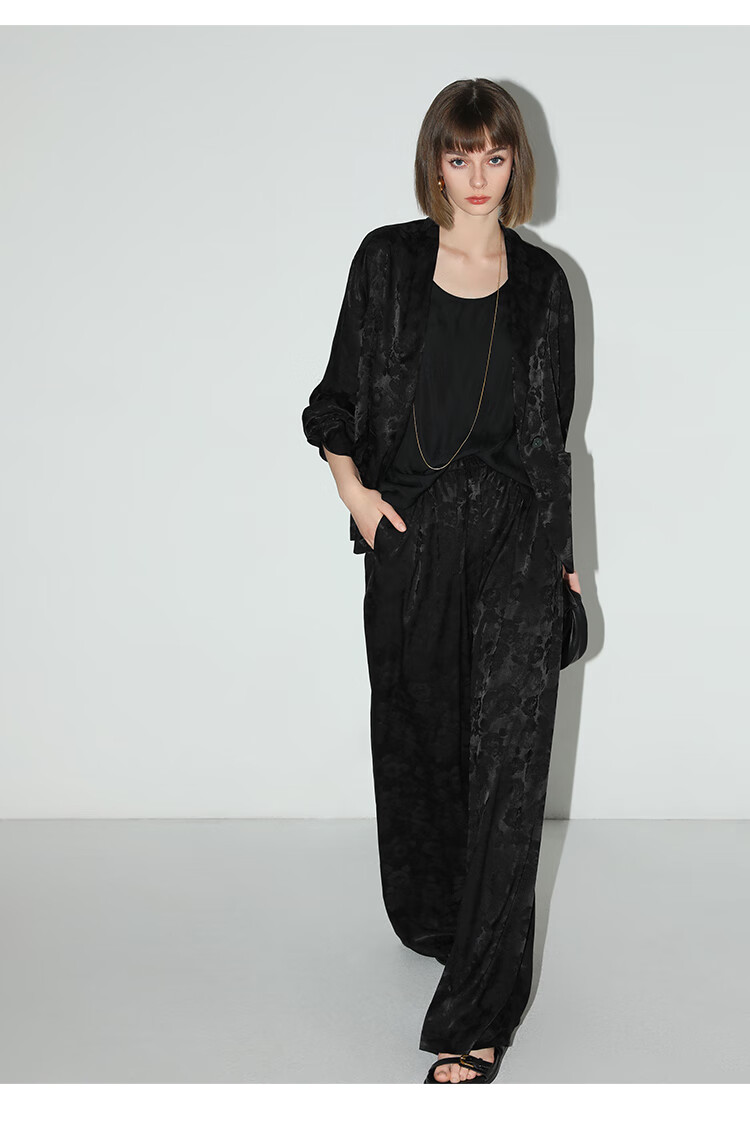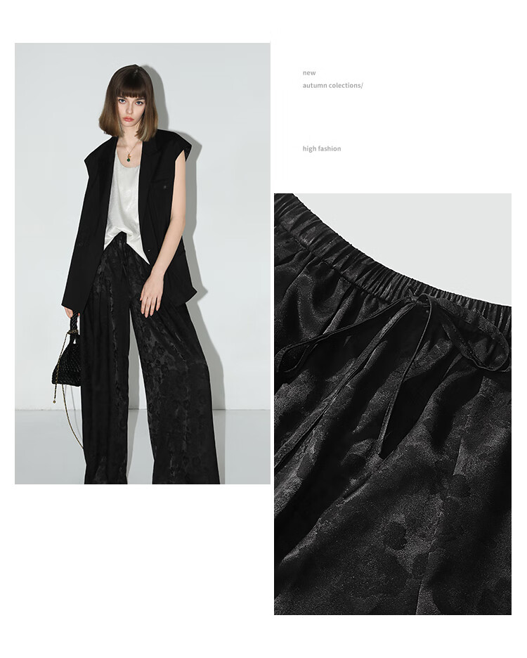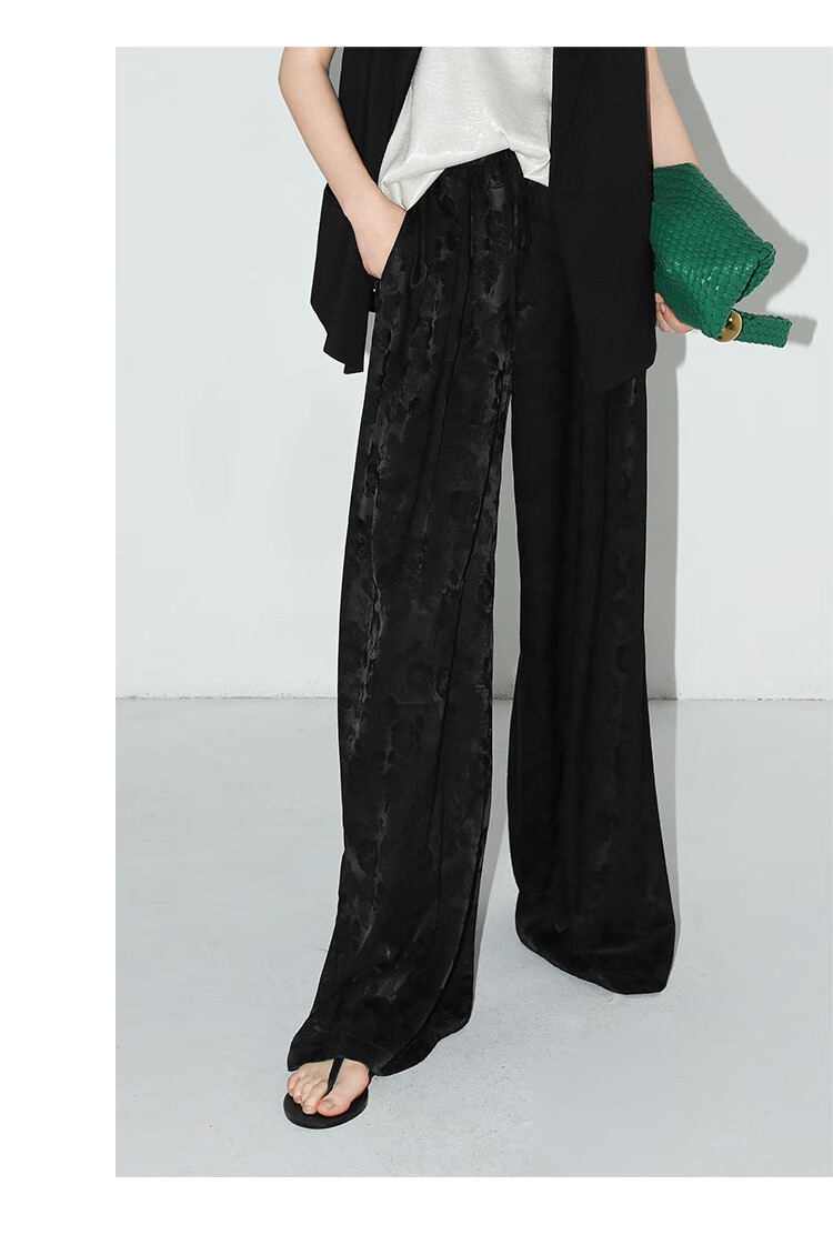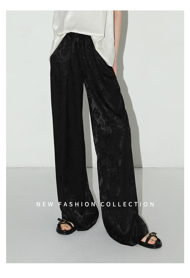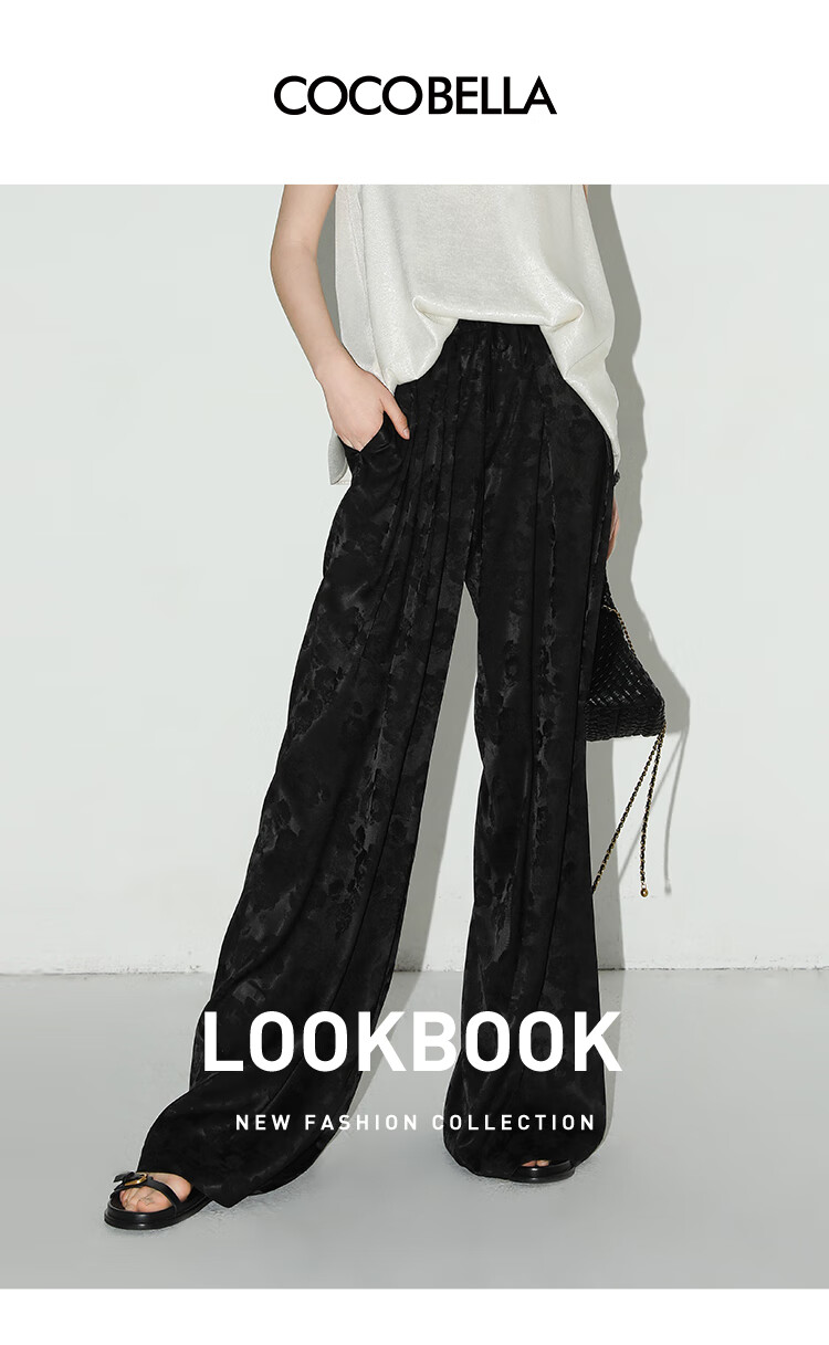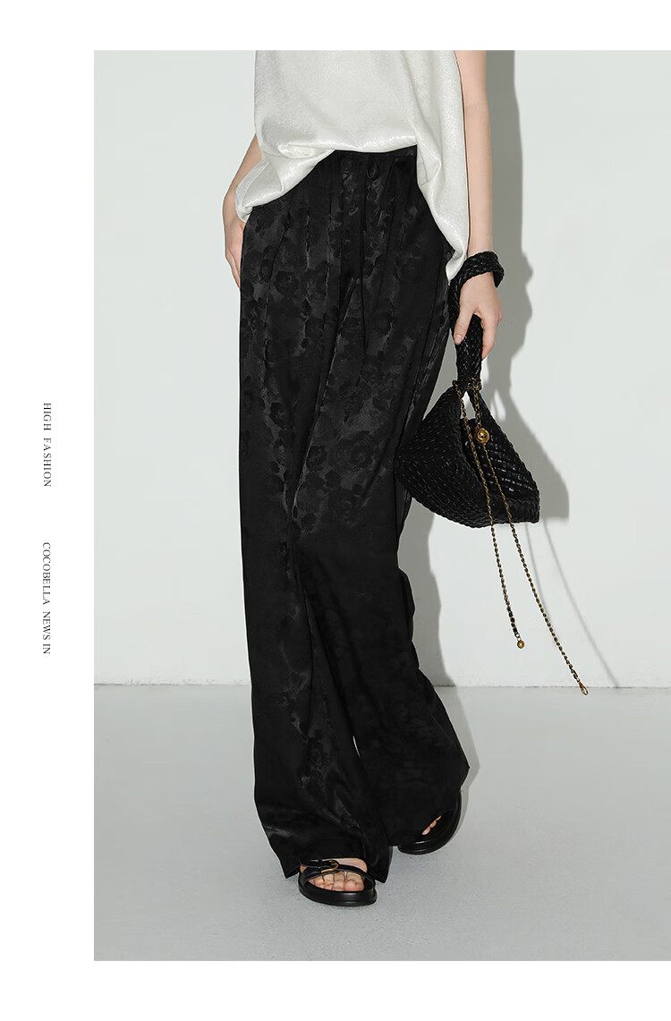 COCOBELLA新中式雾感提花缎面阔腿裤女春夏垂坠直筒裤PA0018
