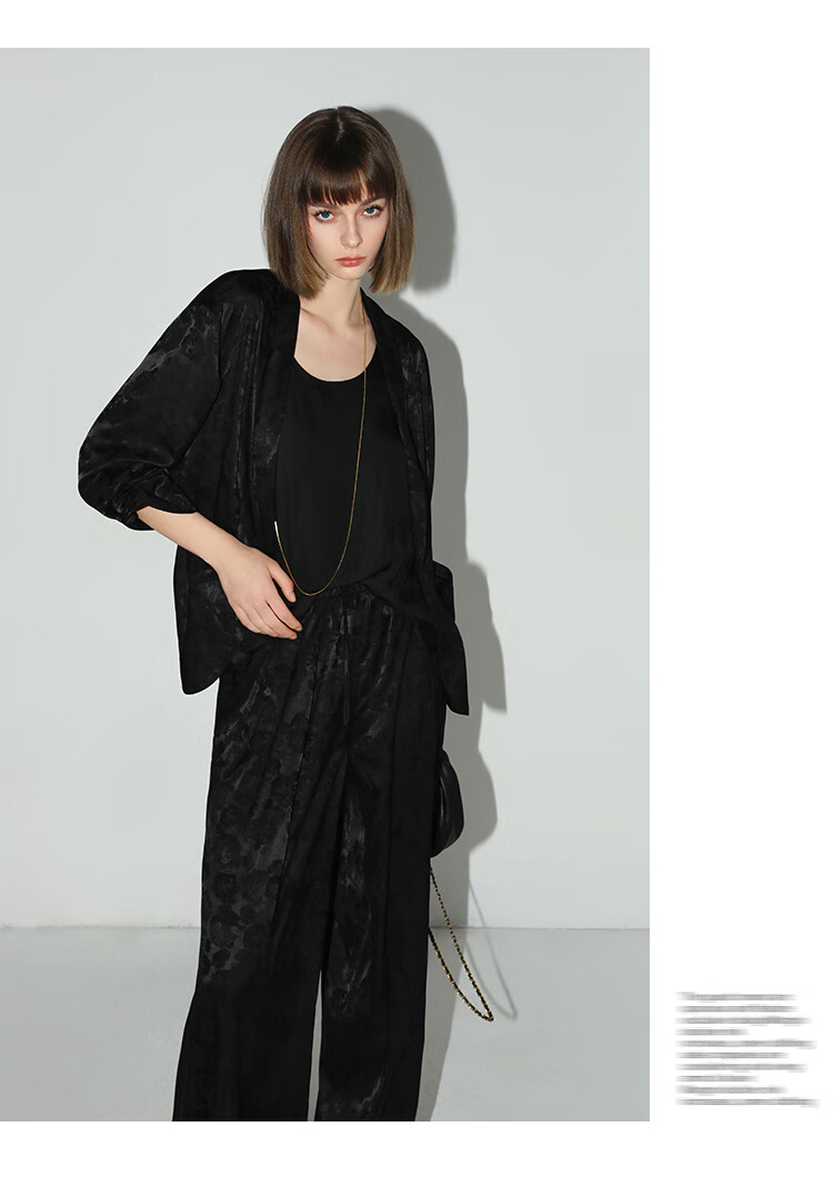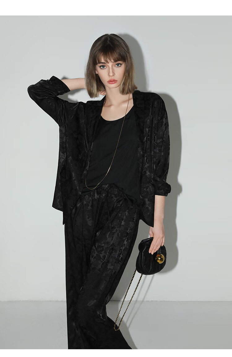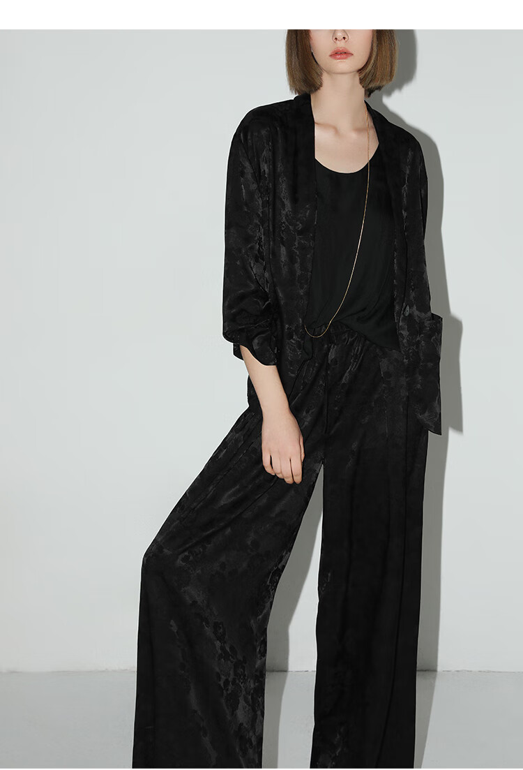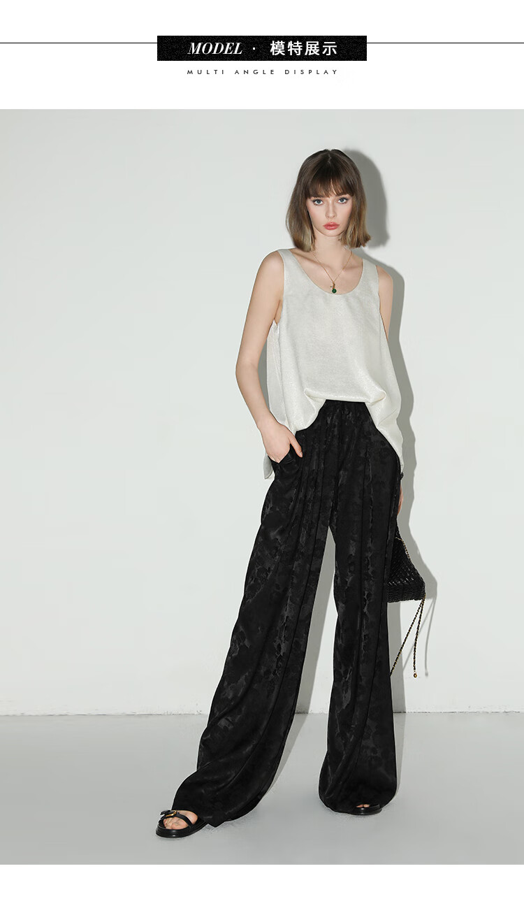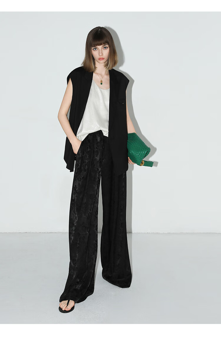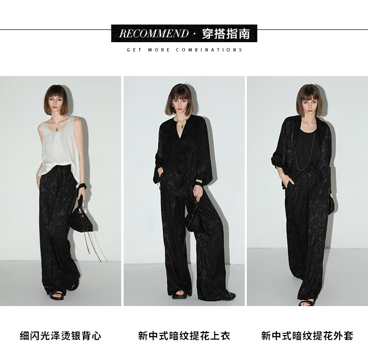 COCOBELLA新中式雾感提花缎面阔腿裤女春夏垂坠直筒裤PA0018