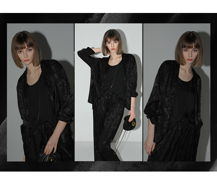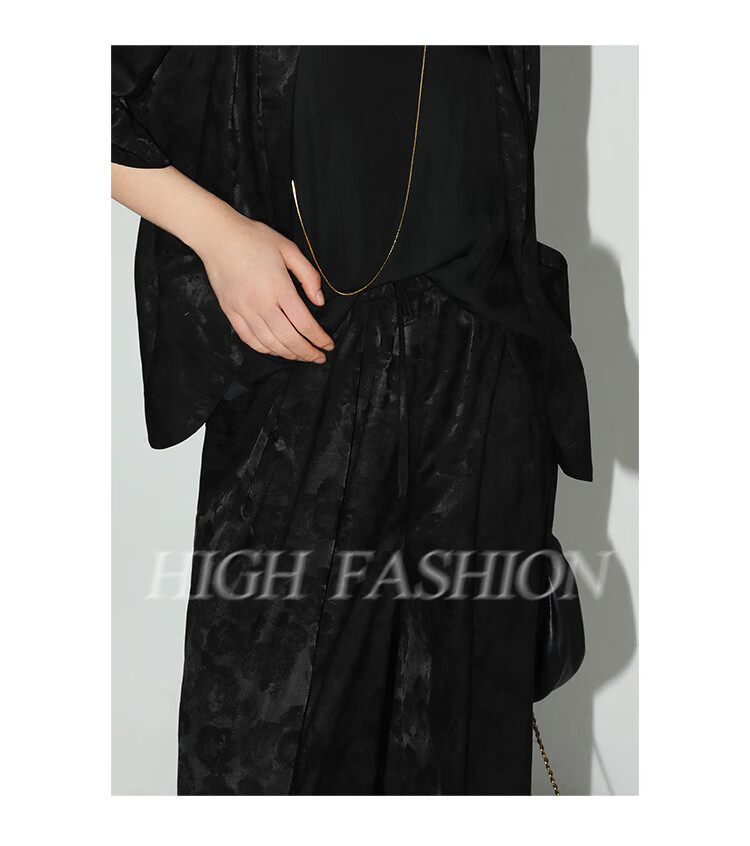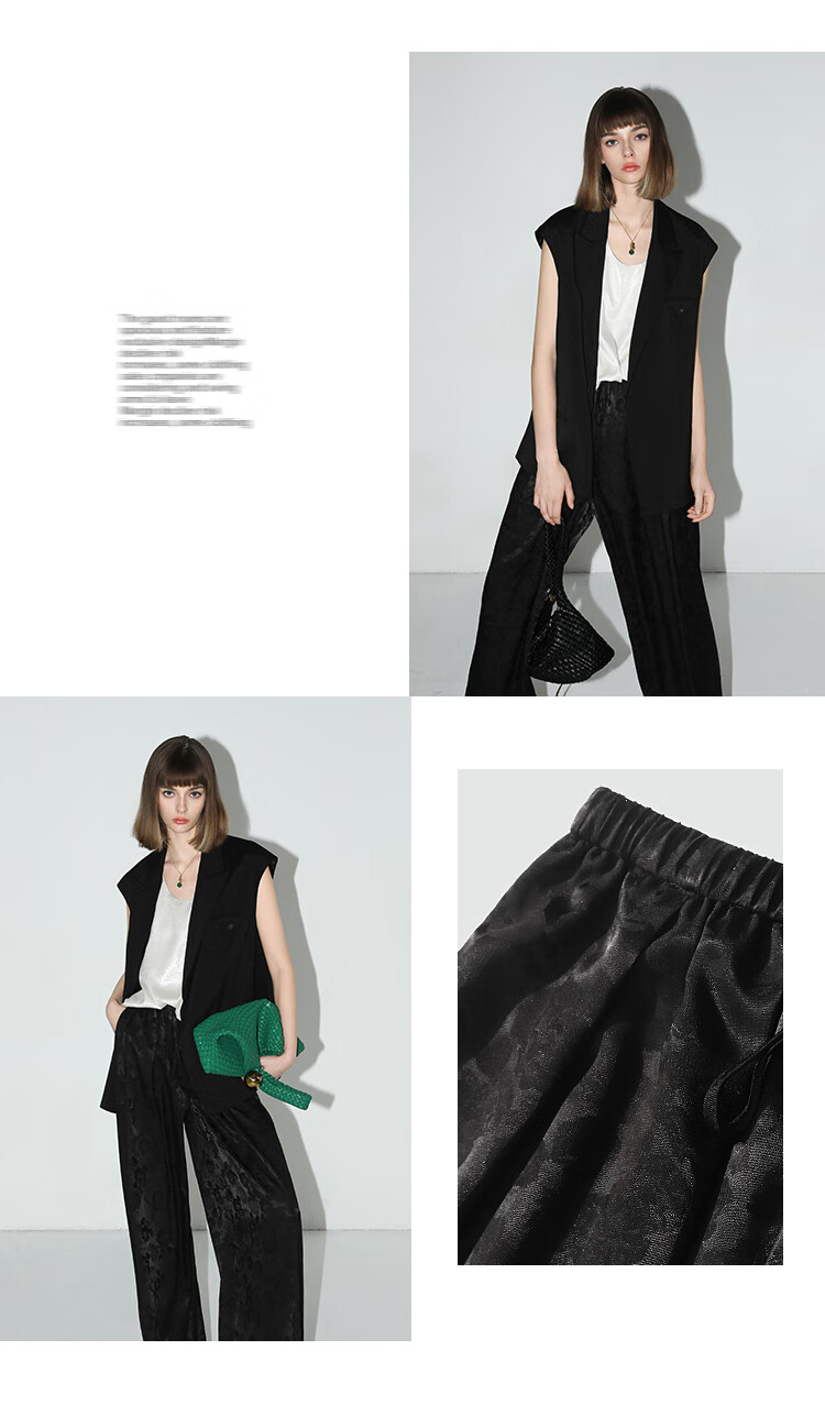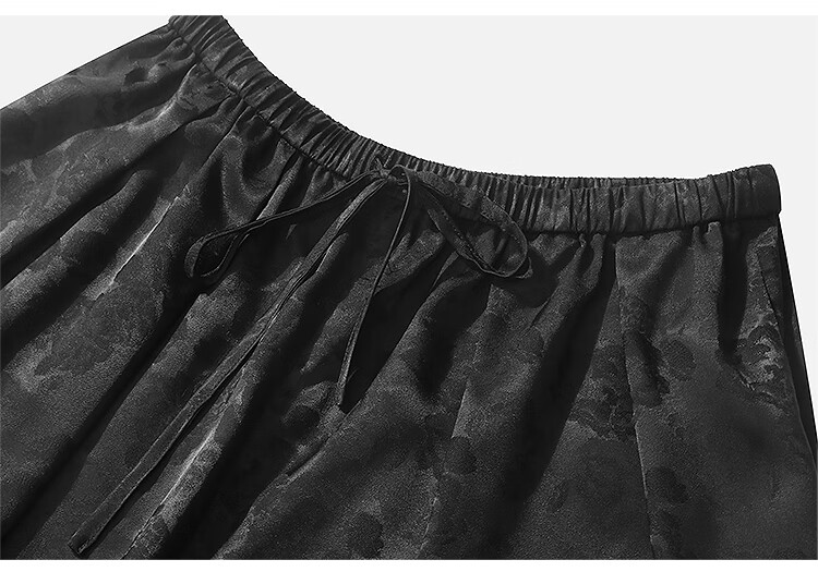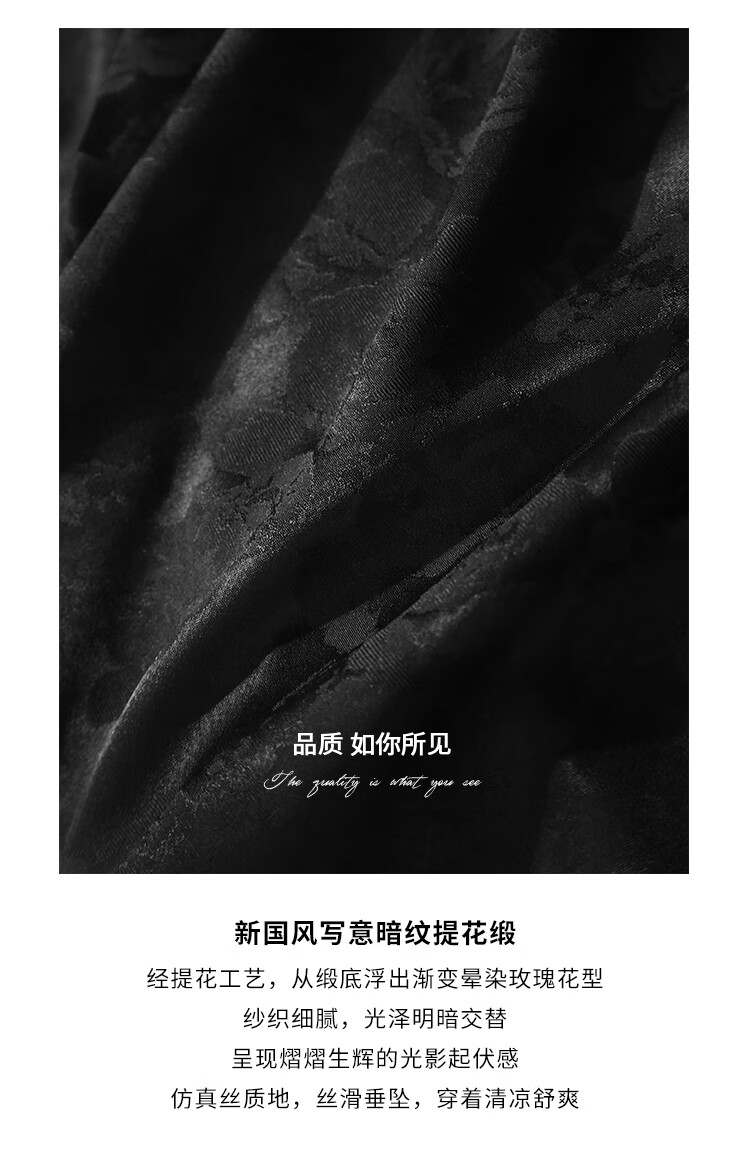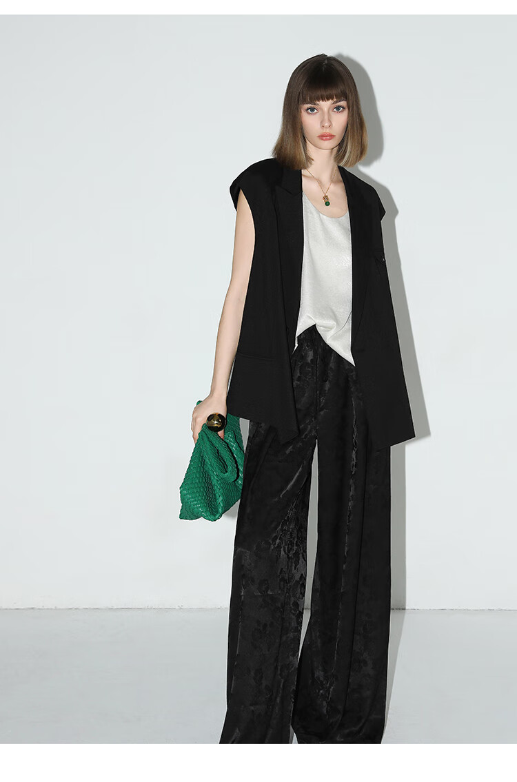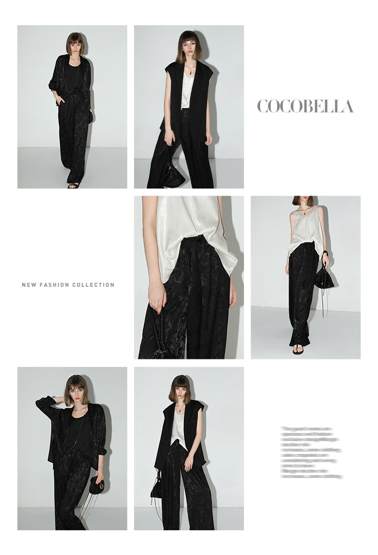COCOBELLA新中式雾感提花缎面阔腿裤女春夏垂坠直筒裤PA0018