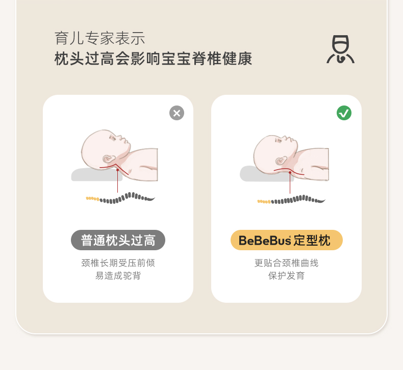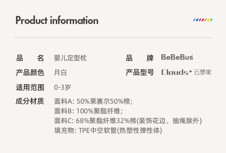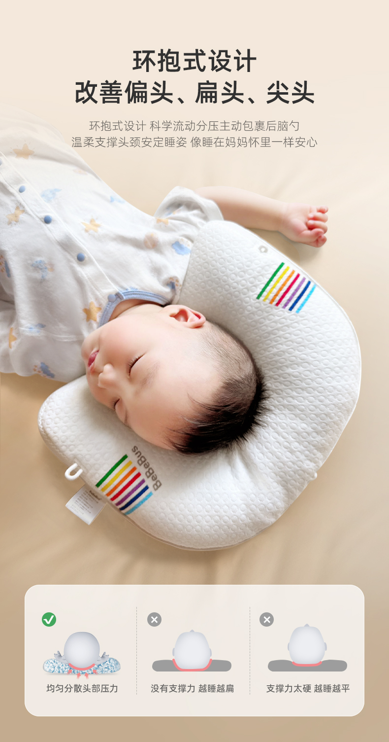 BeBeBus云梦家 婴儿定型枕防偏头纠正头型0-1岁宝宝枕头 抗菌防螨 改善头型
