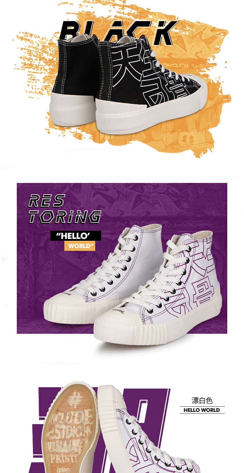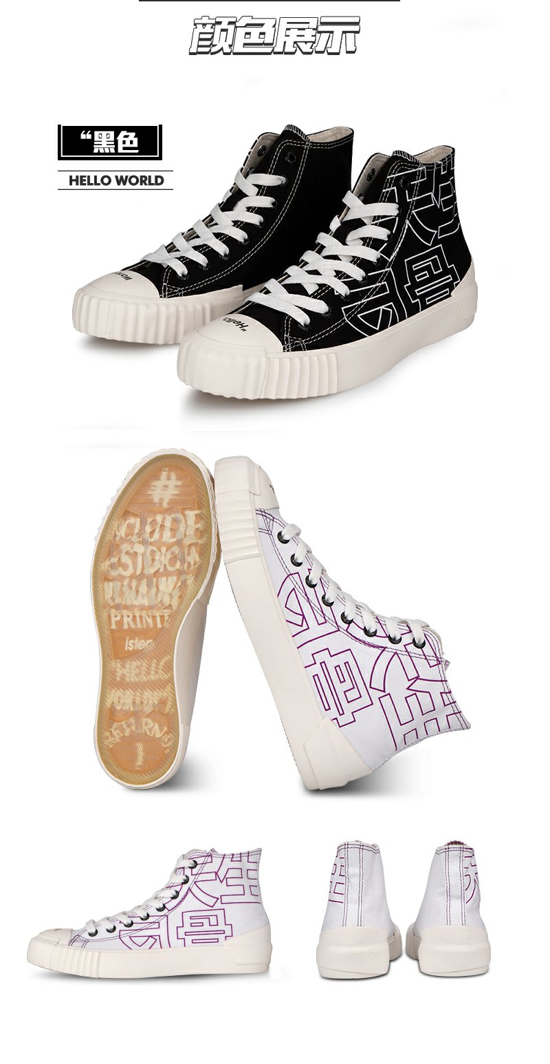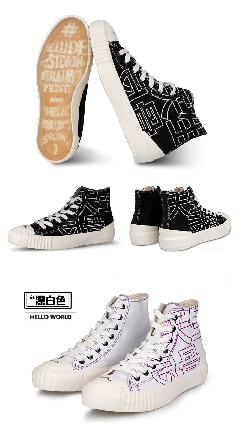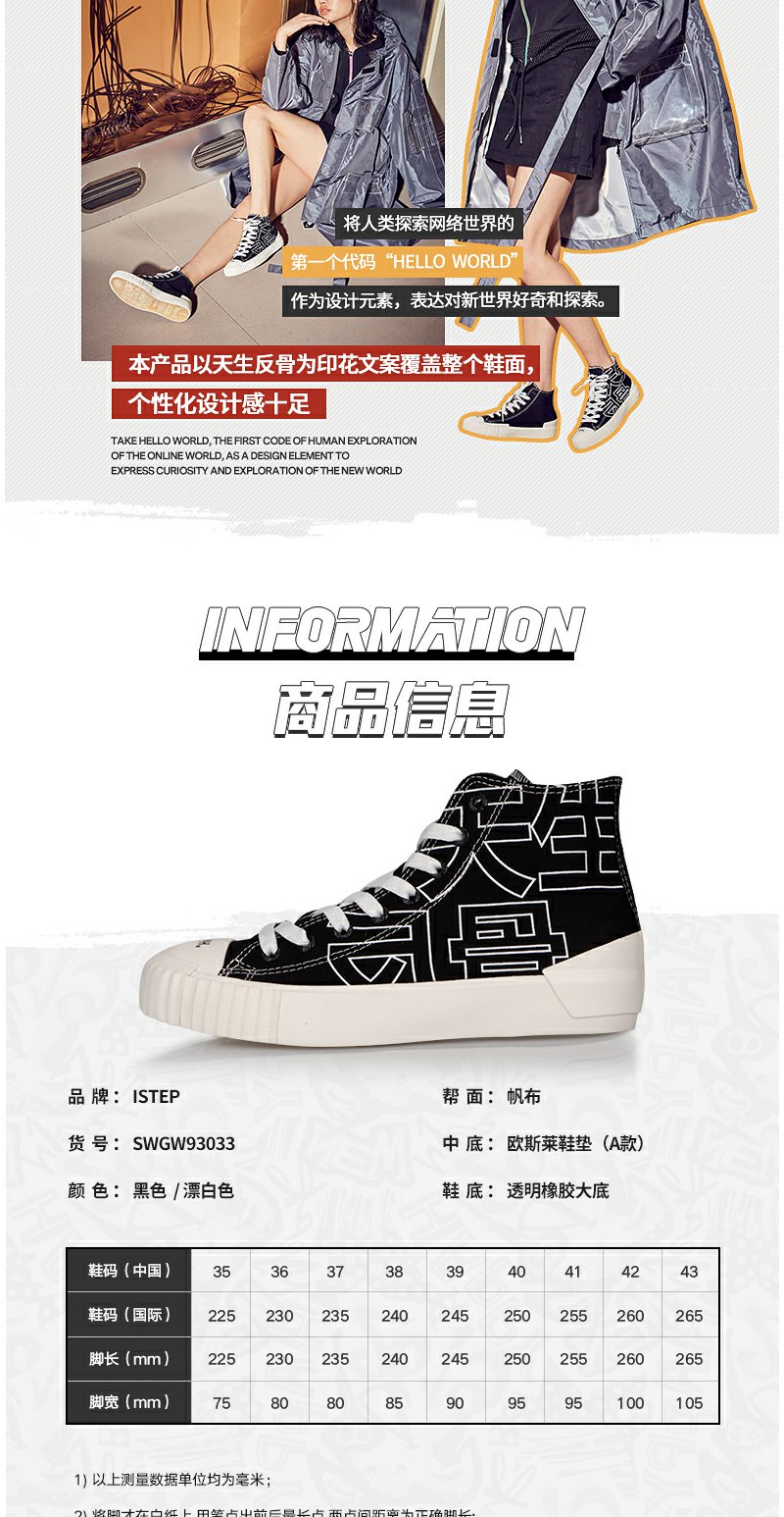 iSTEP2023新款女鞋印花天生反骨纯色高帮帆布鞋学生透明底板鞋