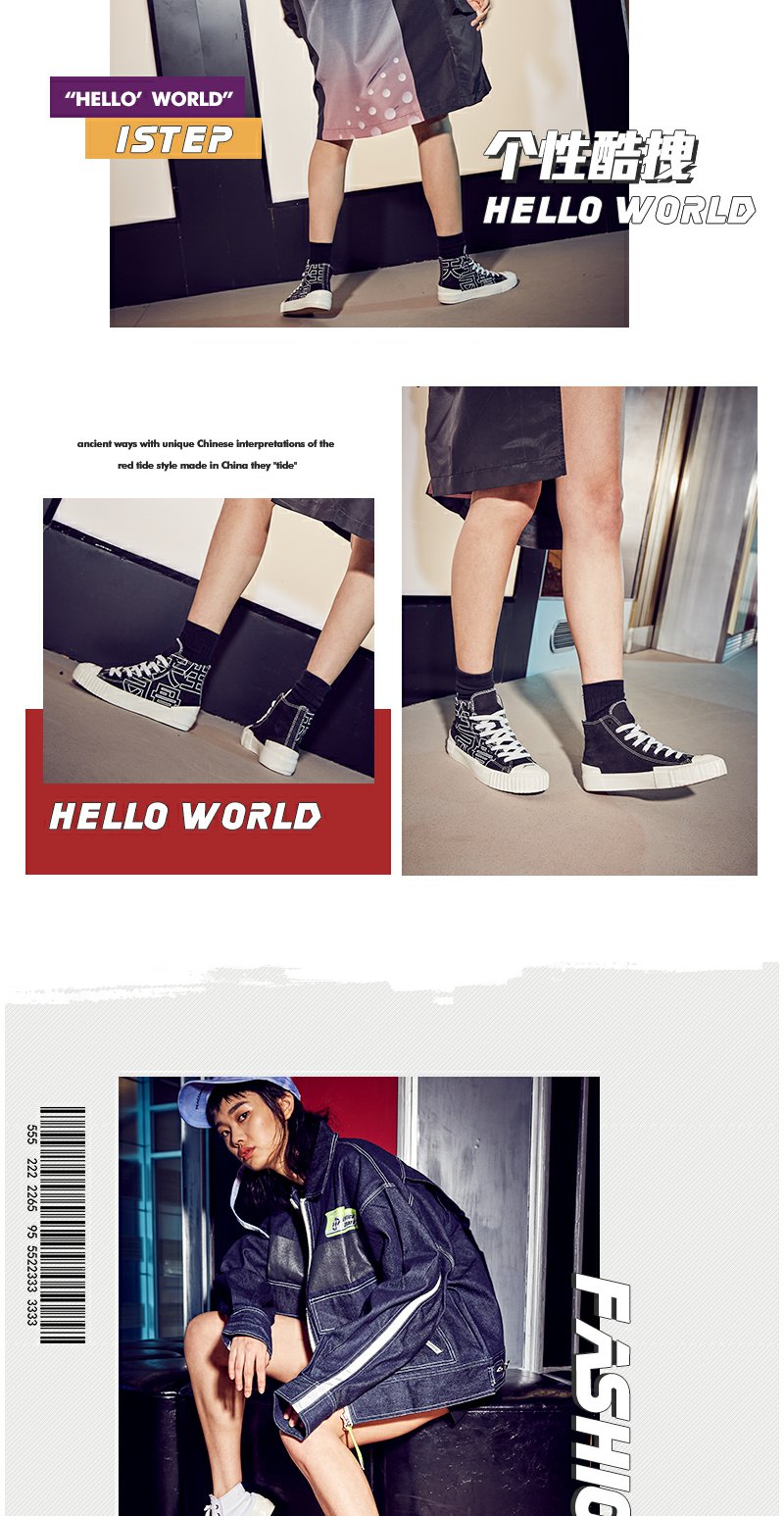 iSTEP夏季情侣款池磊联名帆布鞋国潮闪电撞色拼接印花休闲女鞋