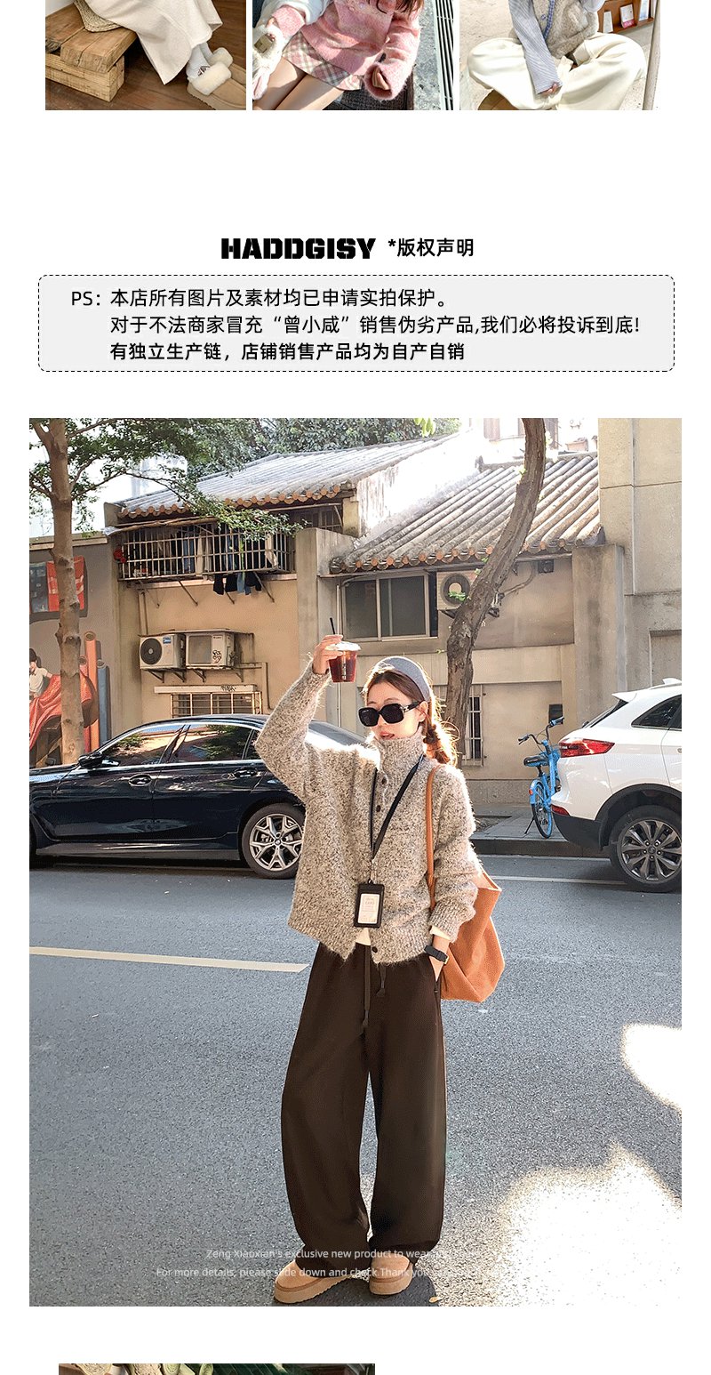 <曾小咸推荐>咖灰色立领宽松毛衣