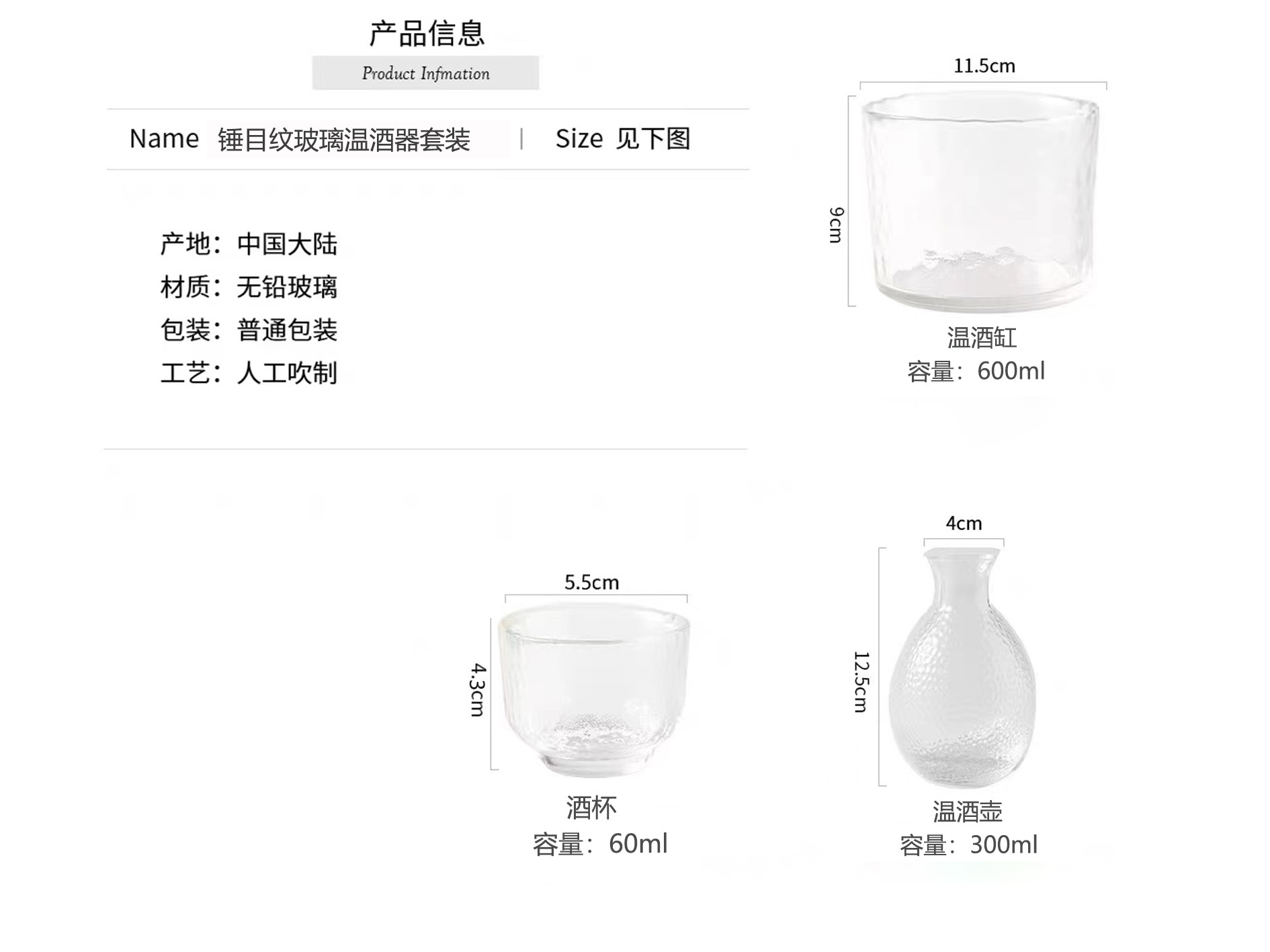 酒杯:直径5.5cm、高4.3cm;容量60ml