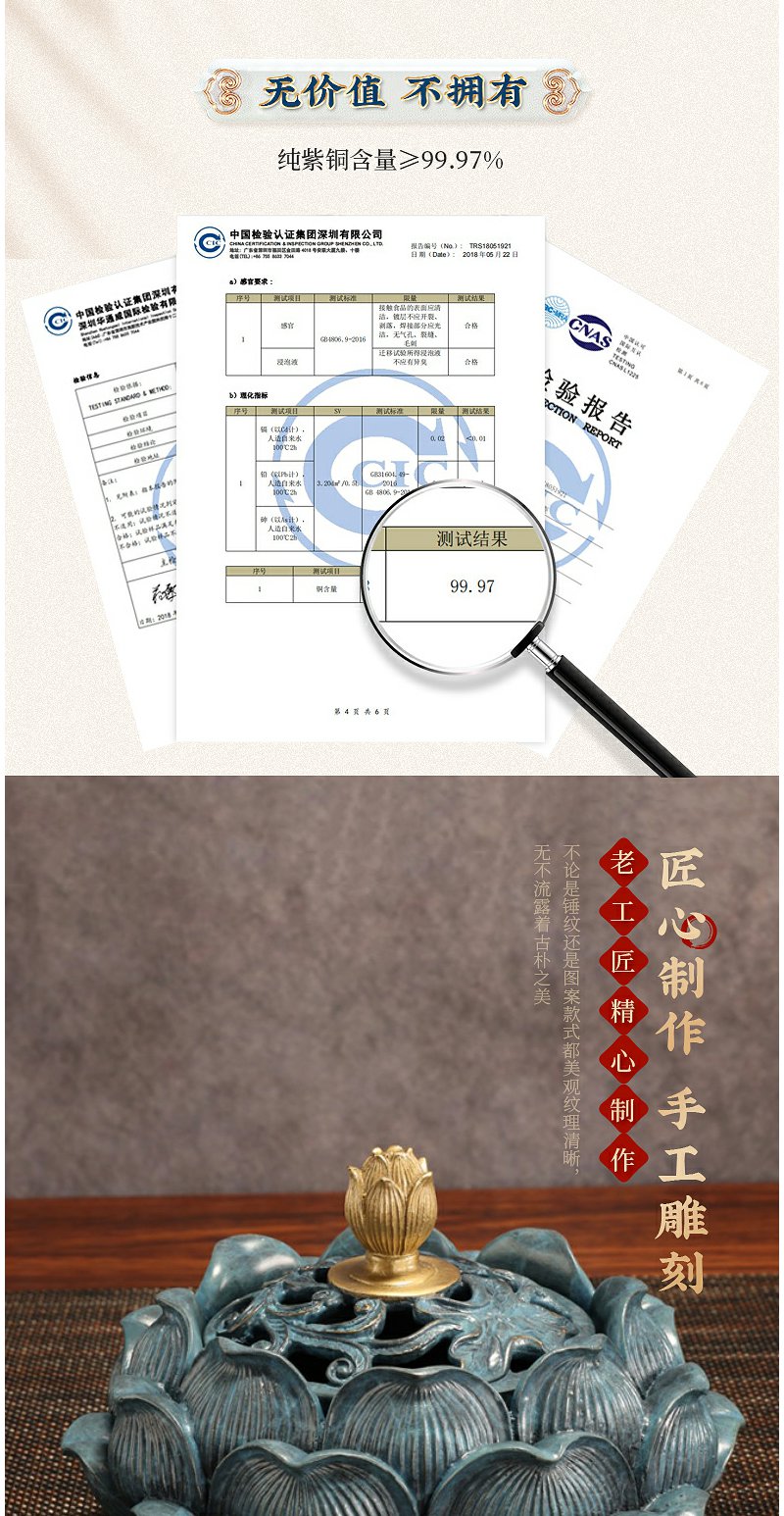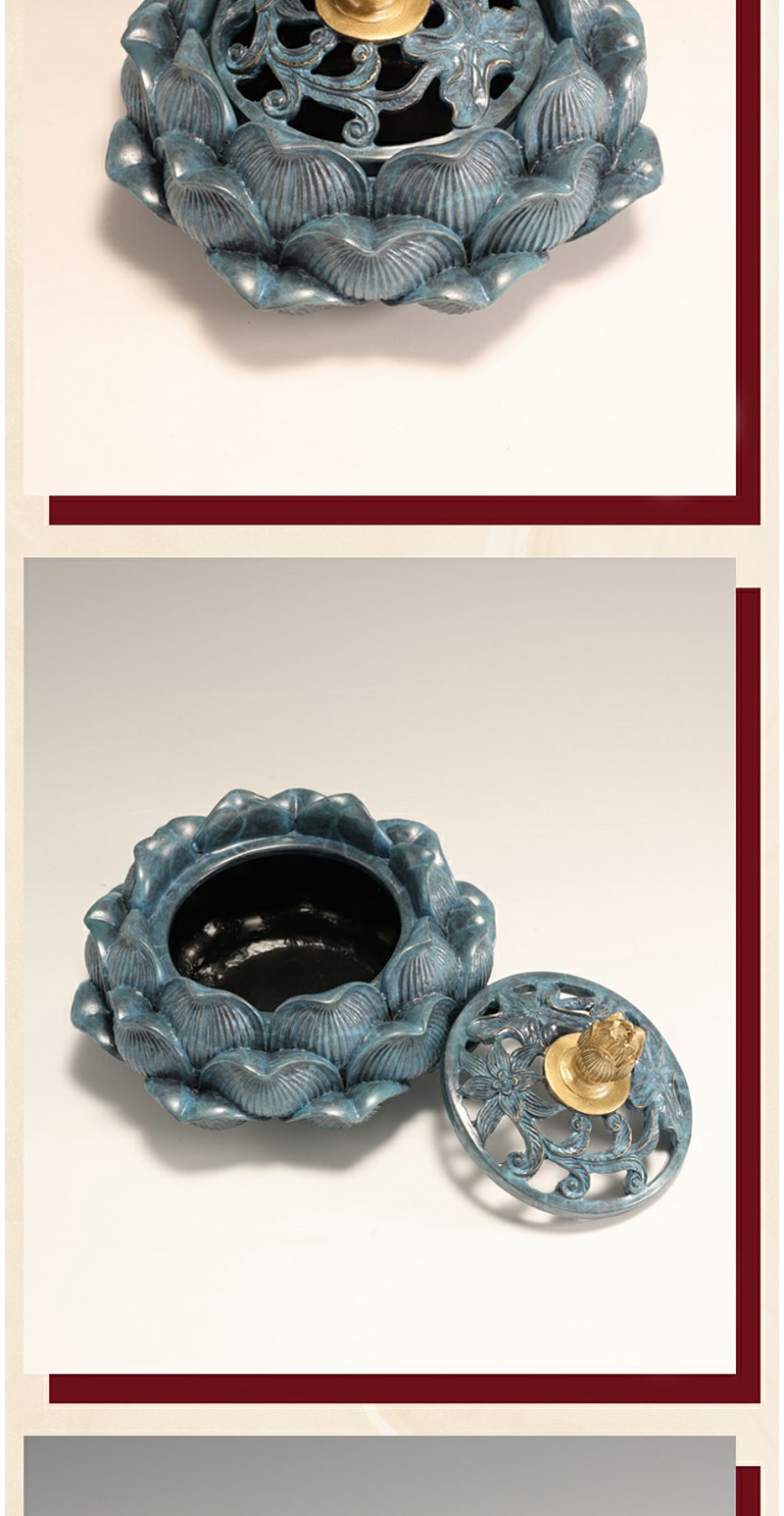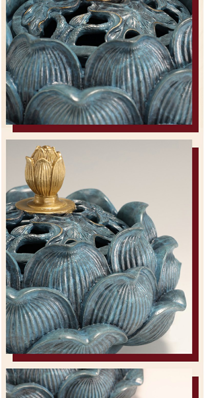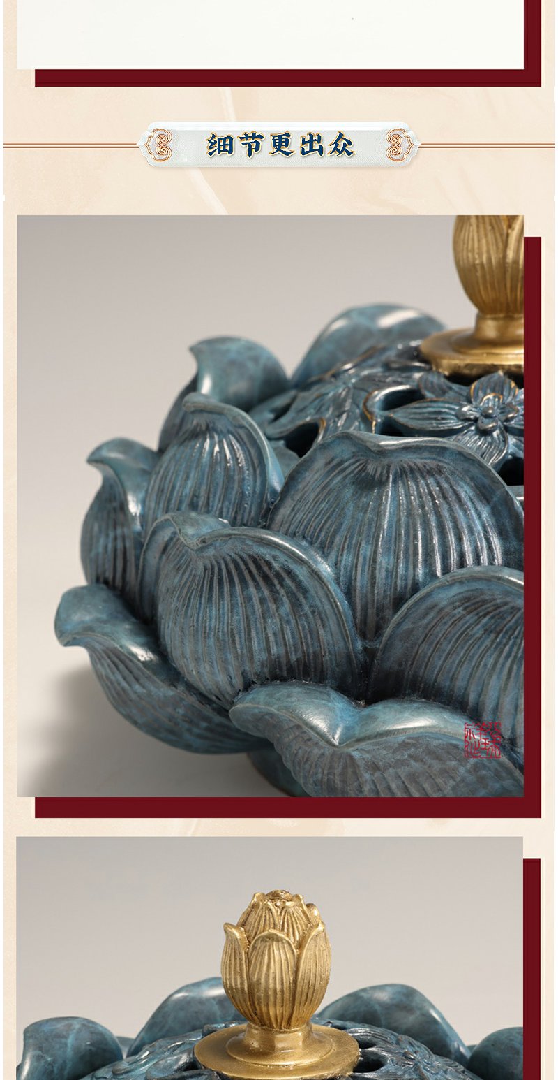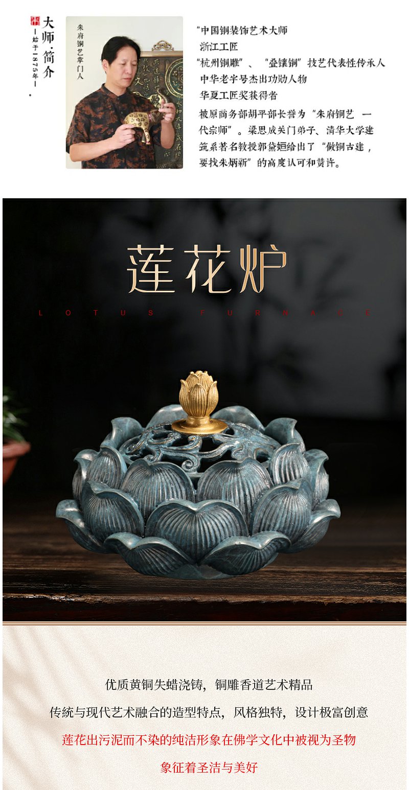 朱府铜艺 纯铜莲花炉摆件家居书房办公室桌面创意工艺品礼品