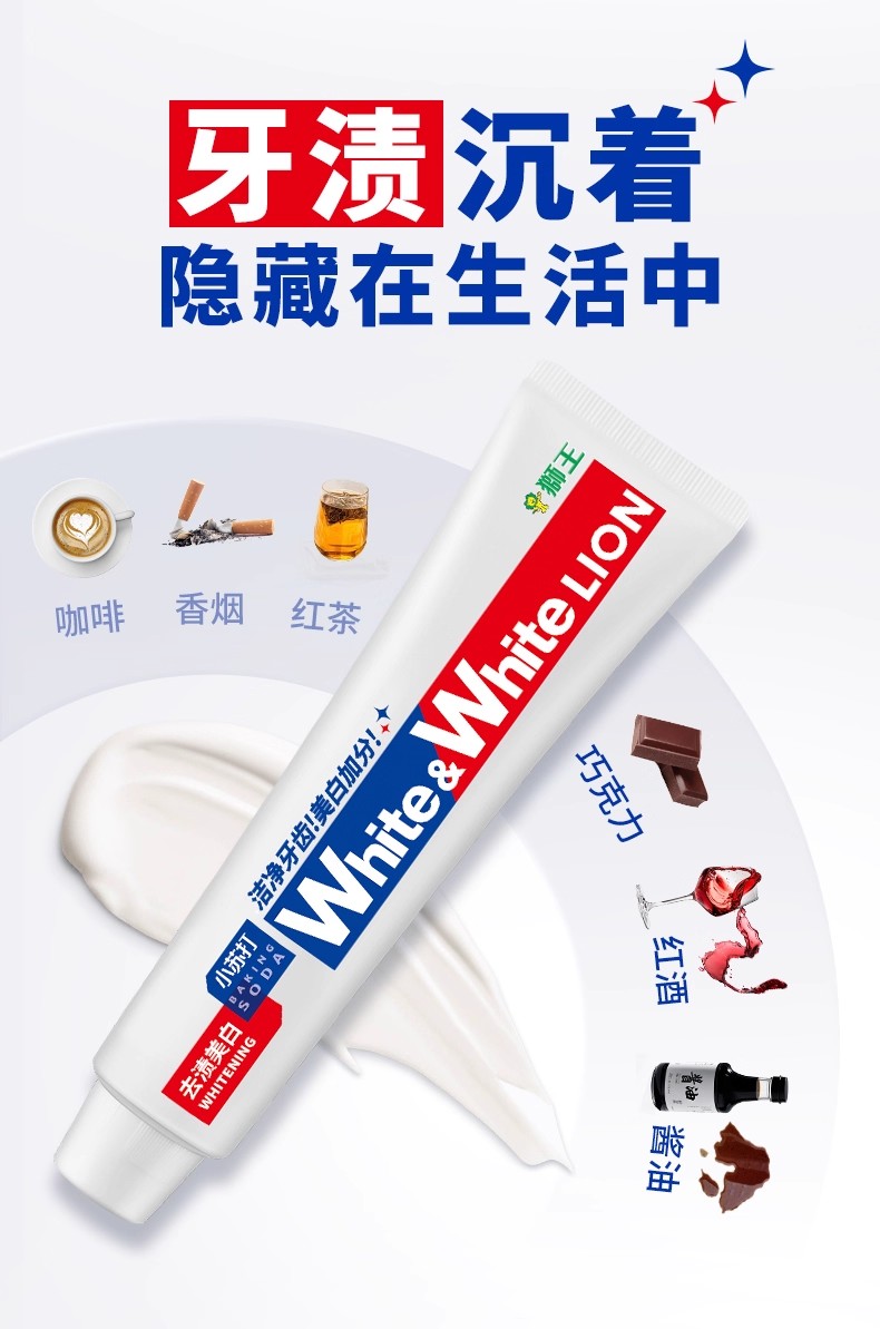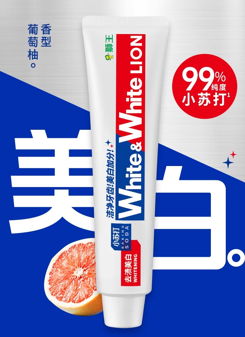 LION狮王WHITE&WHITE大白葡萄柚小苏打美白牙膏去渍牙膏