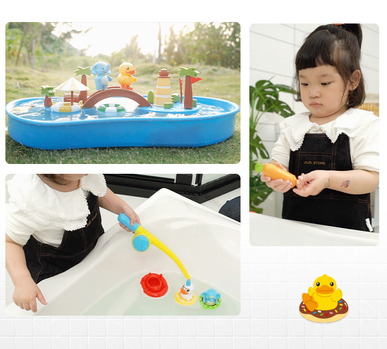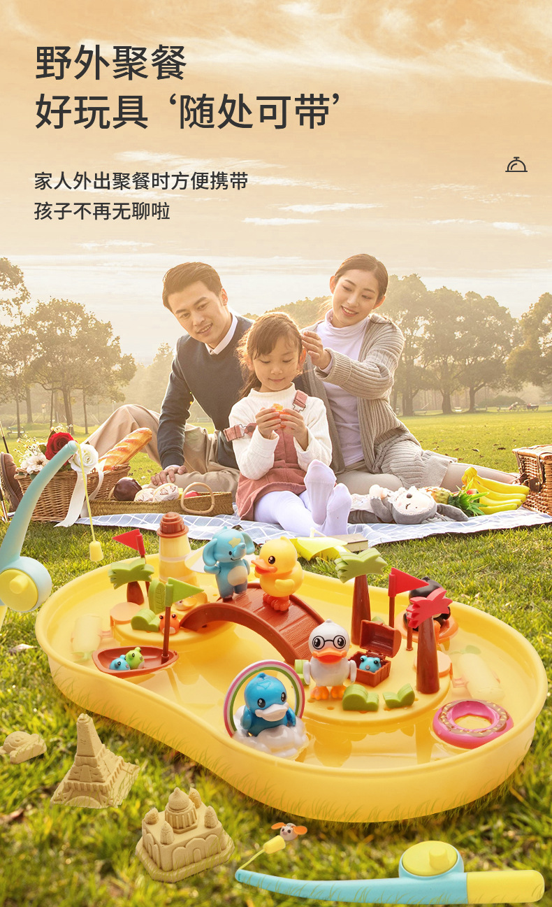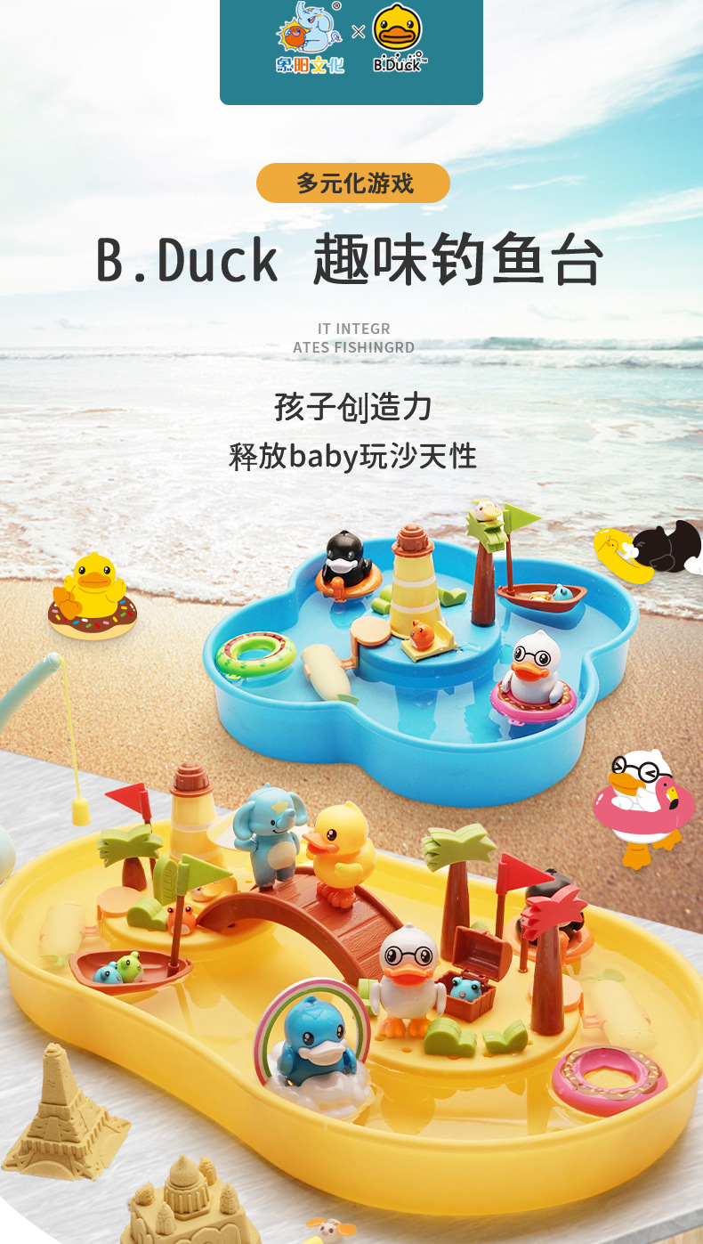 【玩沙戏水钓鱼盘 一套备齐花式玩】B.Duck小黄鸭宝宝戏水沙盘 释放baby玩沙天性 漂流冒险乐园