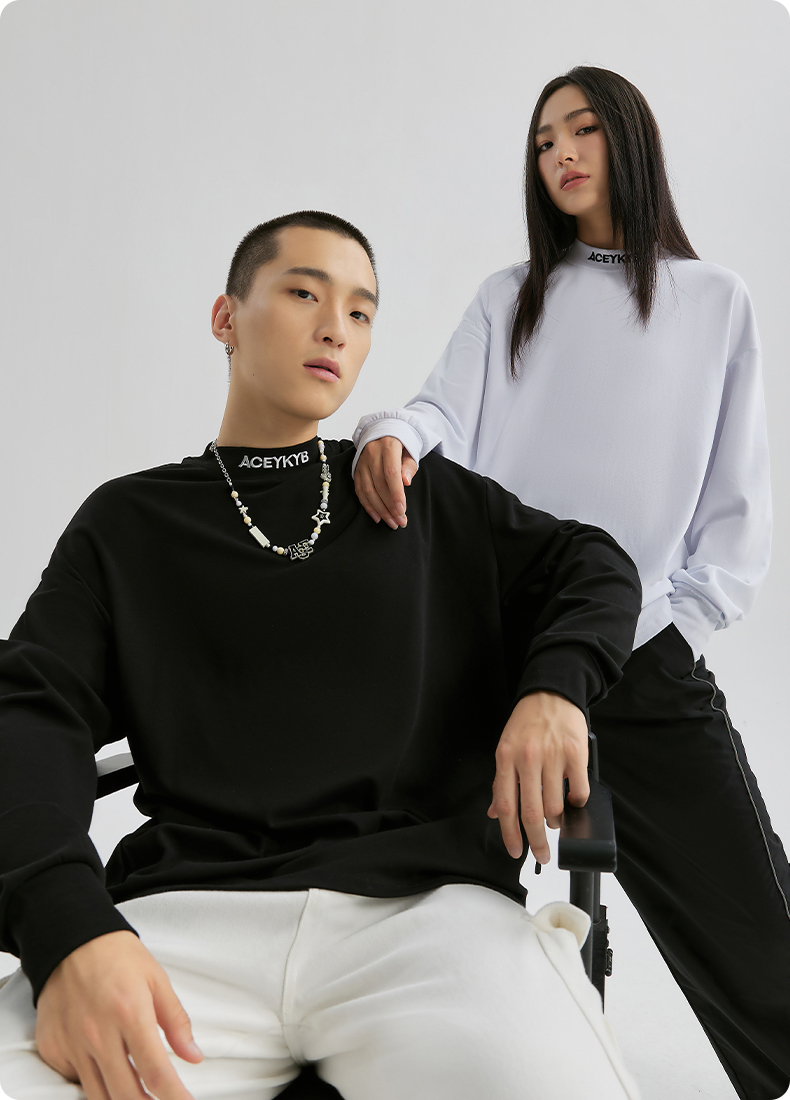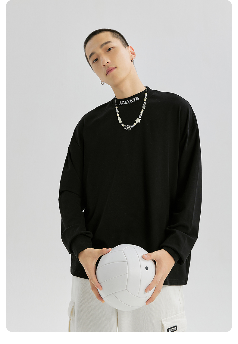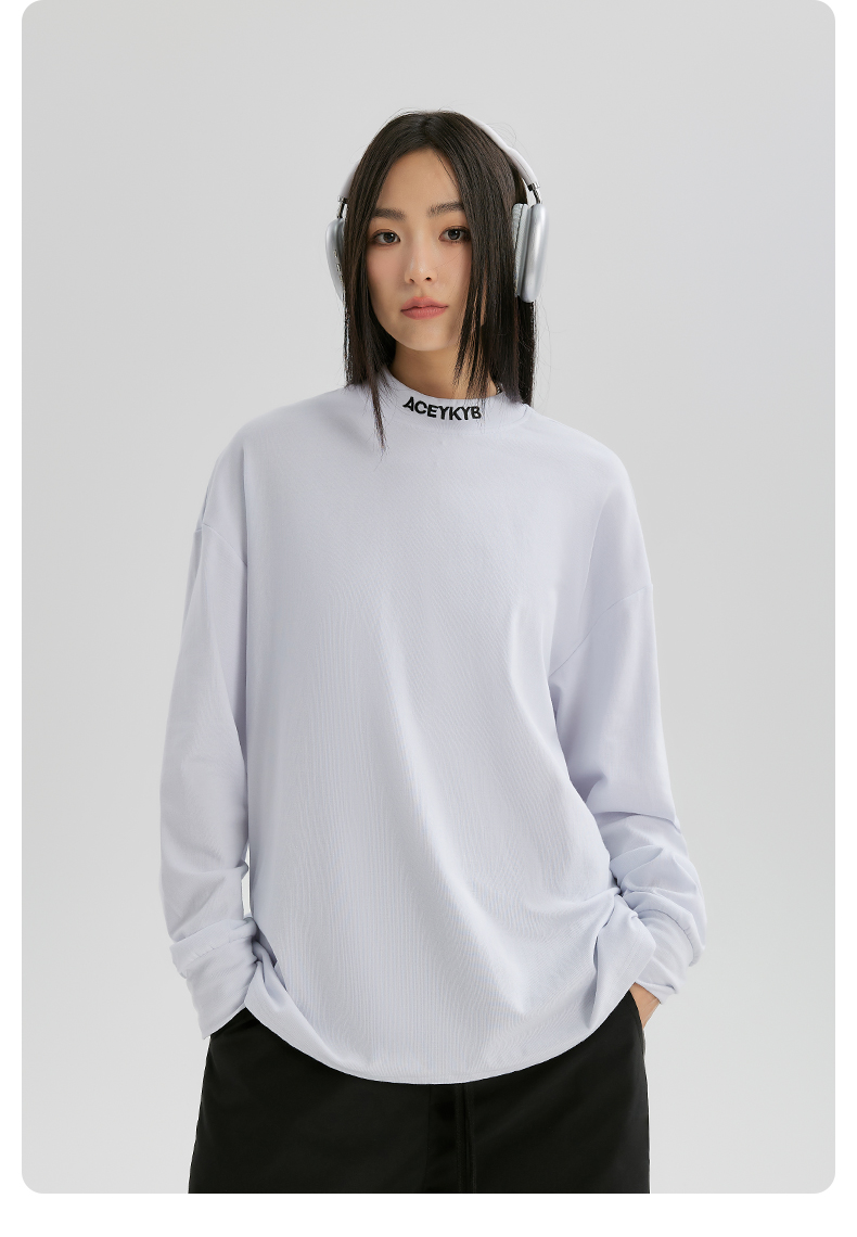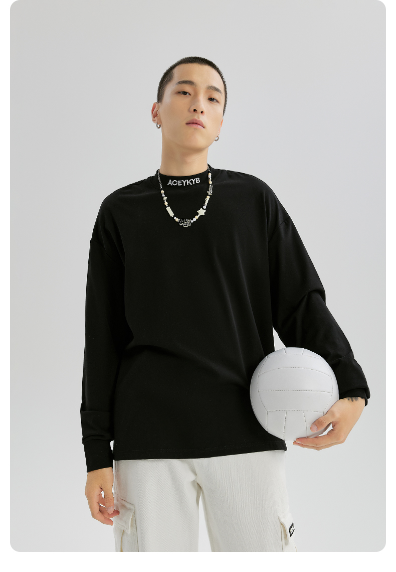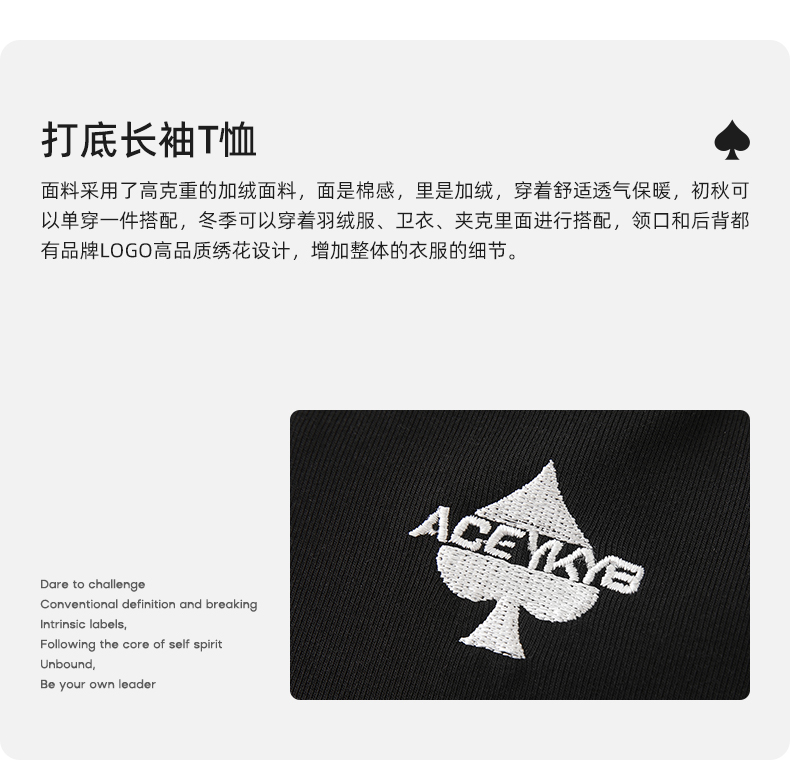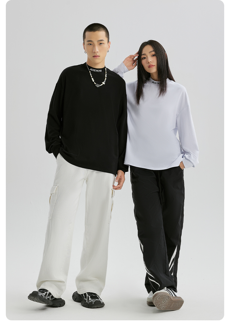 YKYB加绒长袖T恤潮牌街头休闲上衣小高领纯色简约百搭宽松打底衫