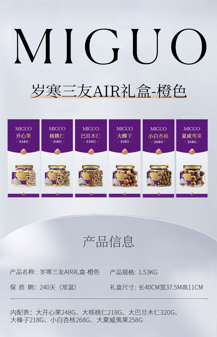 觅菓岁寒三友橙色坚果礼盒AIR款-1.53kg【年货】KY