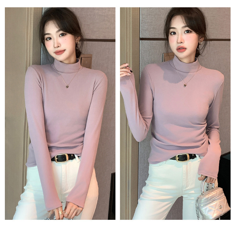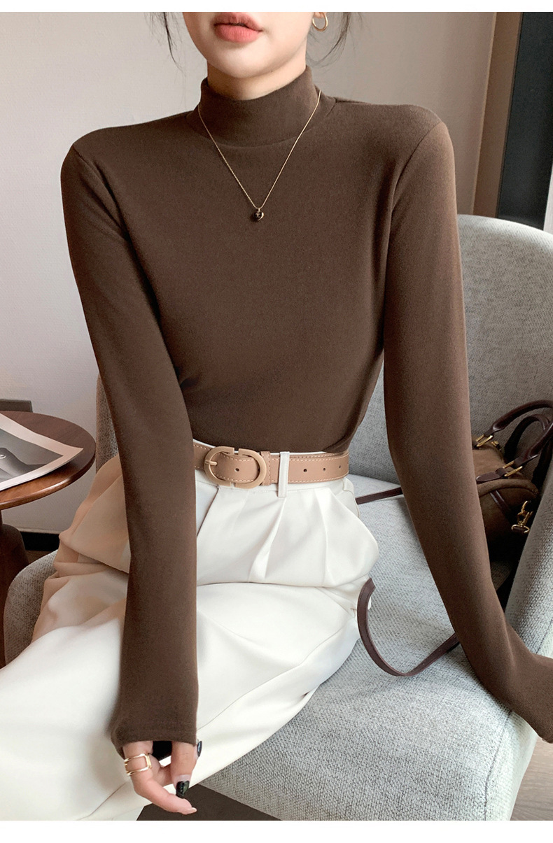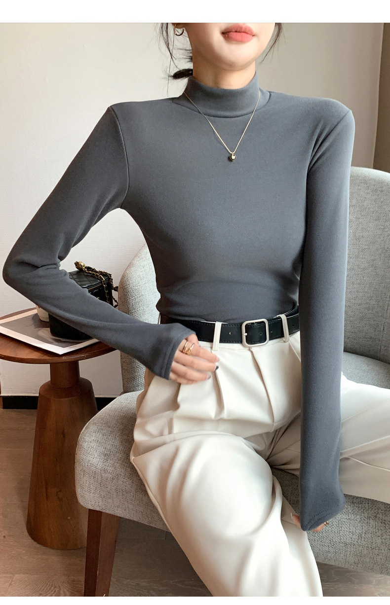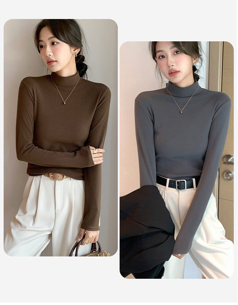 【买一送一】好版型 才舒服 半高领德绒打底衫女内搭秋冬季加绒磨毛长袖中领纯色修身打 底衣