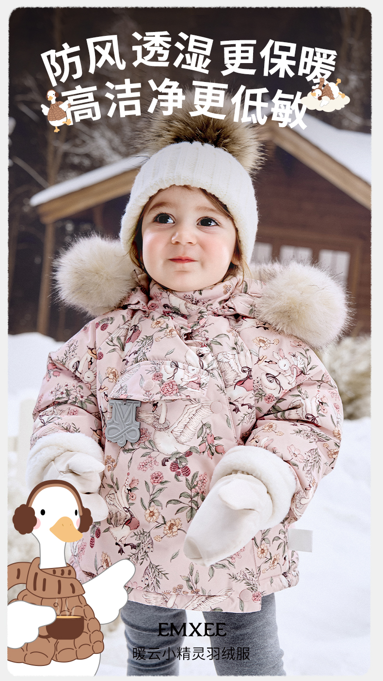 【宝宝服饰】嫚熙童装儿童羽绒服宝宝加绒加厚95鹅绒男女童外出防风保暖外套冬