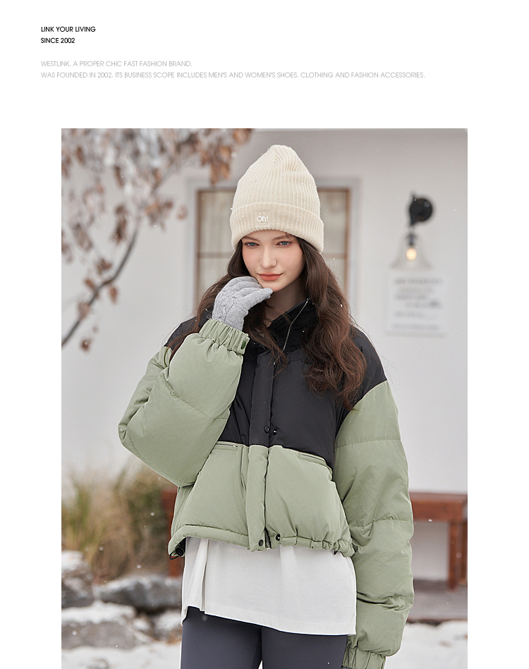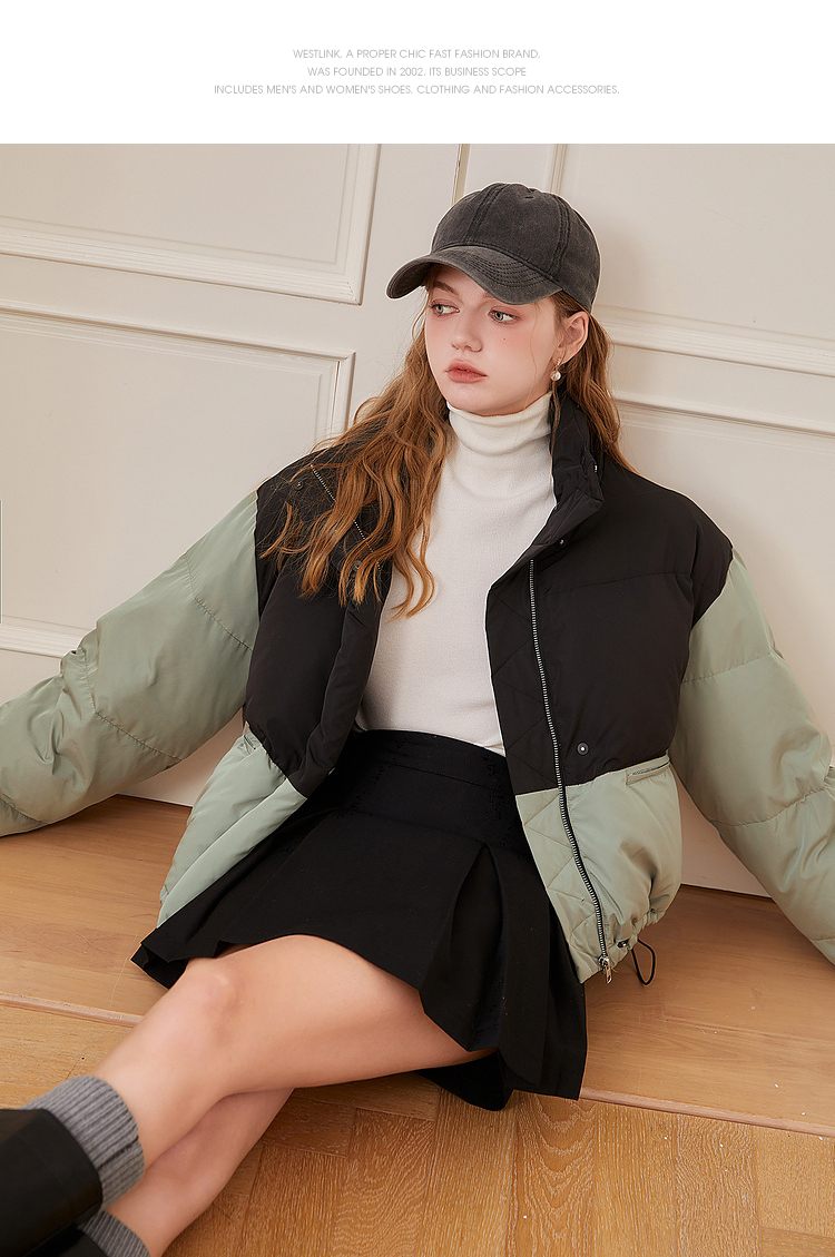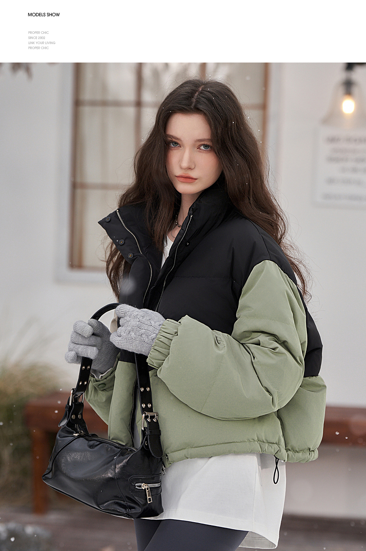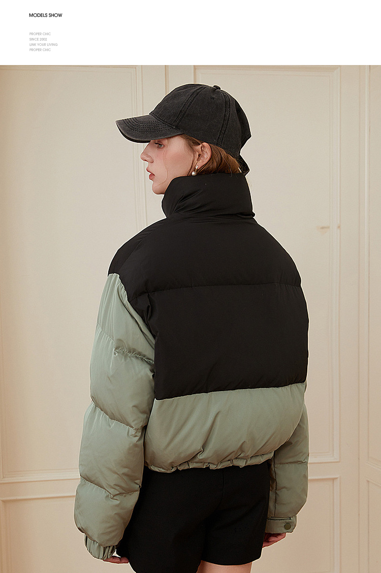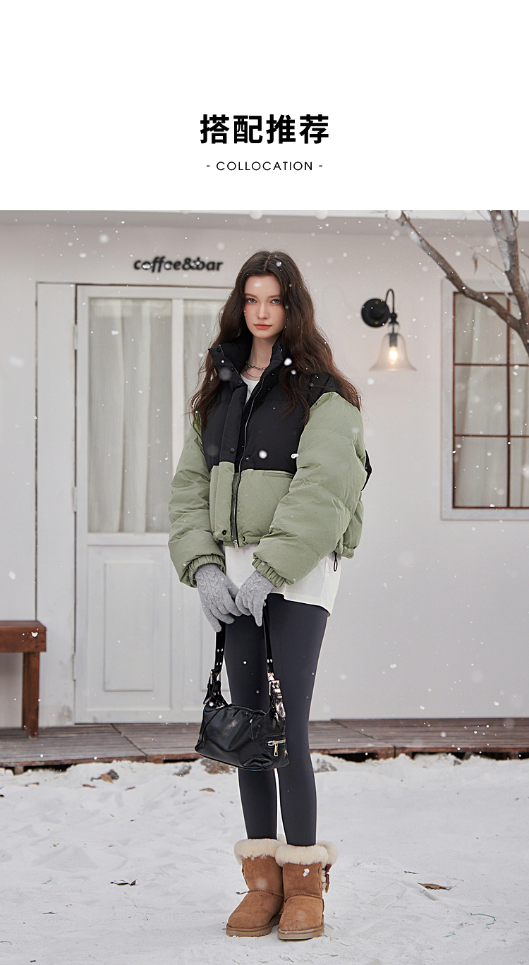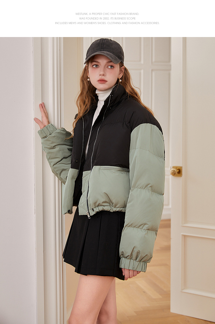 拼接立领羽绒外套女冬季新款保暖撞色短款外套面包服V2331652