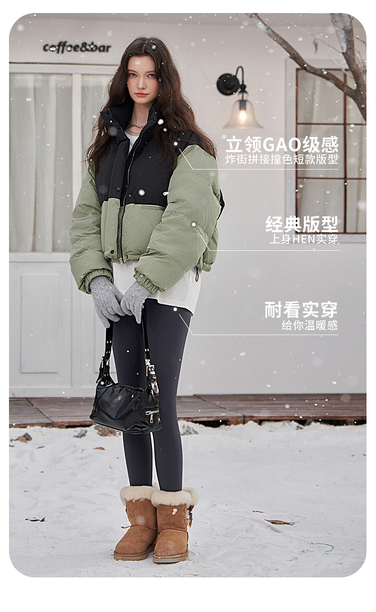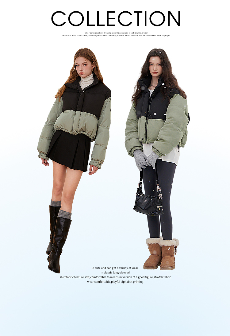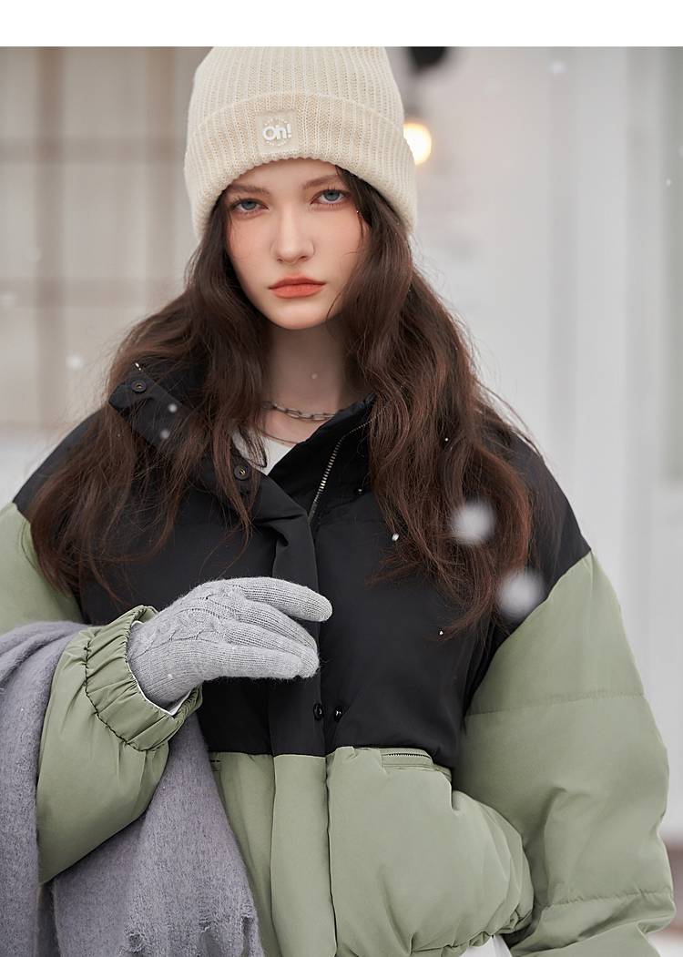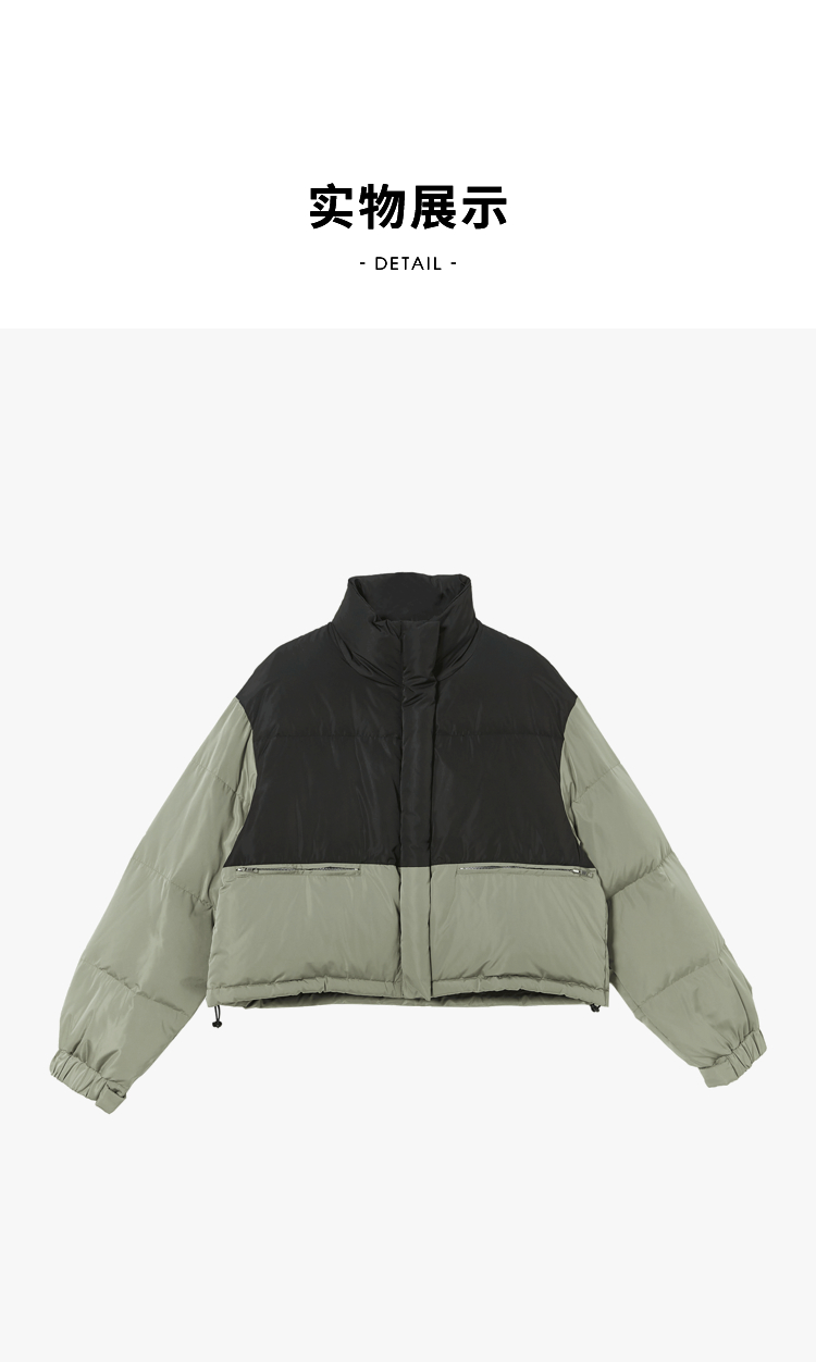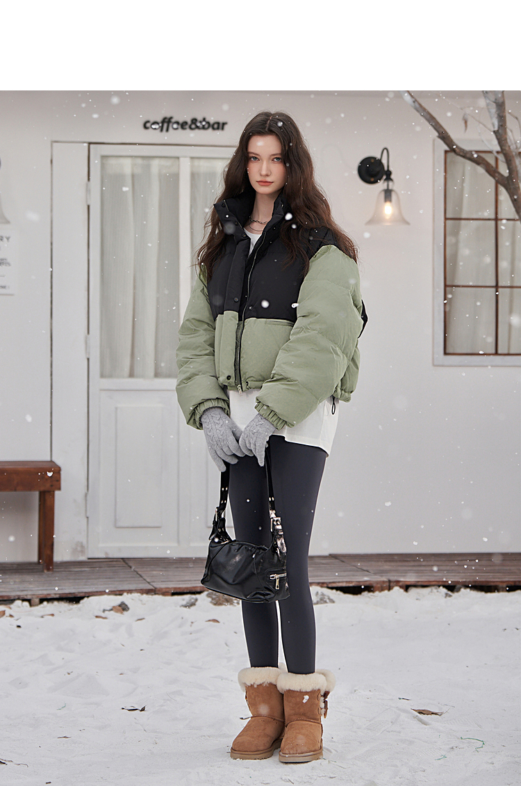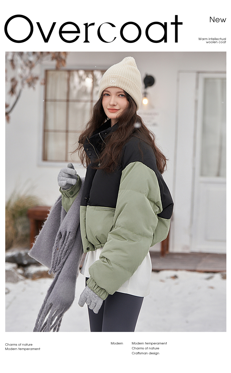 拼接立领羽绒外套女冬季新款保暖撞色短款外套面包服V2331652