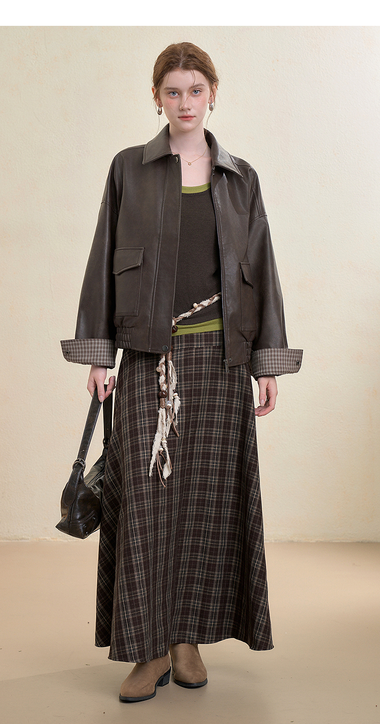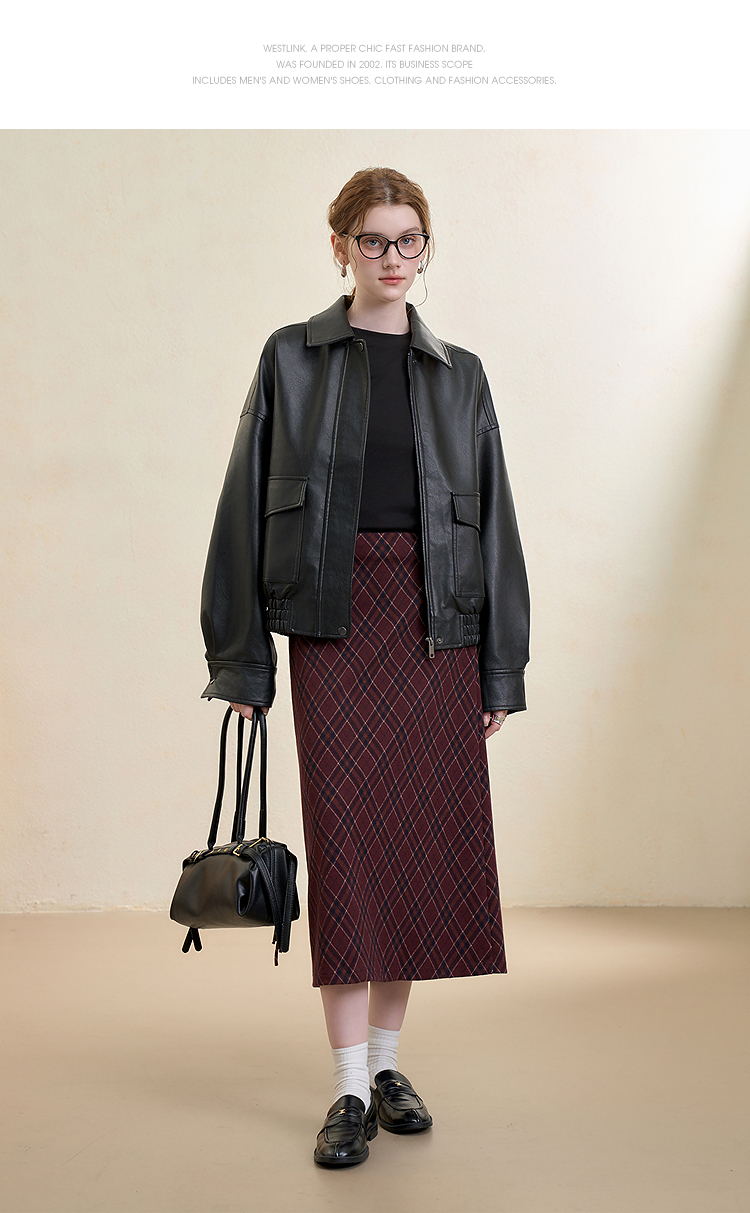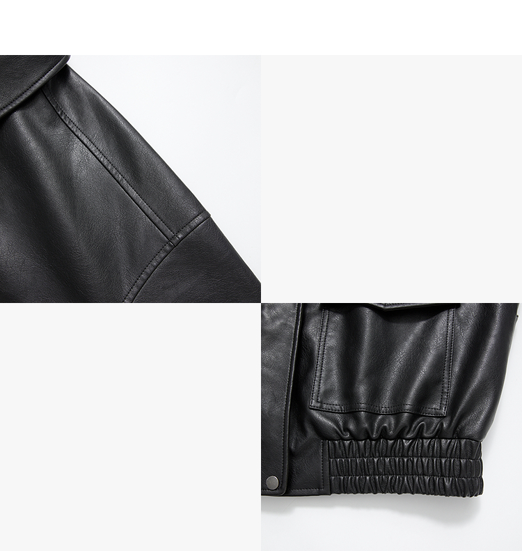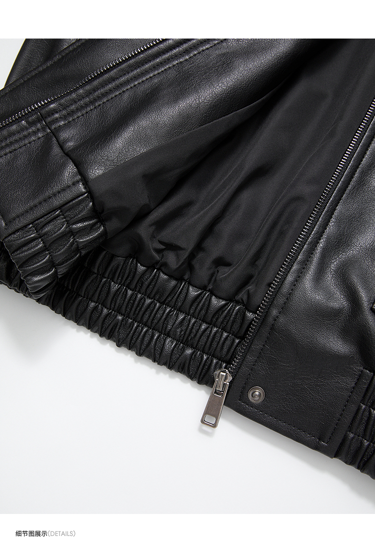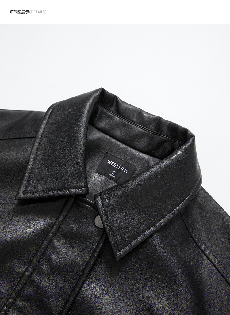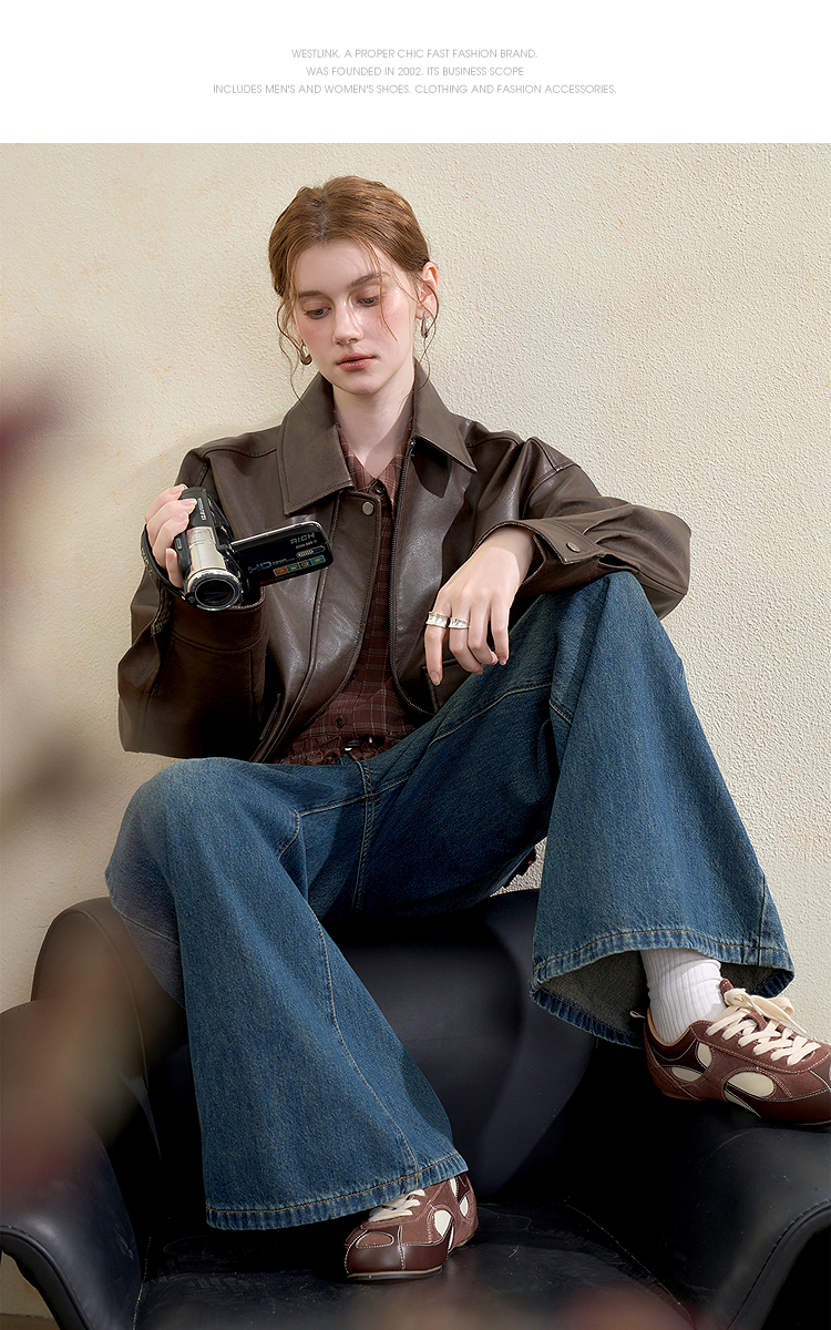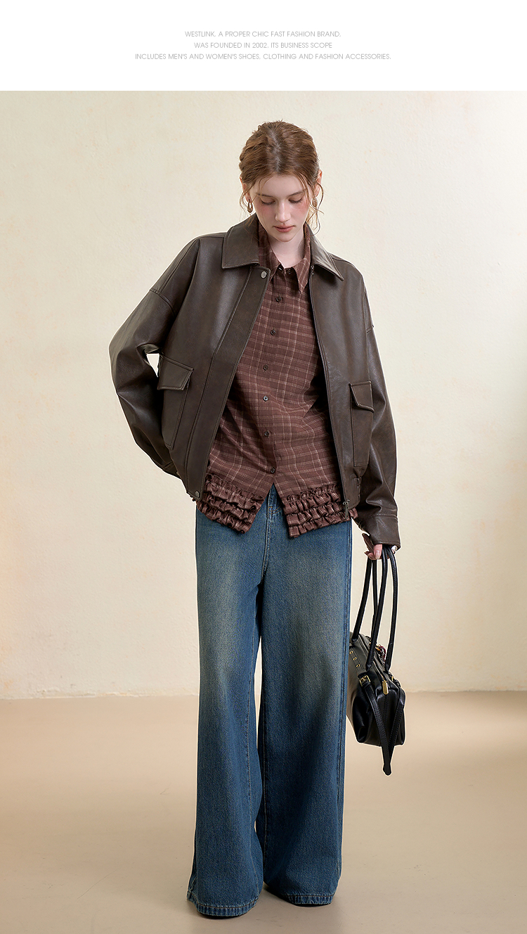 西遇复古休闲摩登质感pu皮夹克外套女秋季宽松廓形显瘦机车服V3151296