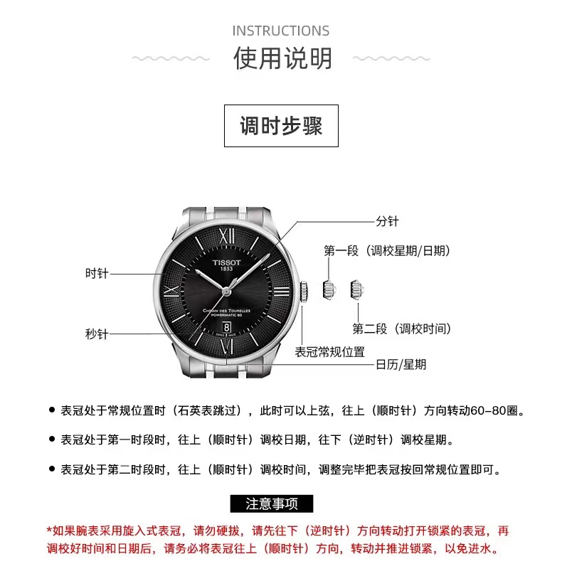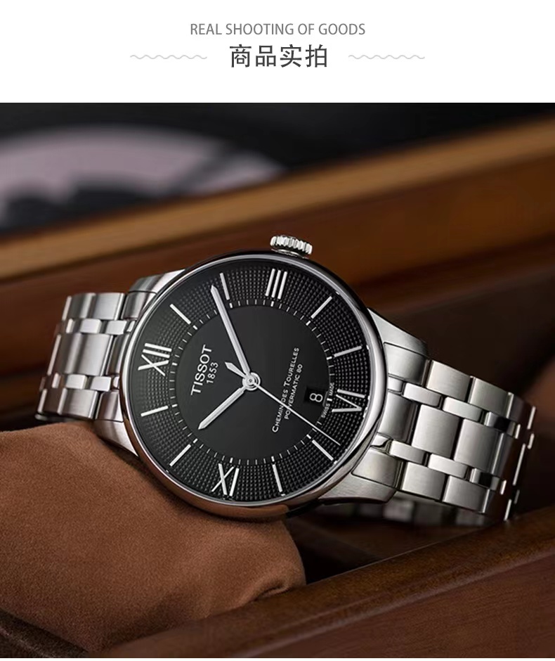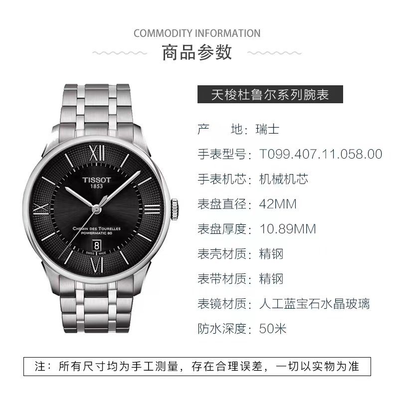 TISSOT天梭瑞士手表男杜鲁尔防水机械男表商务全球联保T099.407.11.058.00