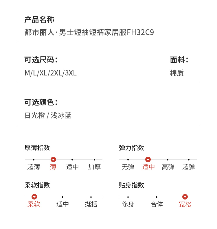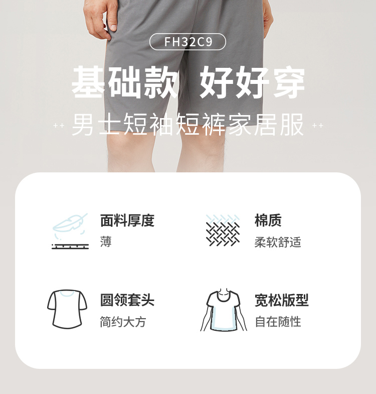 都市锋尚男士棉质短袖套装薄32支CVC单面生活家居无短袖类FHH2C1