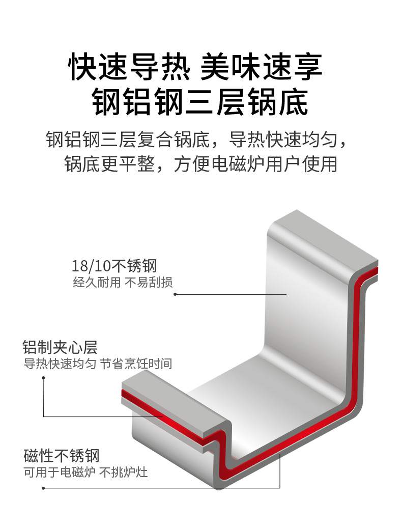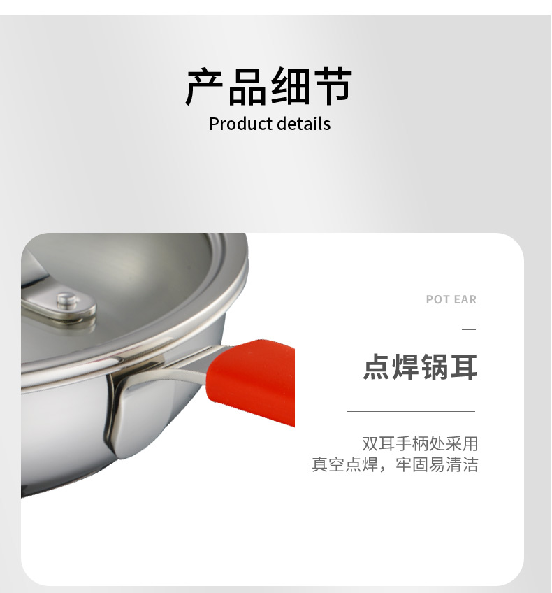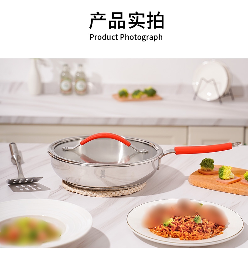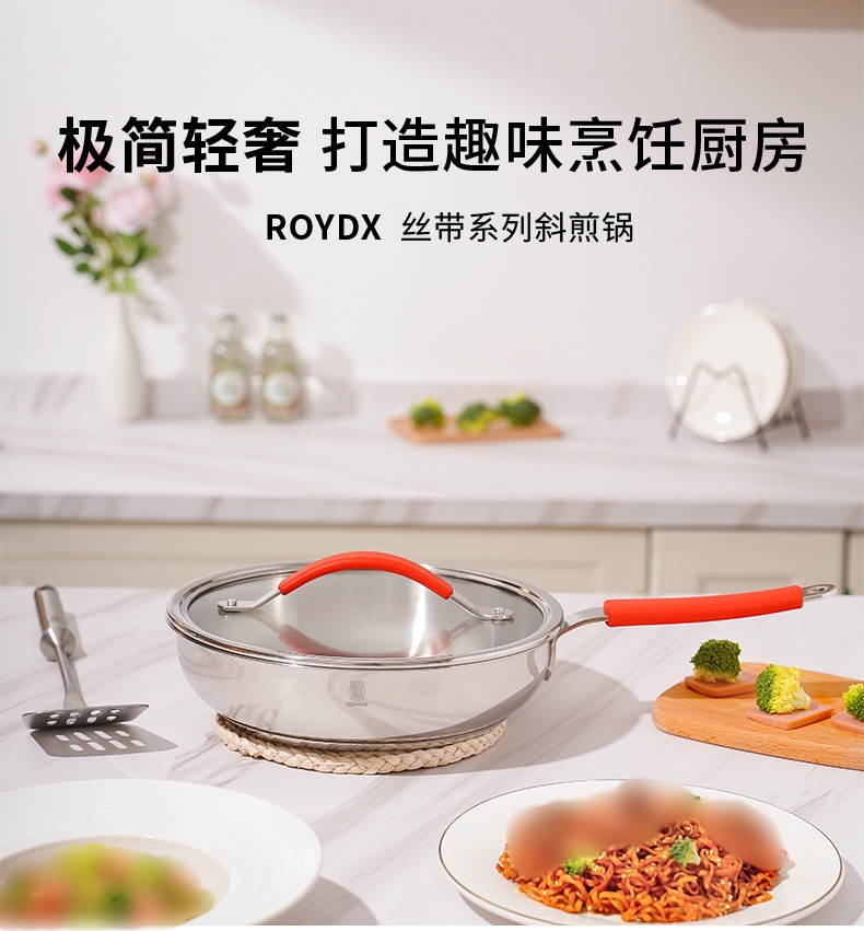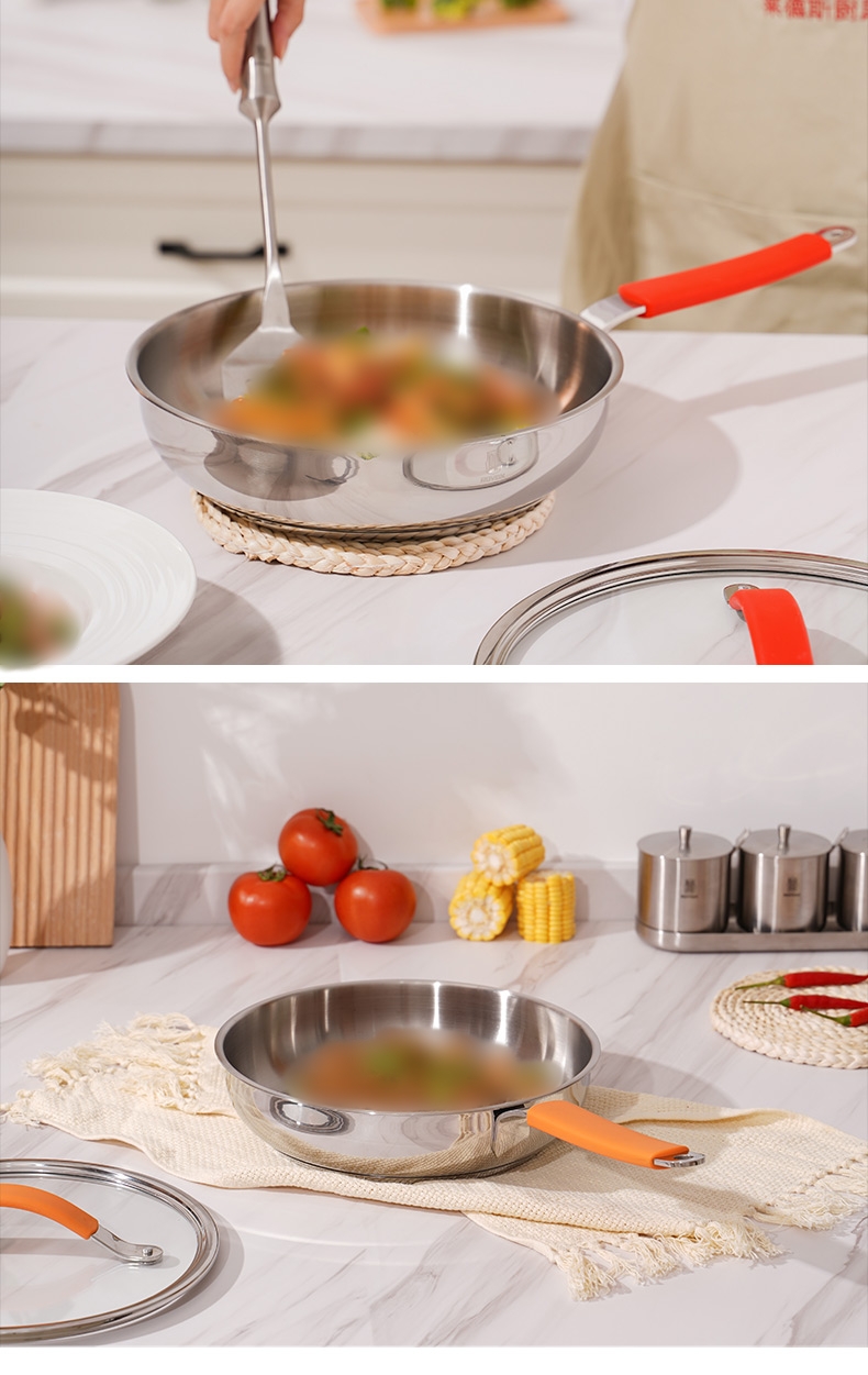 莱德斯26cm单柄煎锅 304不锈钢无涂层家用煎炒一体丝带锅具
