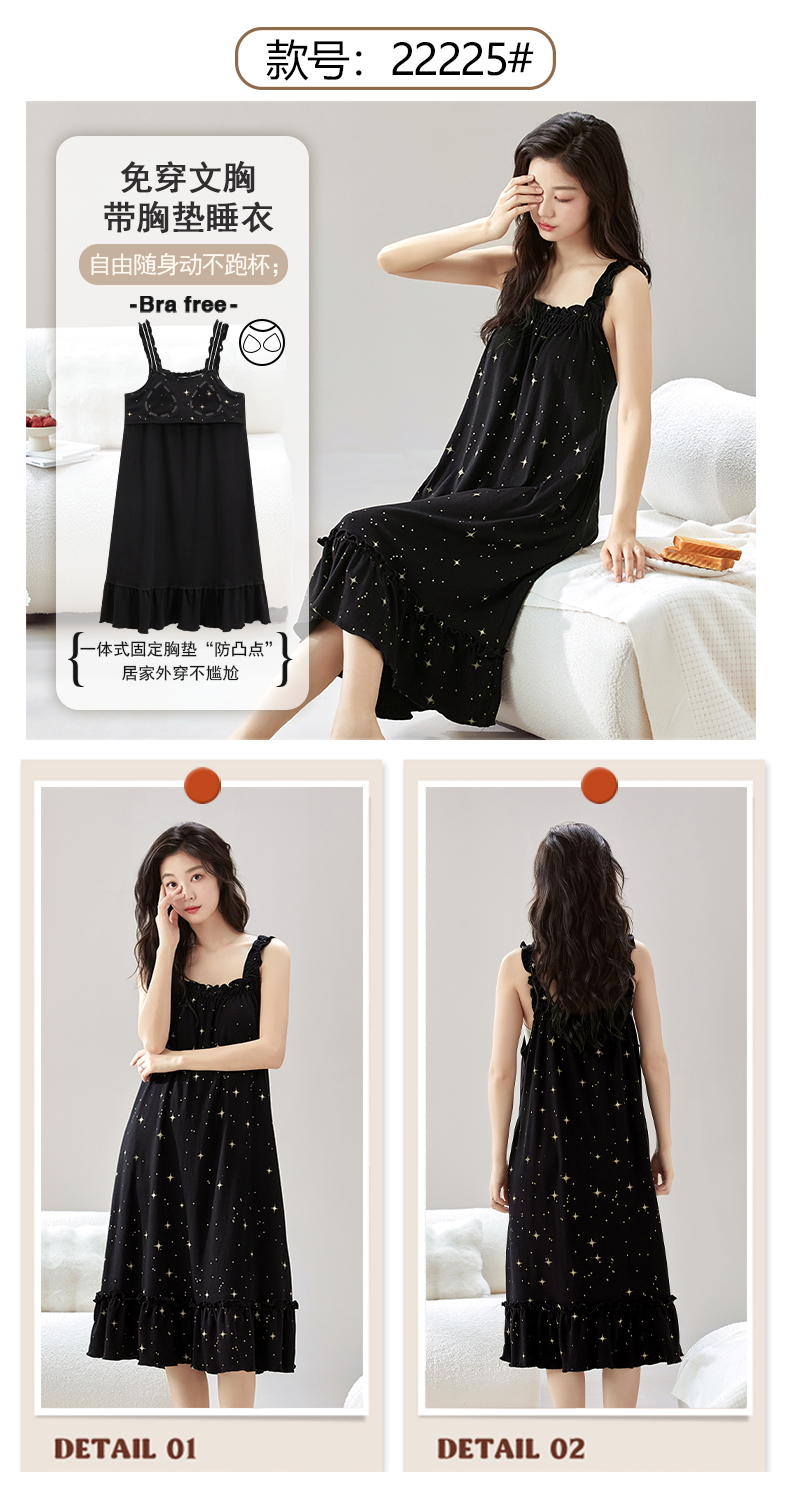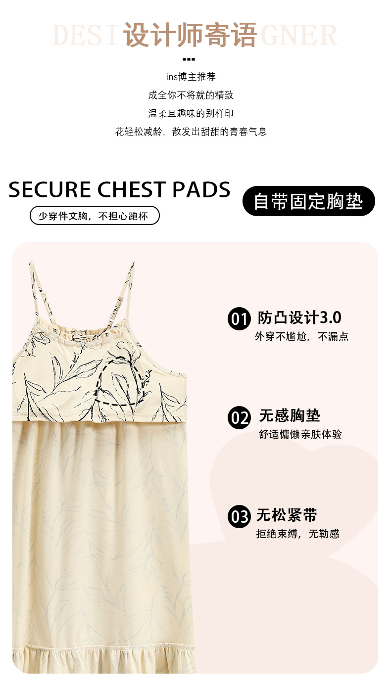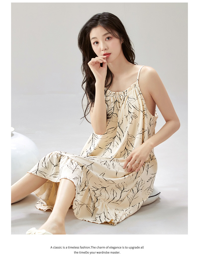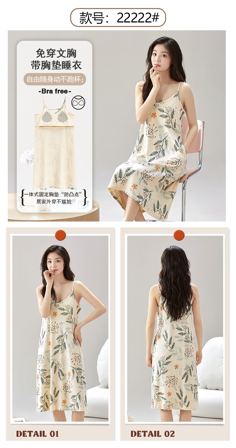 自然醒墨香(带胸垫)睡裙夏季女款牛奶丝无袖吊带性感睡衣裙子短裤夏天家居服QH