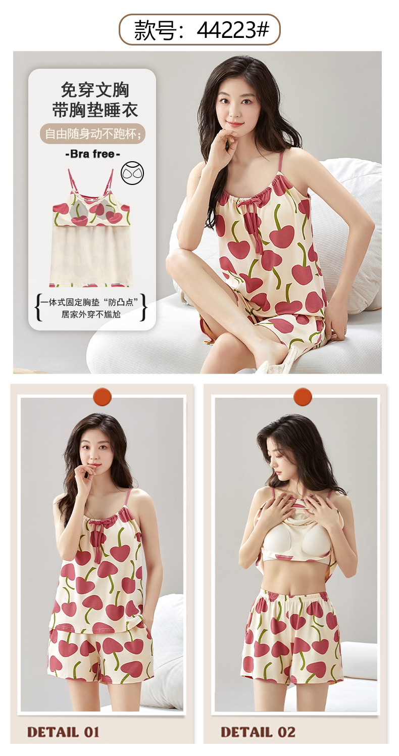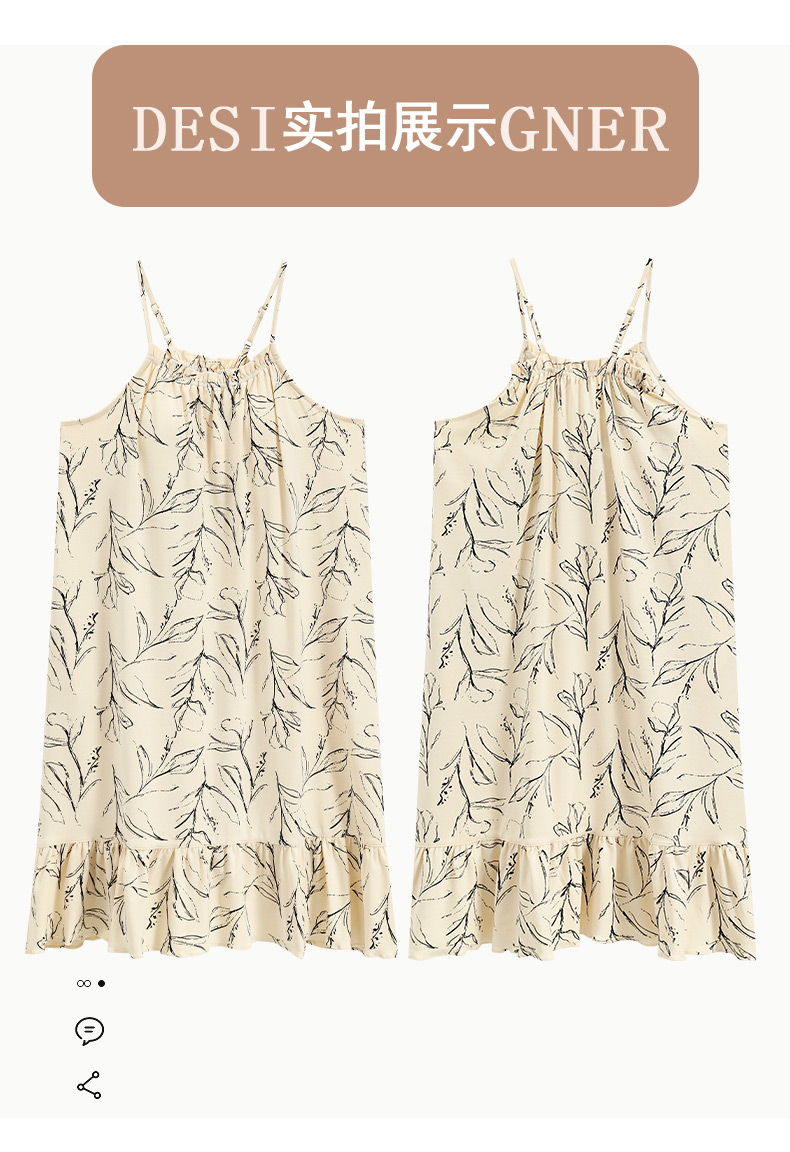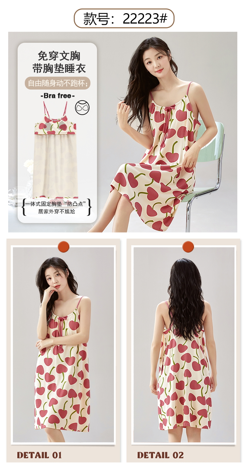 自然醒墨香(带胸垫)睡裙夏季女款牛奶丝无袖吊带性感睡衣裙子短裤夏天家居服QH