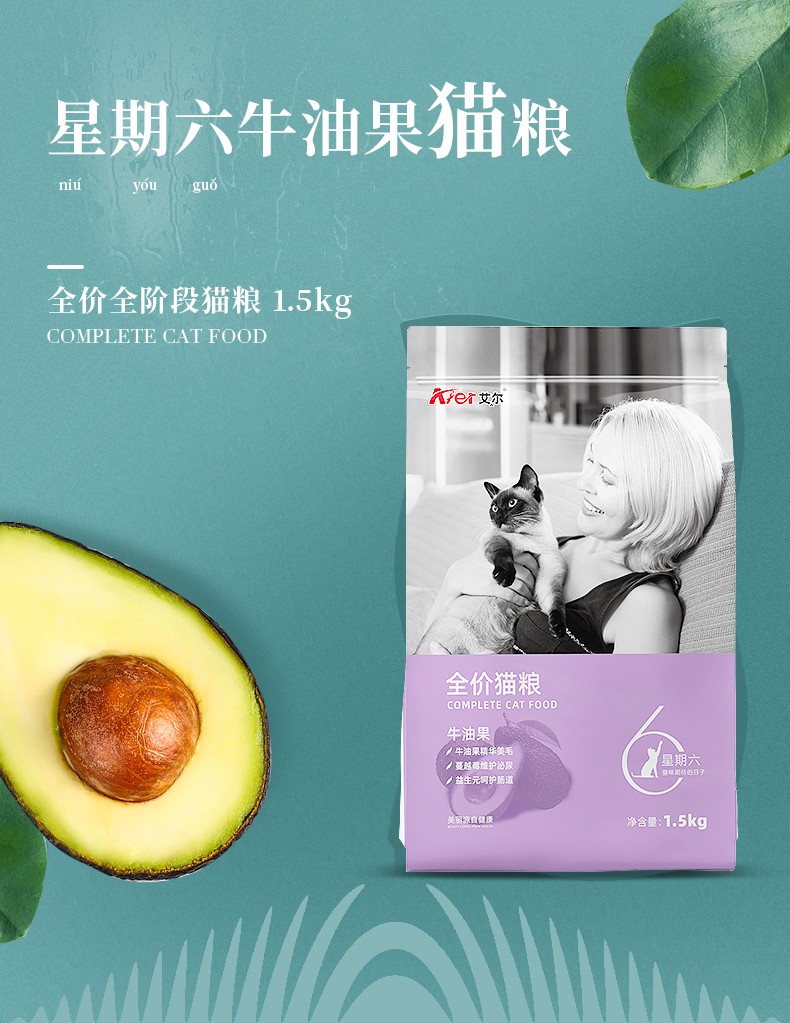 艾尔星期六牛油果美毛全期猫粮1.5kg