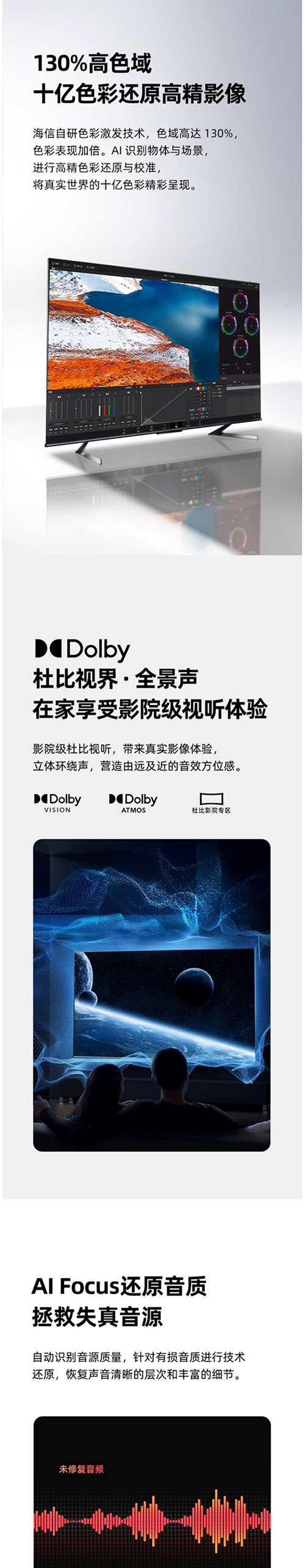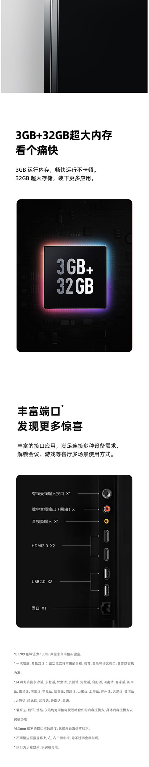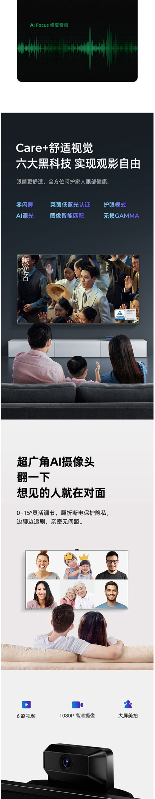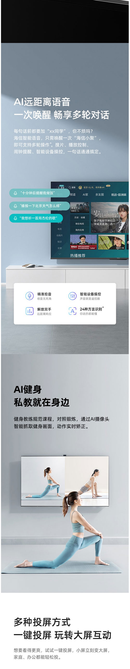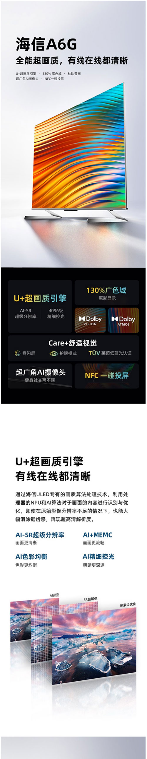 海信(Hisense)75A6G 75英寸 4KHDR超薄全面屏 社交电视广角摄像头 液晶平板电视机
