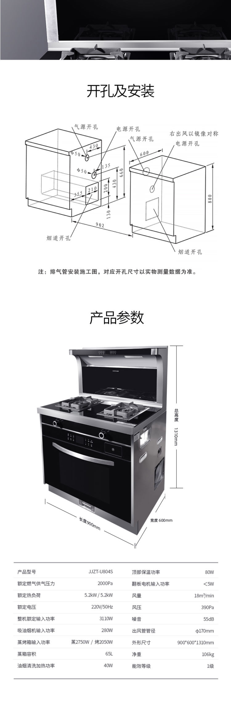 前锋集成灶JJZT-U804S