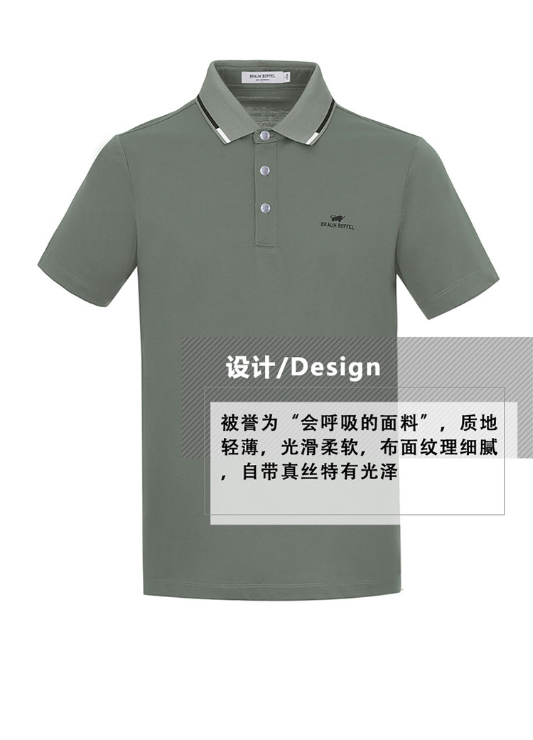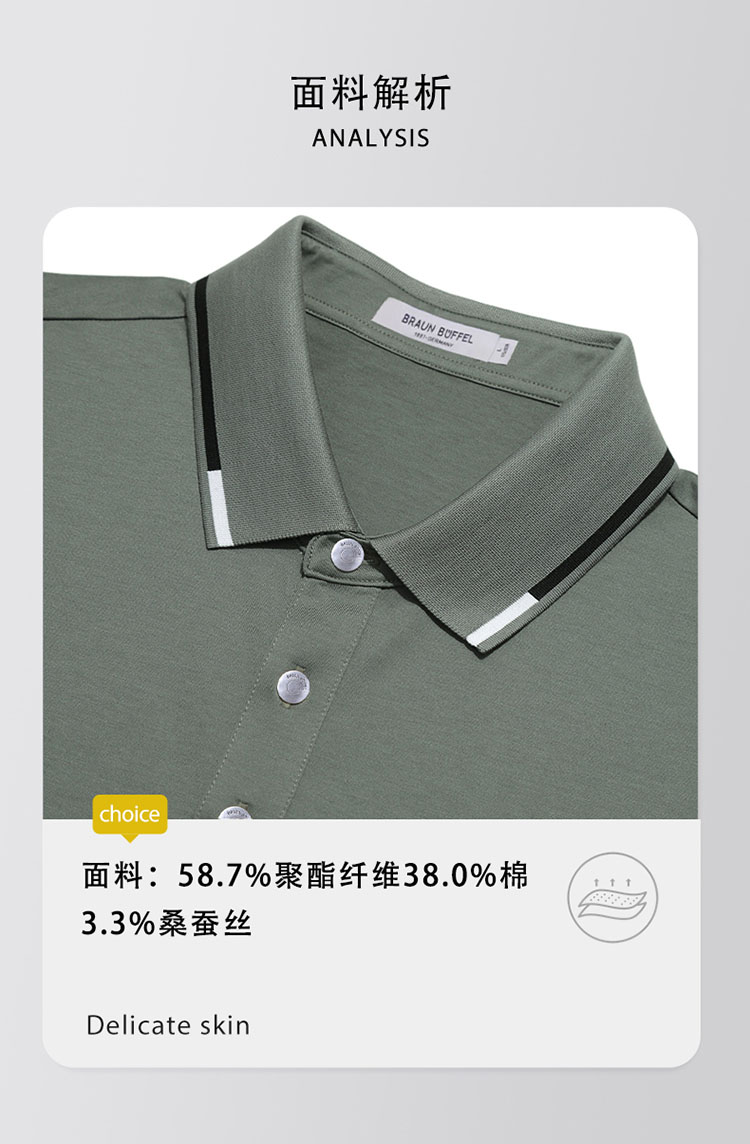 BRAUN BUFFEL/布兰施男士轻奢印花短袖POLO衫舒适百搭翻领短袖T恤