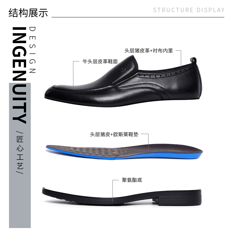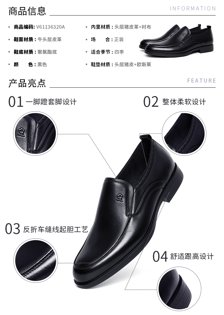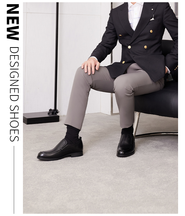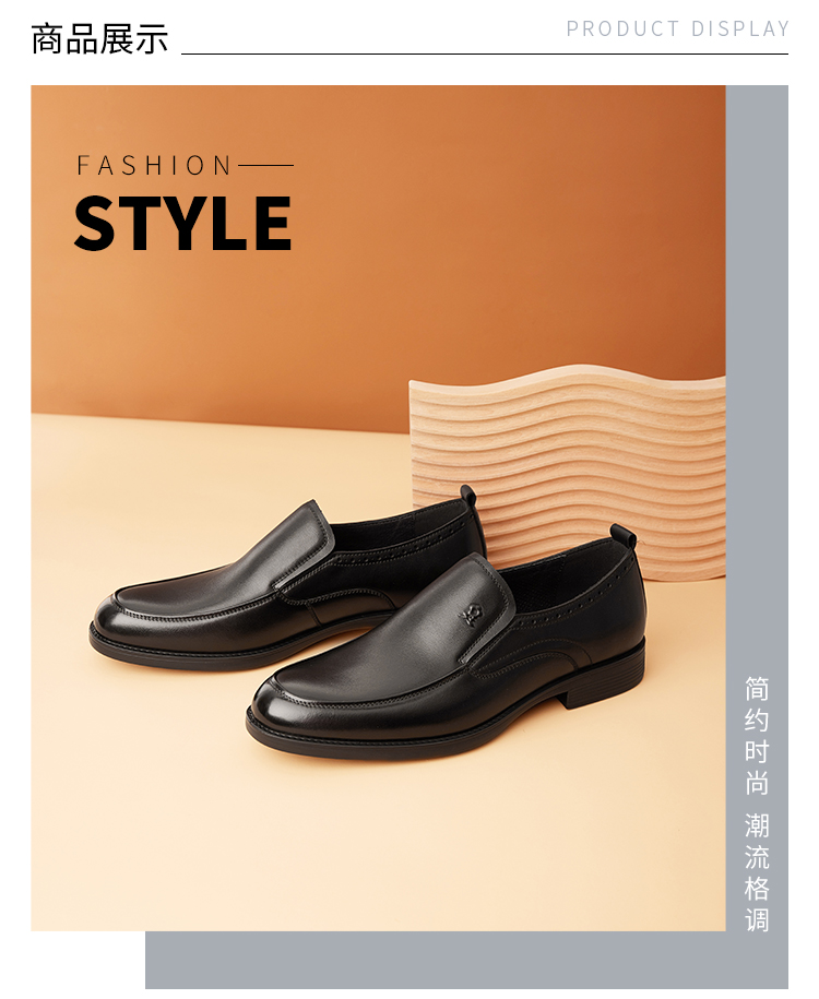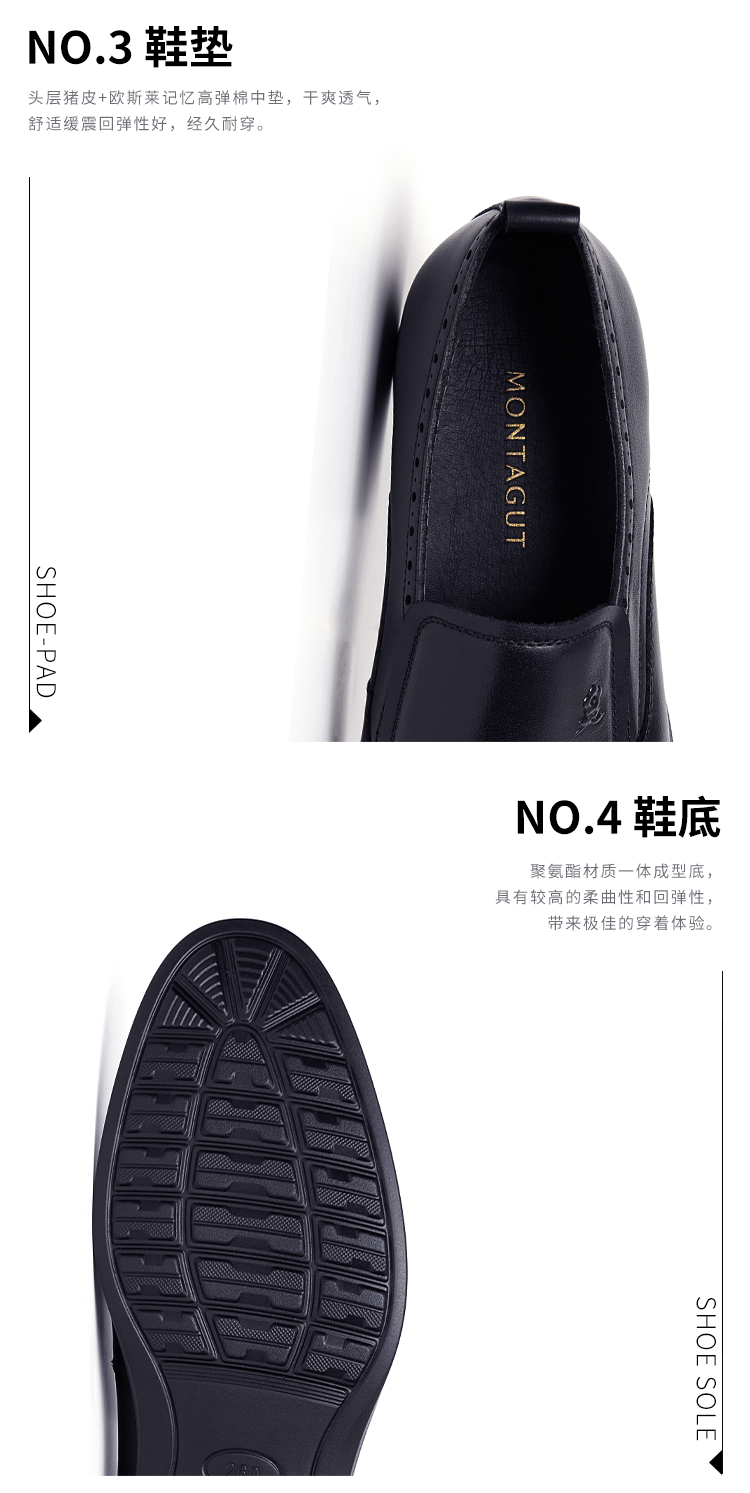 梦特娇舒适一脚蹬套脚中老年皮鞋男士头层牛皮鞋商务皮鞋