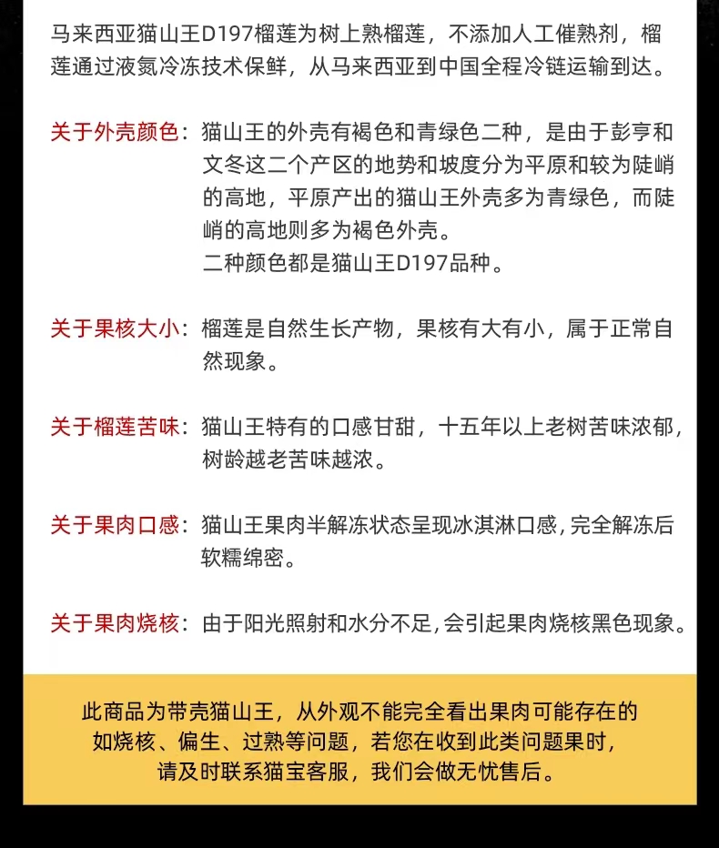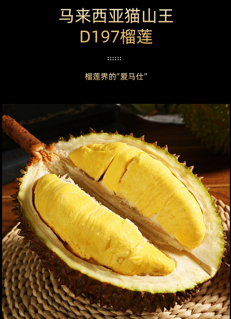 【包邮】马来西亚彭亨州 猫山王榴莲 D197液氮锁鲜冷冻AA果 整颗原果进口