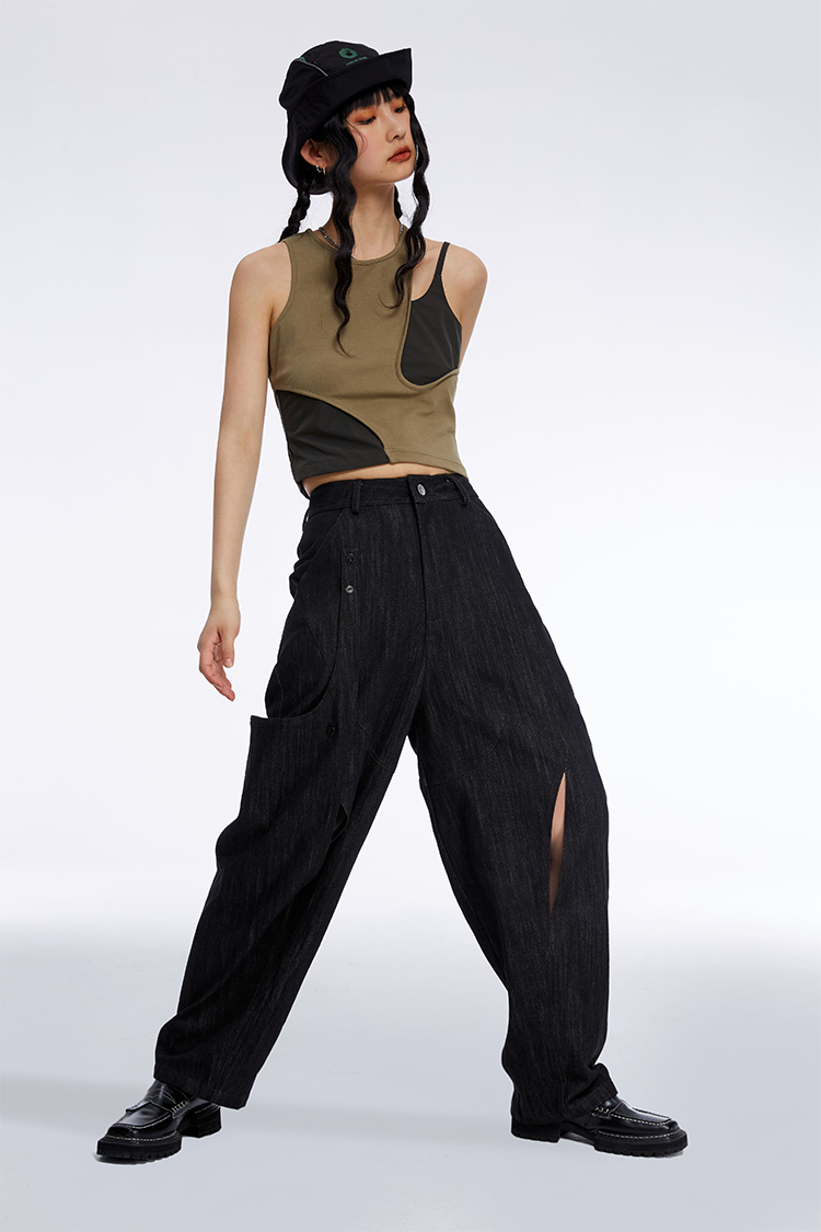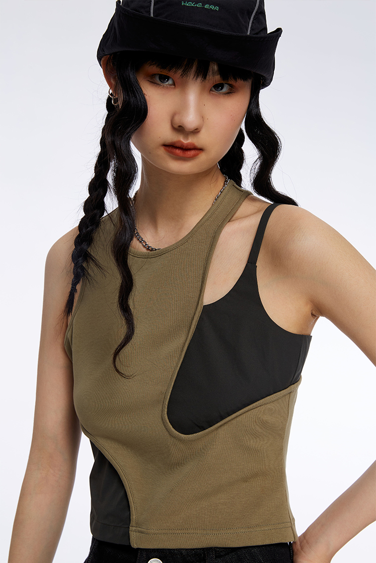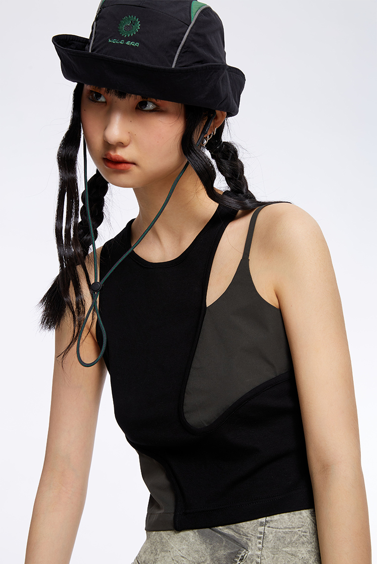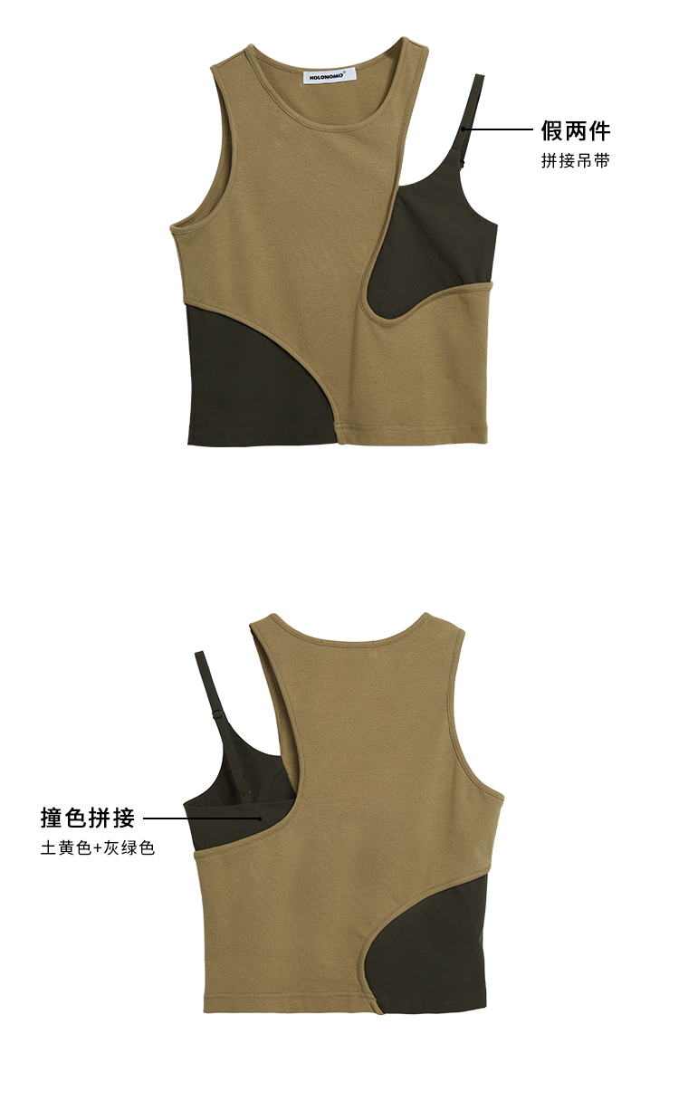 HOLONOMIC 原创不规则撞色拼接修身设计感小众外穿吊带背心