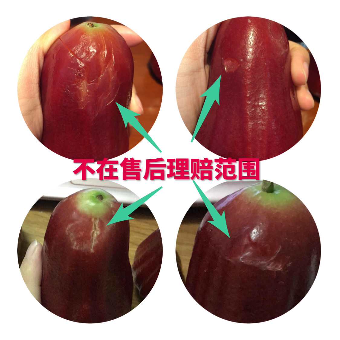 1、莲雾比较娇嫩,尽管我们打包的很好,快递运输过程中也难免会有出现个别磕磕碰碰而造成的皮外伤,小磕碰不影响食用的,不在售后范围哦,请知晓。
