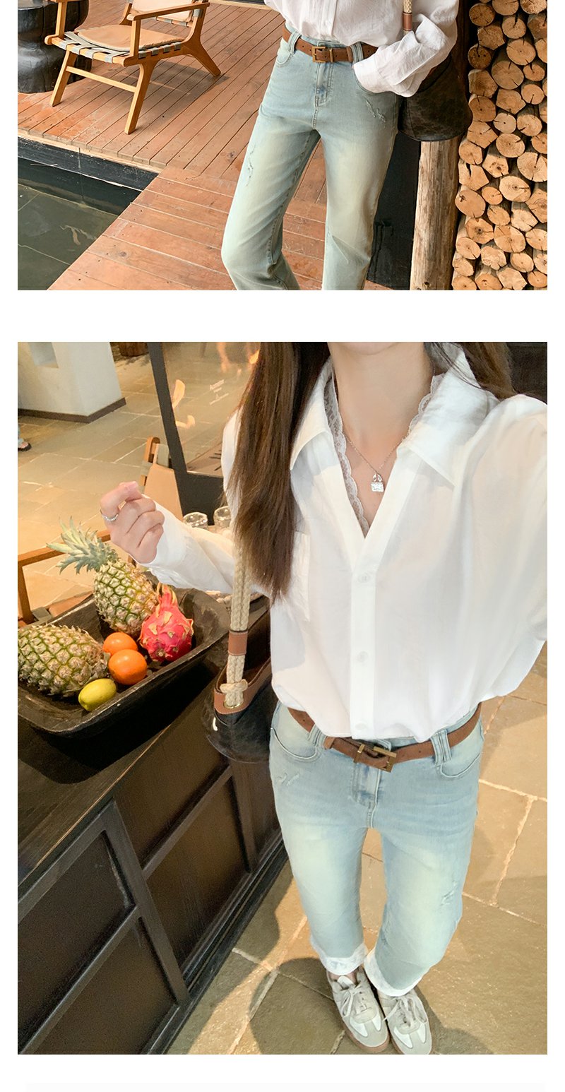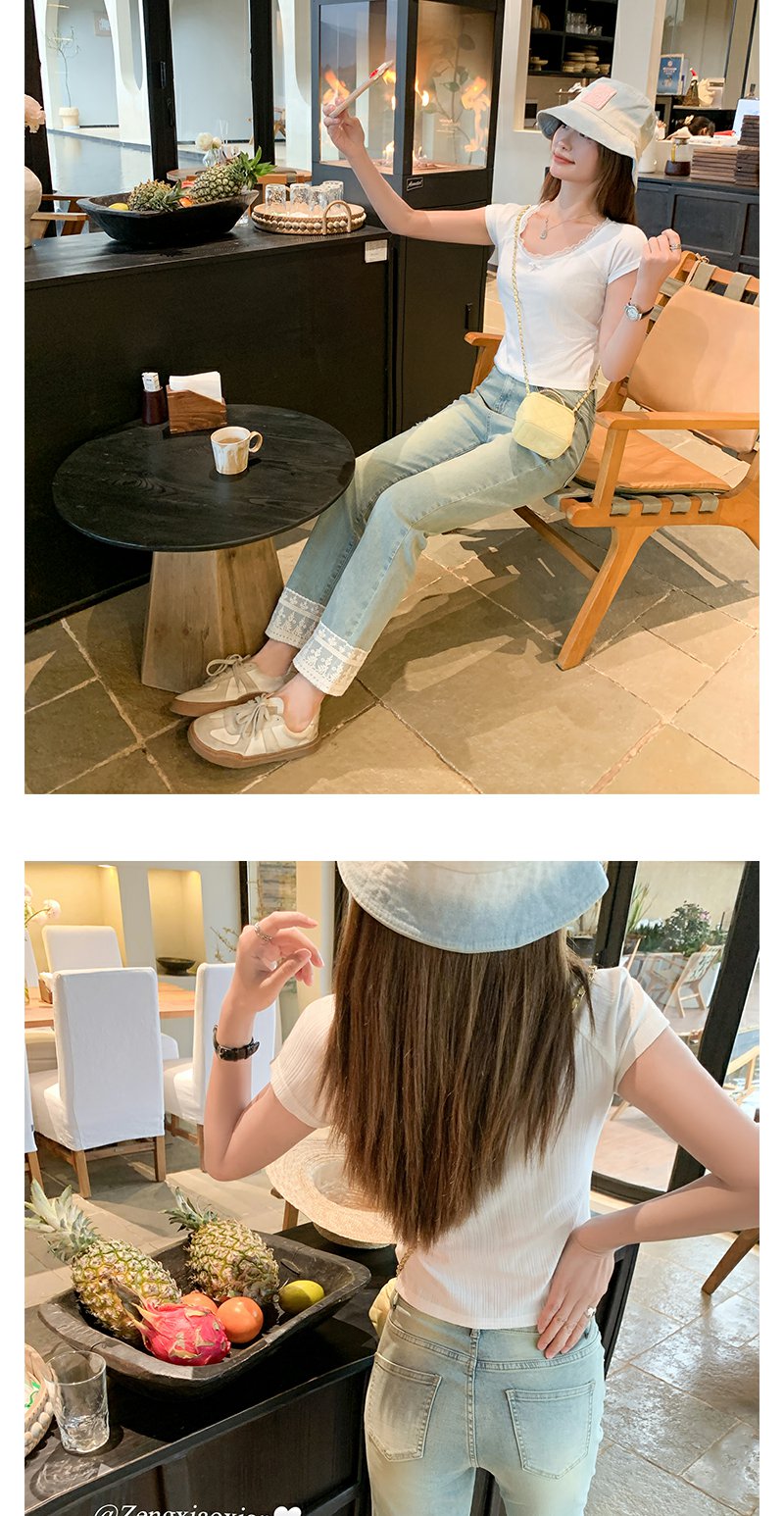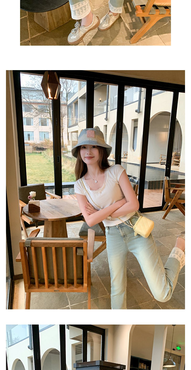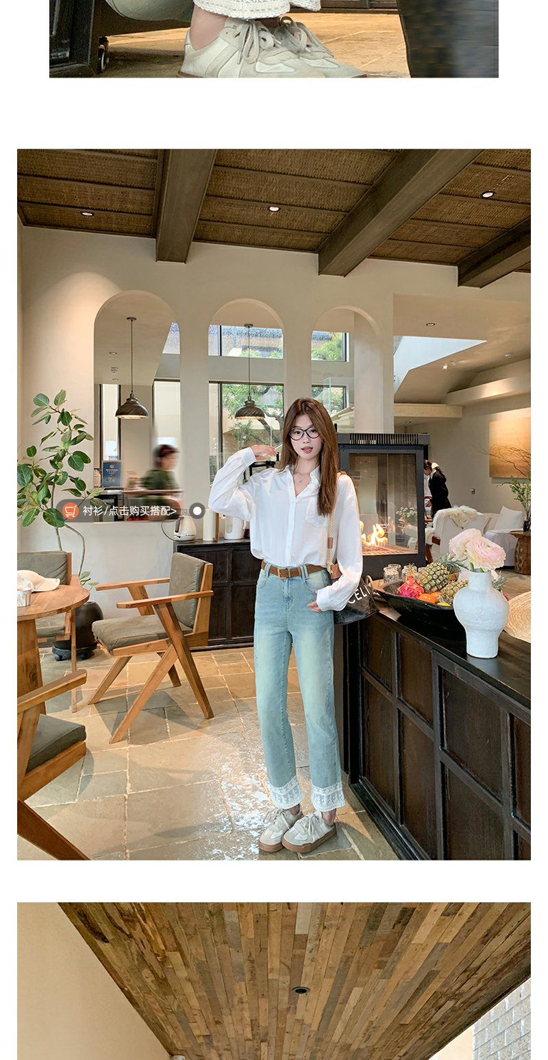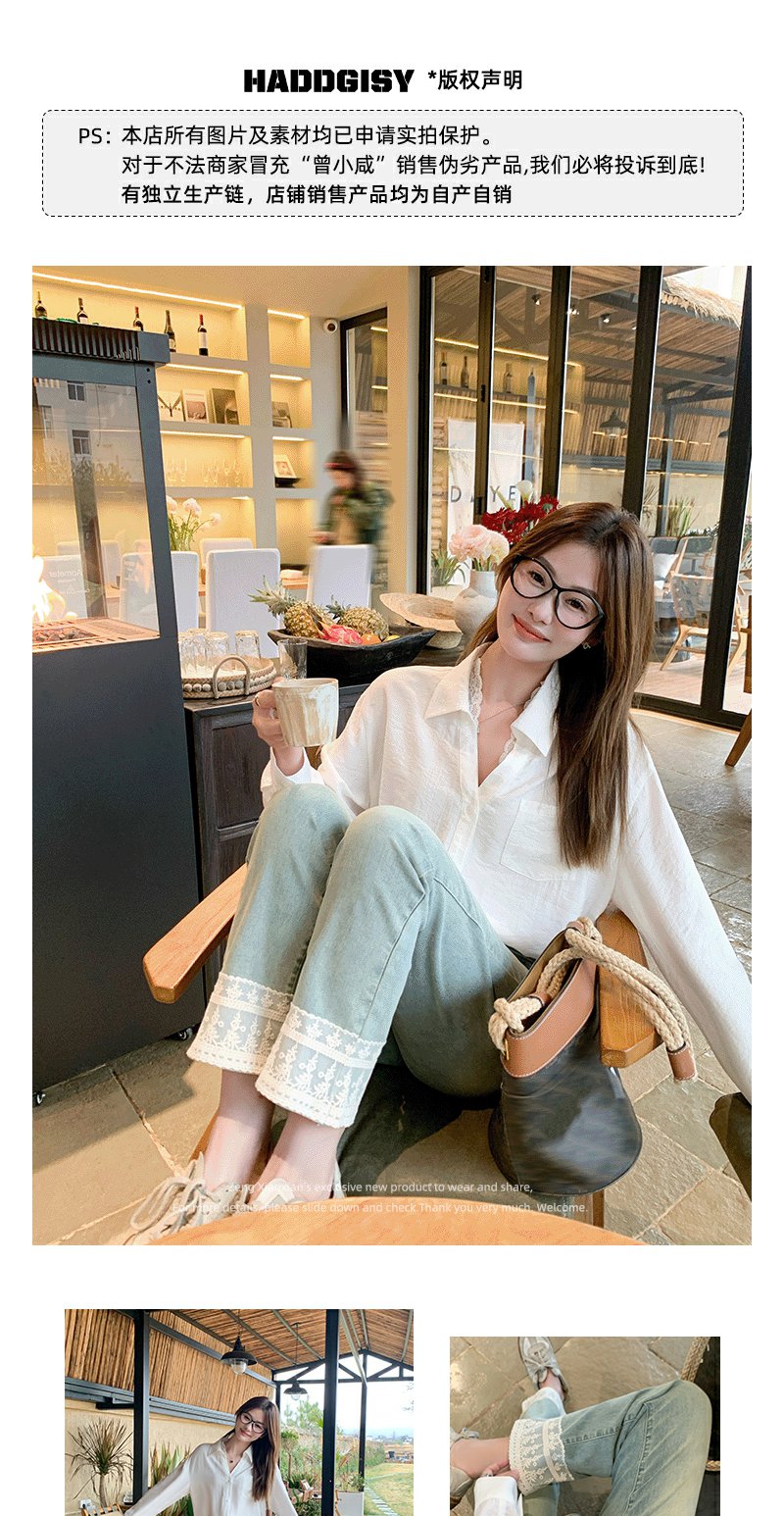 <曾小咸推荐>设计感拼接蕾丝蓝色高腰显瘦牛仔裤