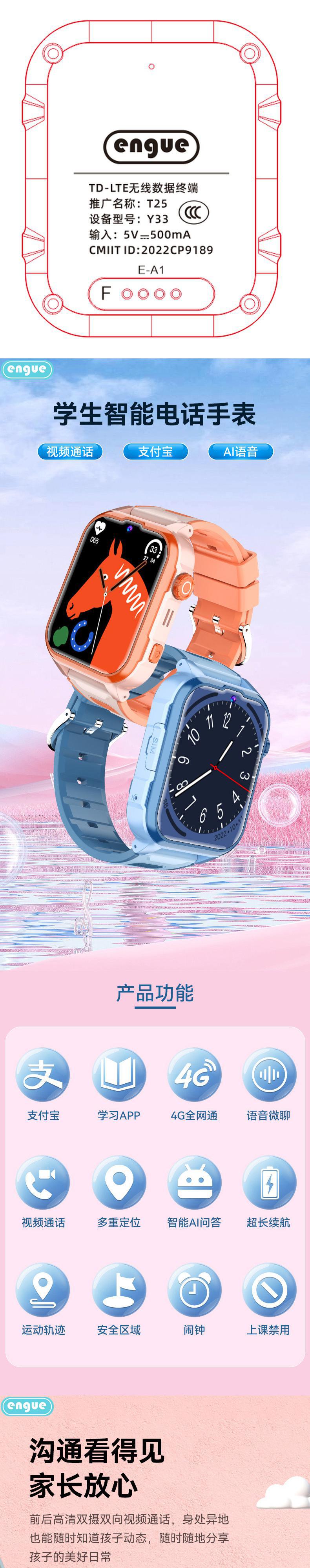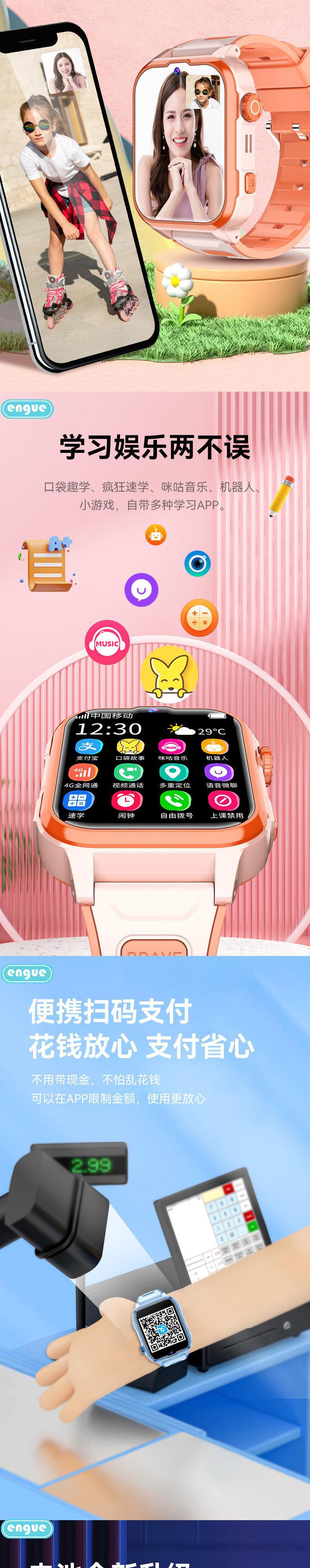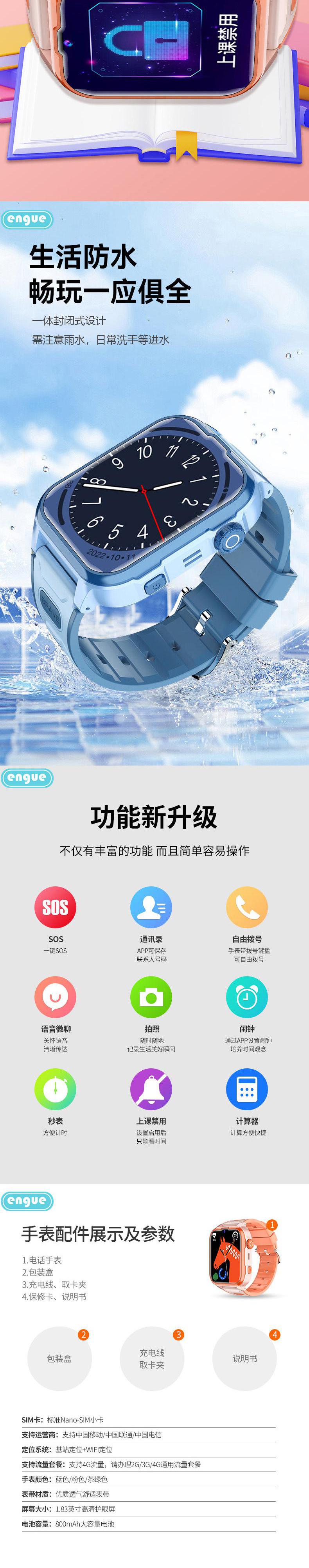 【自营】engue恩谷4G儿童智能电话手表 EG-T25视频通话安全定位防水防摔上学戴