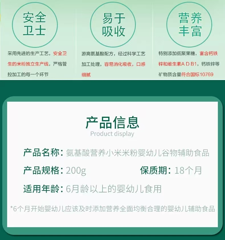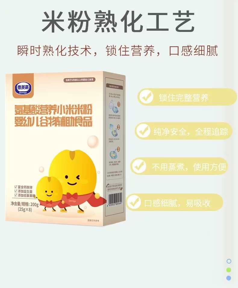 【不含常见过敏源 安心吃第一口米粉】德美嘉氨基酸营养小米粉25g/袋*8袋/盒