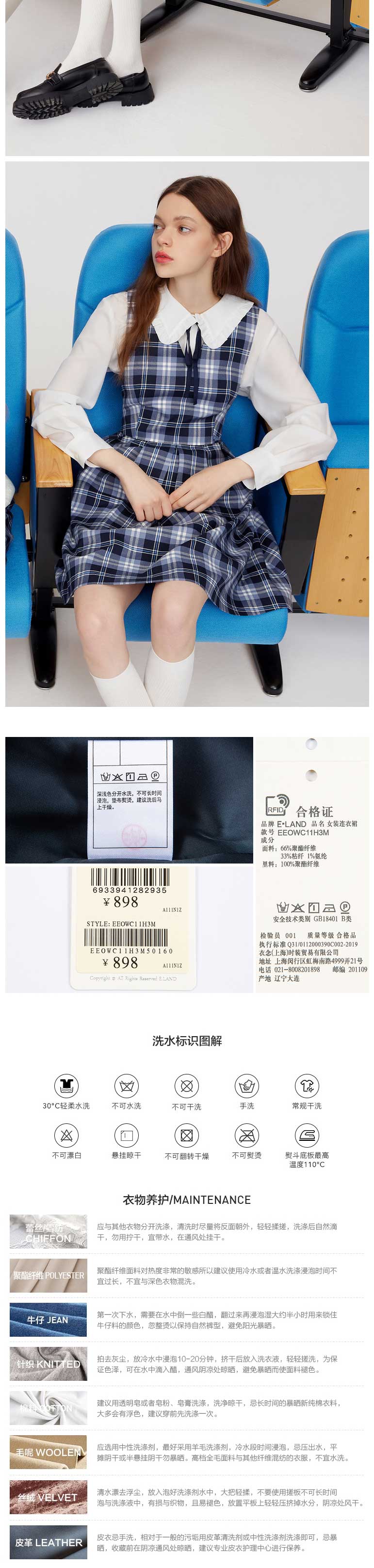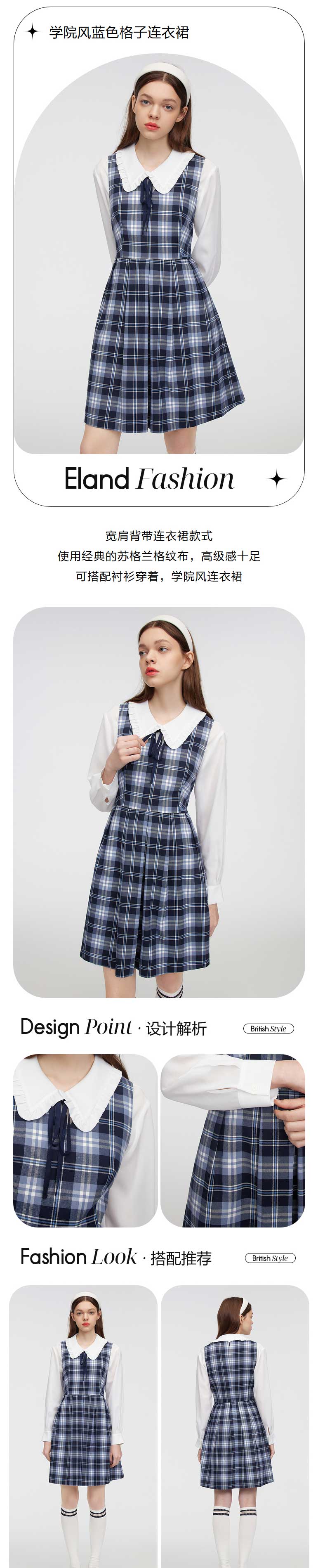 ELAND衣恋2022年春季新款甜美温柔少女学院风减龄中长款连衣裙女EEOWC11H3M